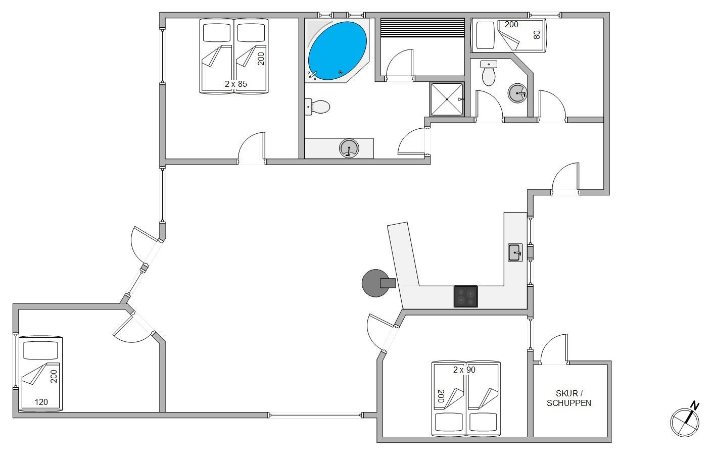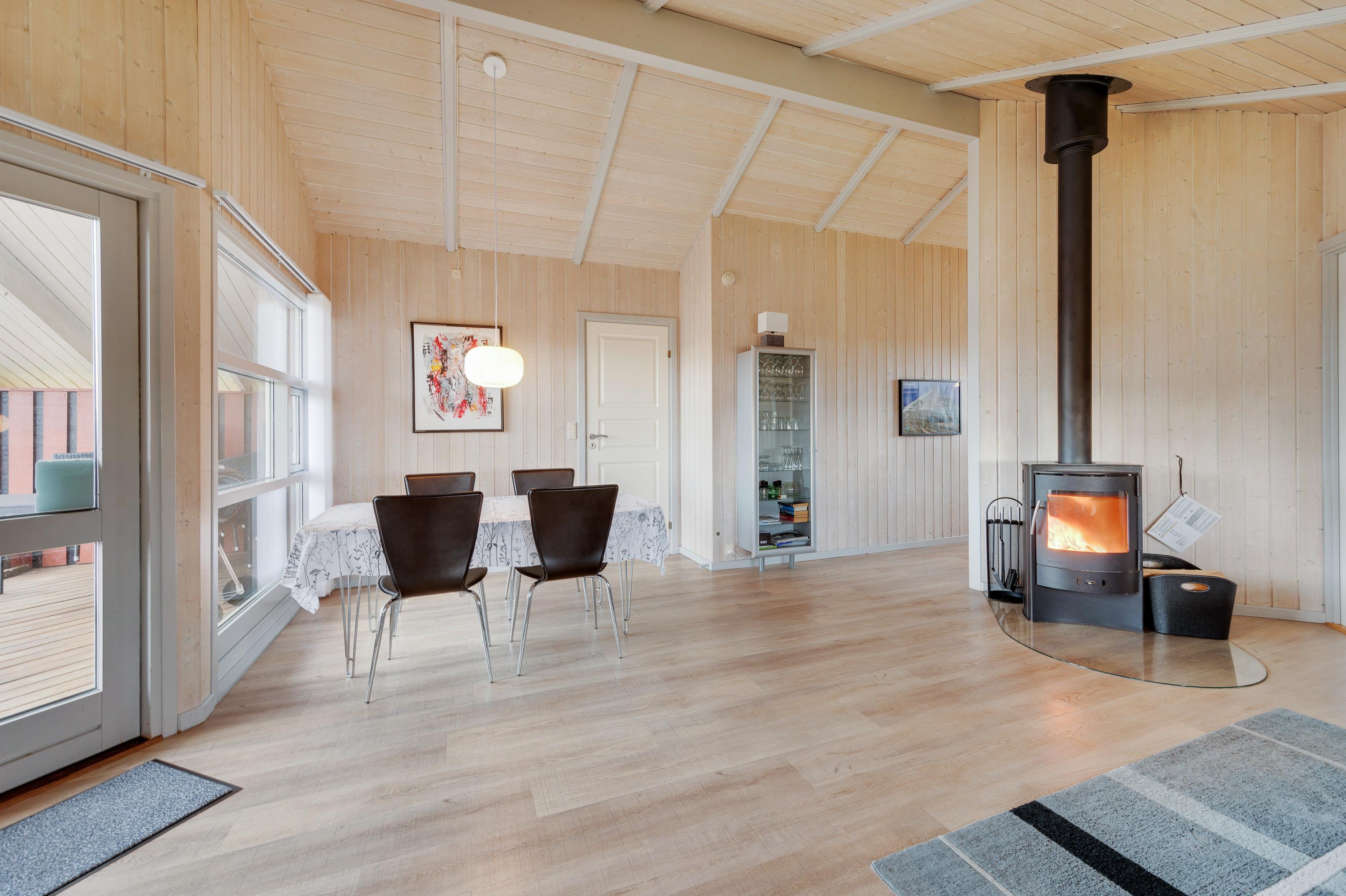 Når I træder ind i entréen, som er forbundet med køkkenalrummet, mødes I af et lyst og personligt indrettet feriehus på 88 m². Køkkenet er funktionelt udstyret med opvaskemaskine, mikroovn og en separat fryser på 60 liter. Stuen inviterer til hyggelige stunder sammen, mens den energibesparende luft-til-luft-varmepumpe og brændeovnen skaber dejlig varme.