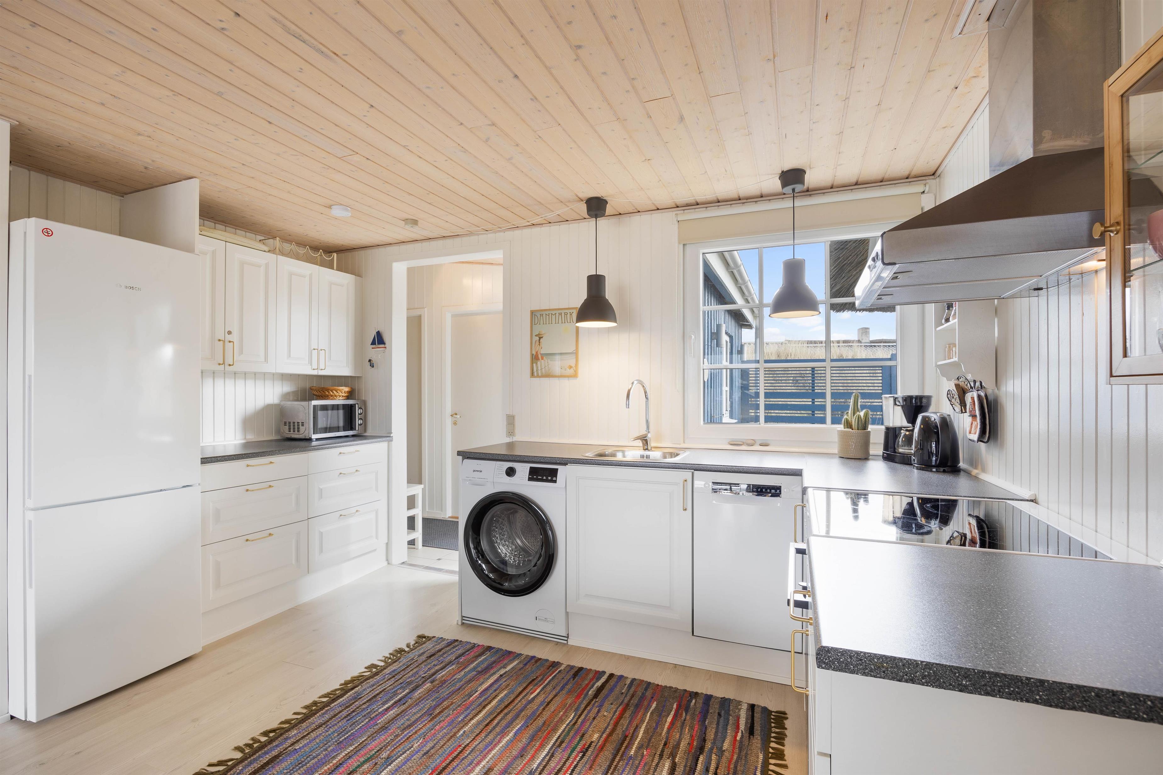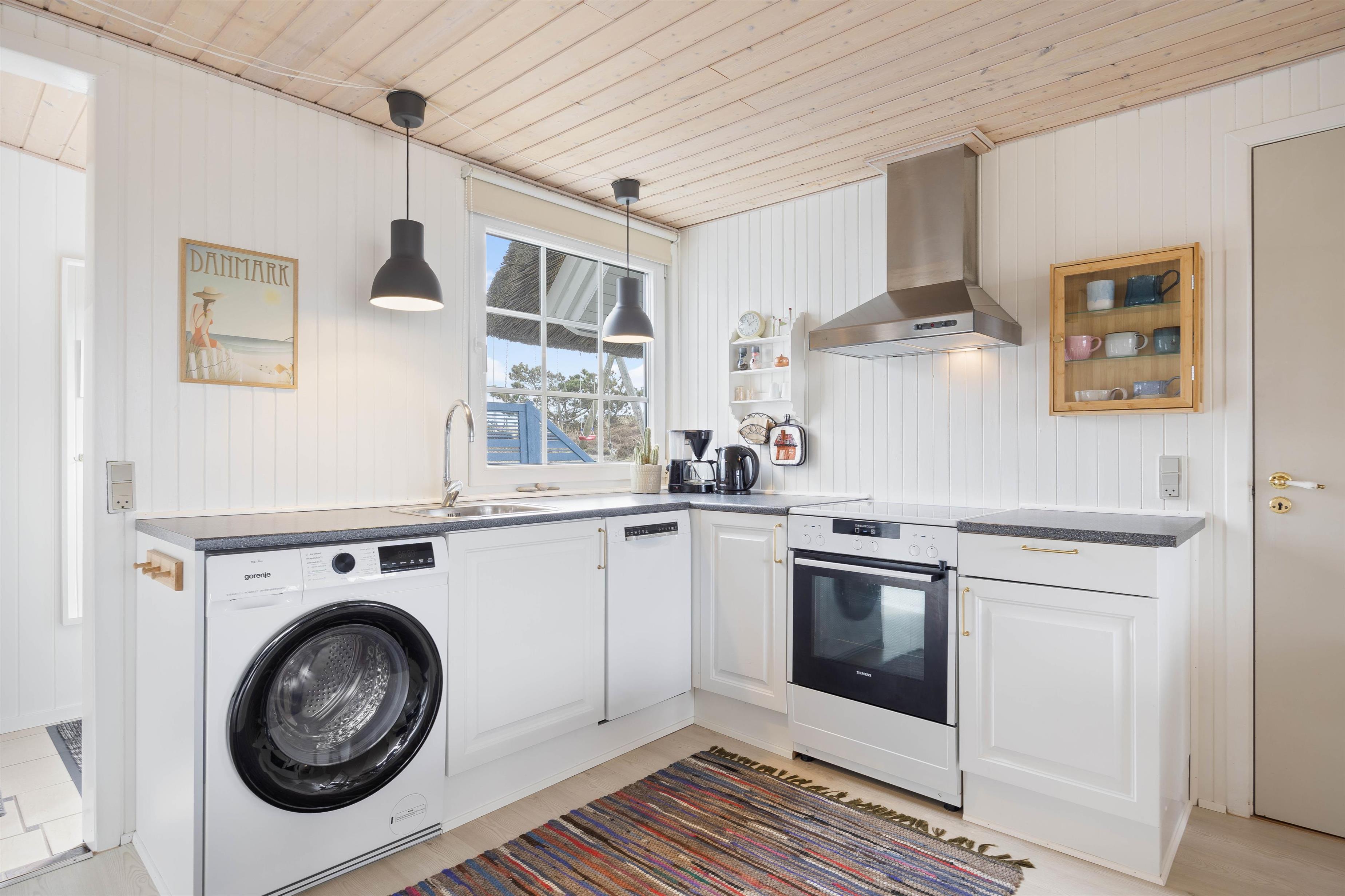 Sommerhusets hjerte er det store opholdsrum-spisestue med et velindrettet køkken-hjørne. Her finder du bl.a. 90 L fryser, mikroovn og opvaskemaskine, som alt sammen gør det nemt at stå for madlavningen.