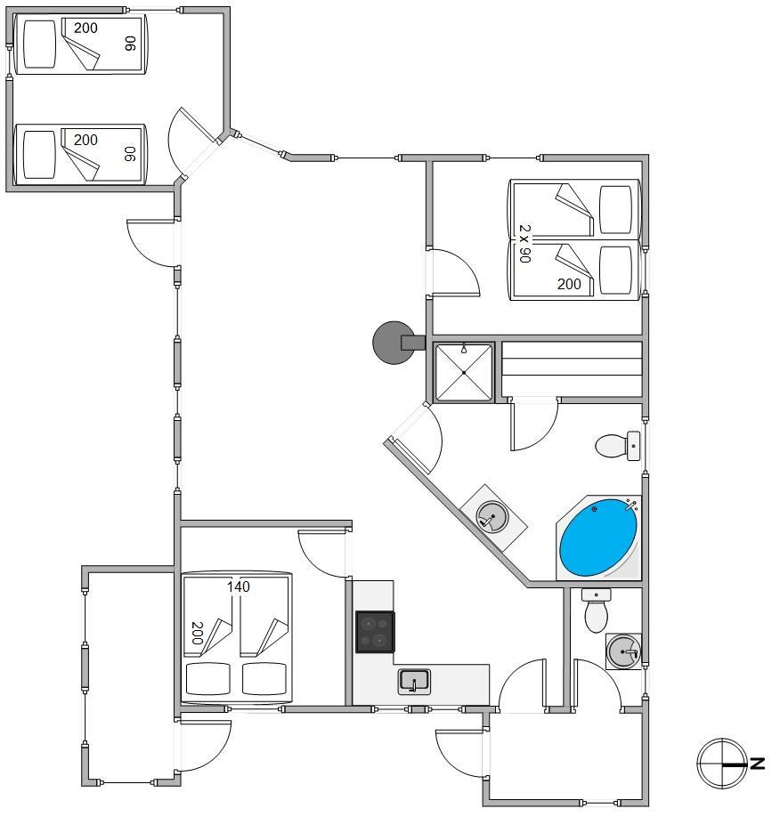 Sommerhuset råder over et badeværelse med badekar og sauna, hvor I kan slappe af efter en frisk tur ved havet eller i klitlandskabet. Derudover findes et praktisk gæstetoilet, så sommerhuset er godt indrettet til både familier og flere feriegæster.