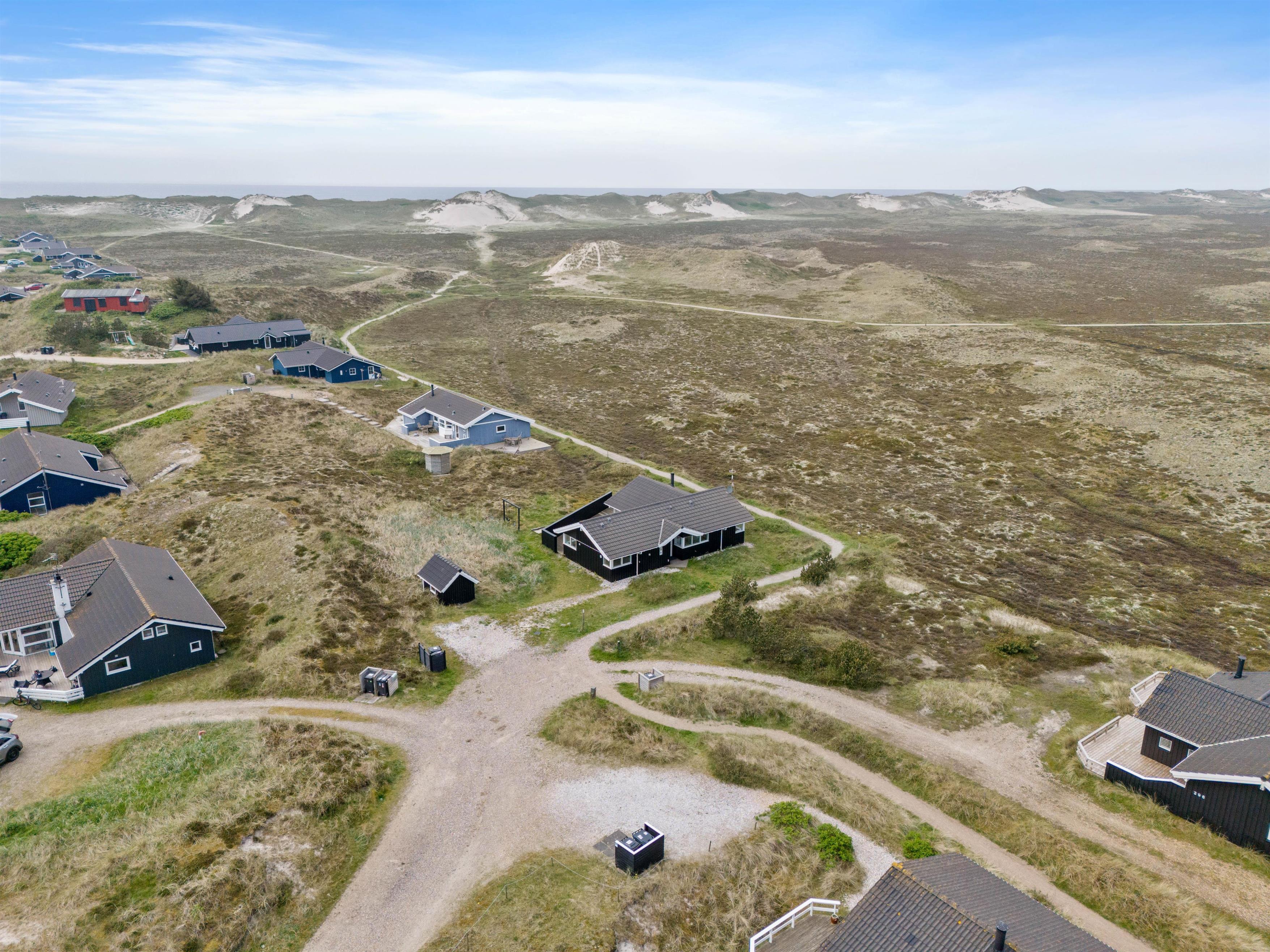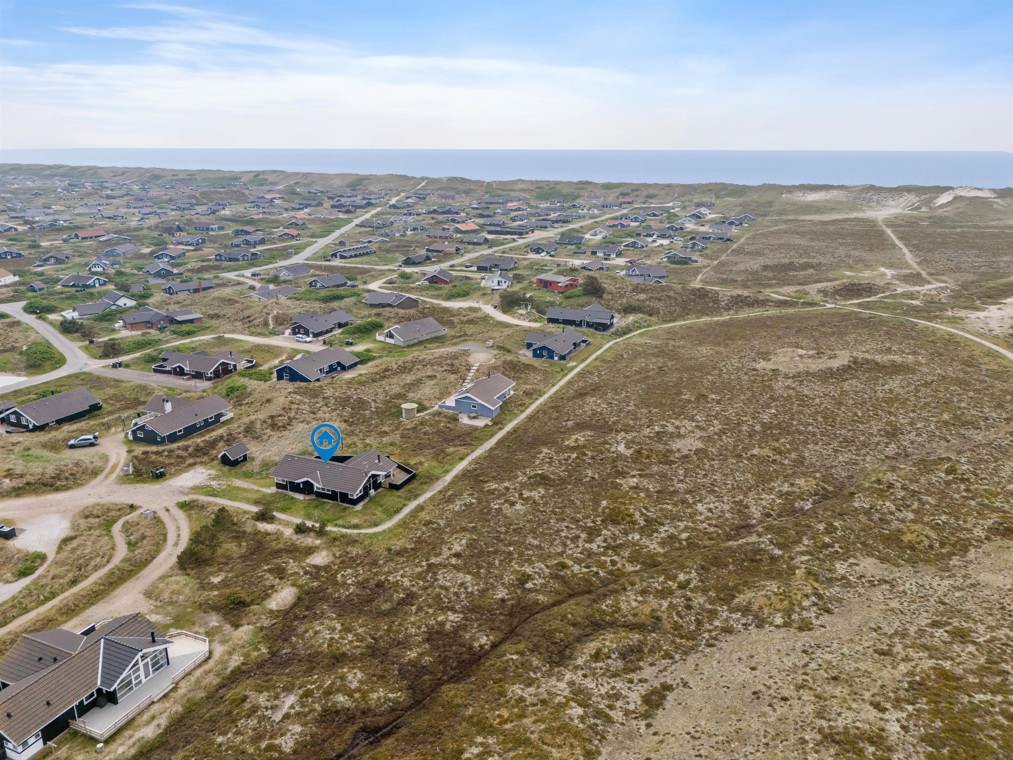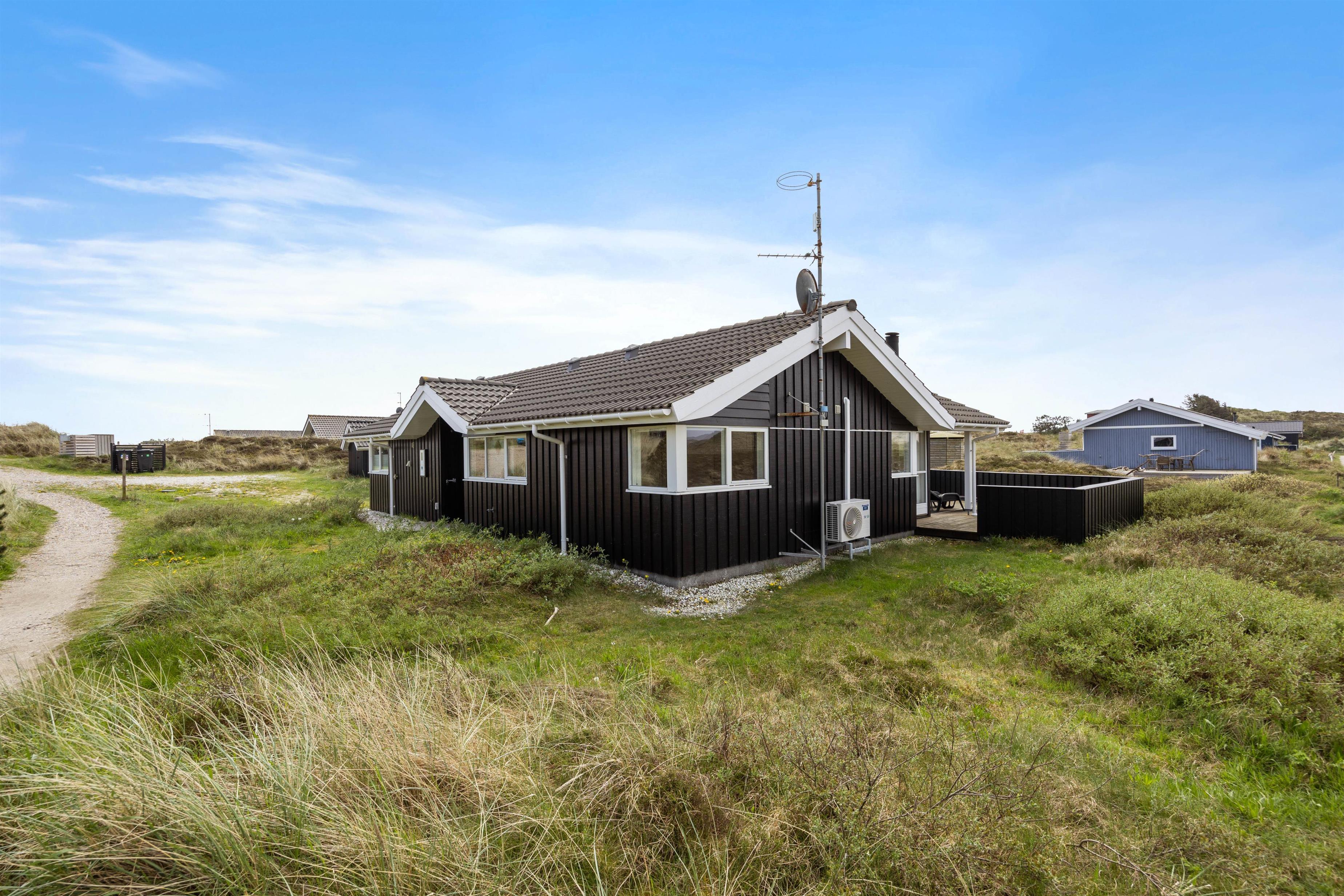 For enden af en rolig sidevej finder I dette fine sommerhus, der grænser op til stort hedeområde og er i gåafstand til Vesterhavet. Et familievenligt og lyst sommerhus, hvor de firbenede venner også er velkomne. Mod nordvest er en stor, lukket terrasse, hvorfra den fantastiske natur kan nydes.