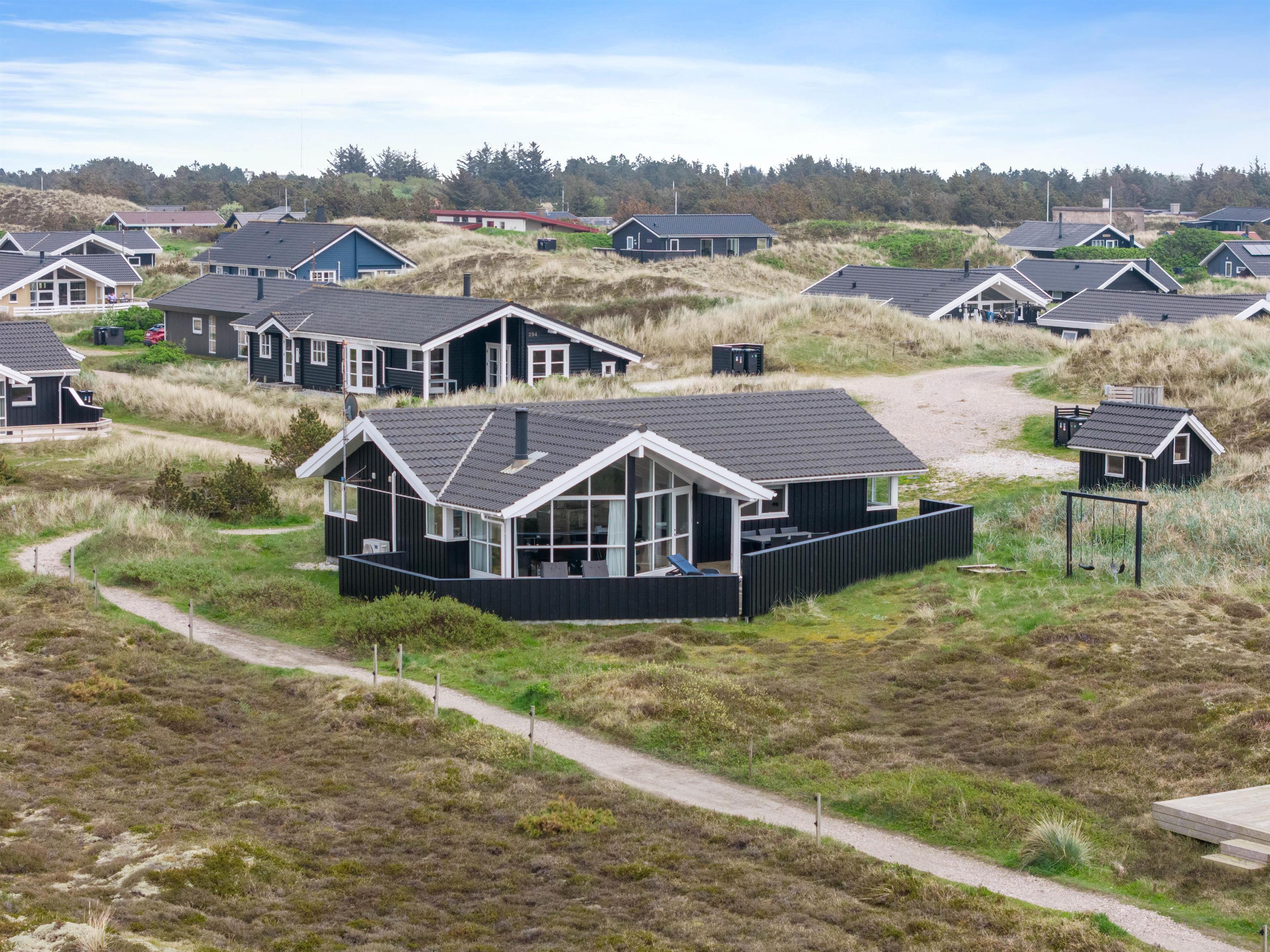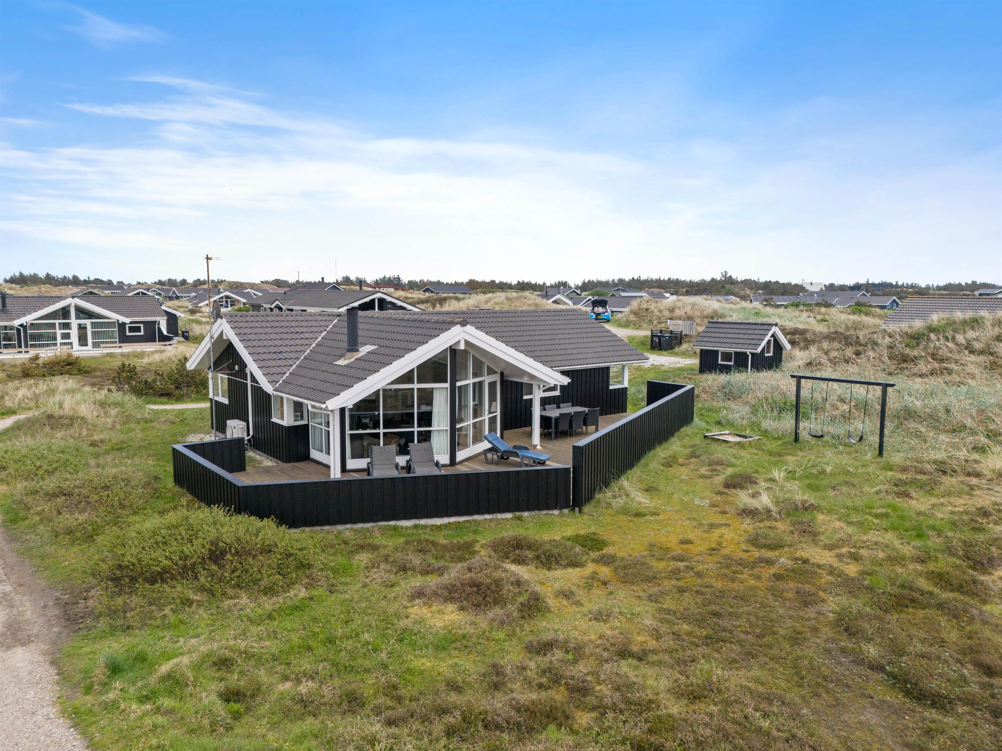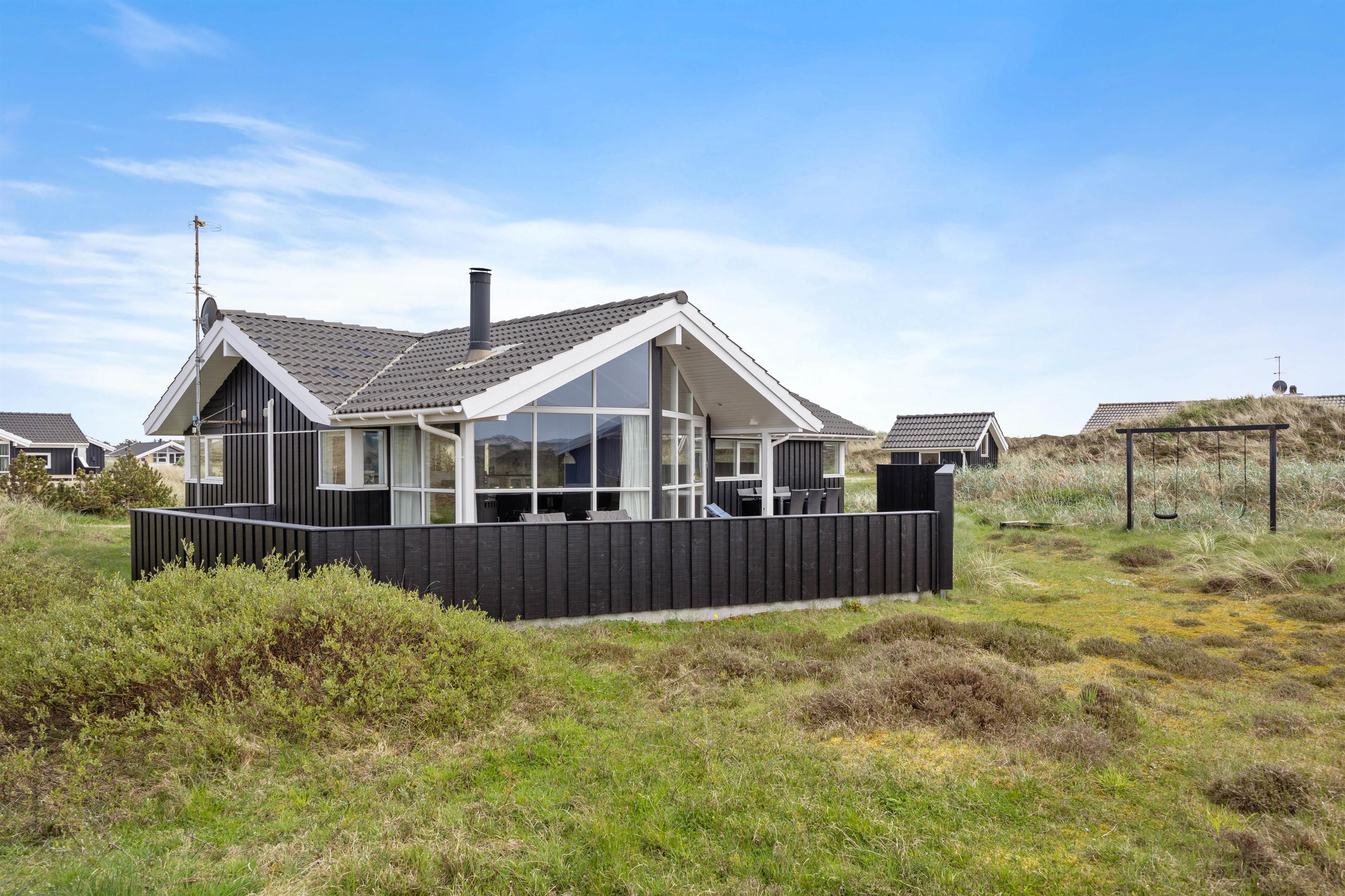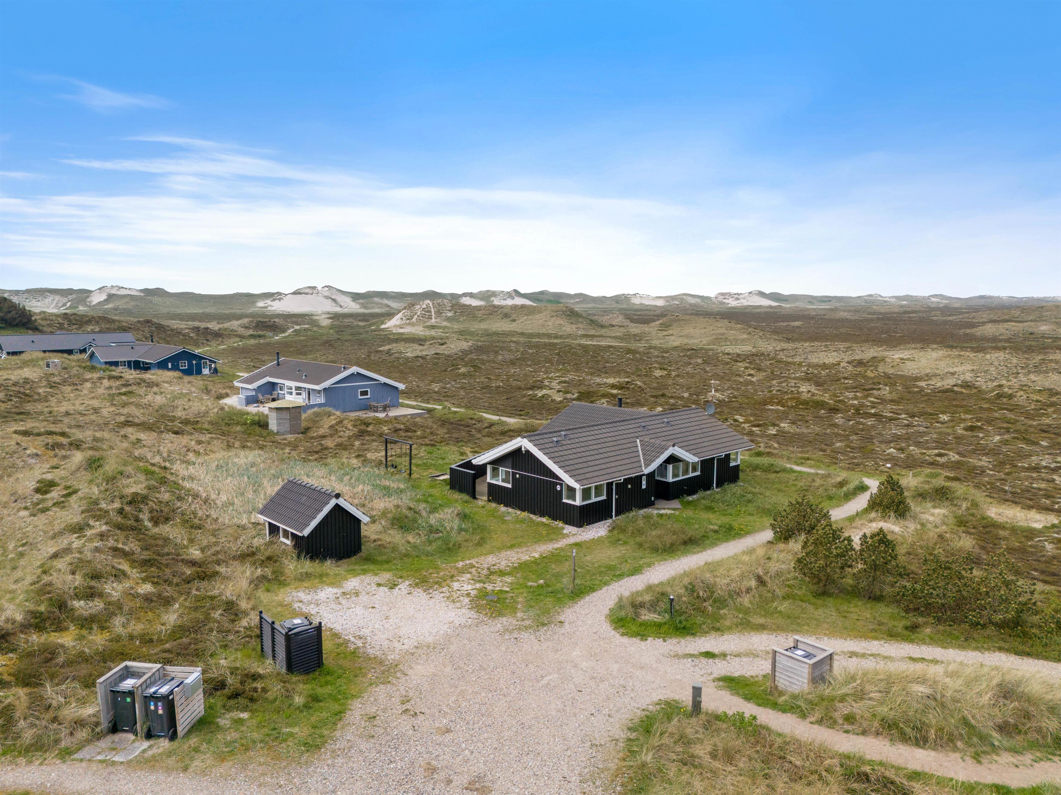 For enden af en rolig sidevej finder I dette fine sommerhus, der grænser op til stort hedeområde og er i gåafstand til Vesterhavet. Et familievenligt og lyst sommerhus, hvor de firbenede venner også er velkomne. Mod nordvest er en stor, lukket terrasse, hvorfra den fantastiske natur kan nydes.