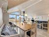 Feriehuset er særdeles velegnet til familien, som ønsker sig et hyggeligt sommerhus med gode faciliteter. I køkken og stue er der træloft til kip, som giver masser af lys i sommerhuset. Indretningen er særdeles indbydende og personlig, så I hurtigt vil føle jer hjemme. I sommerhusets opholdsrum er der en brændeovn, som spreder varme og gør ferien ekstra hyggelig.