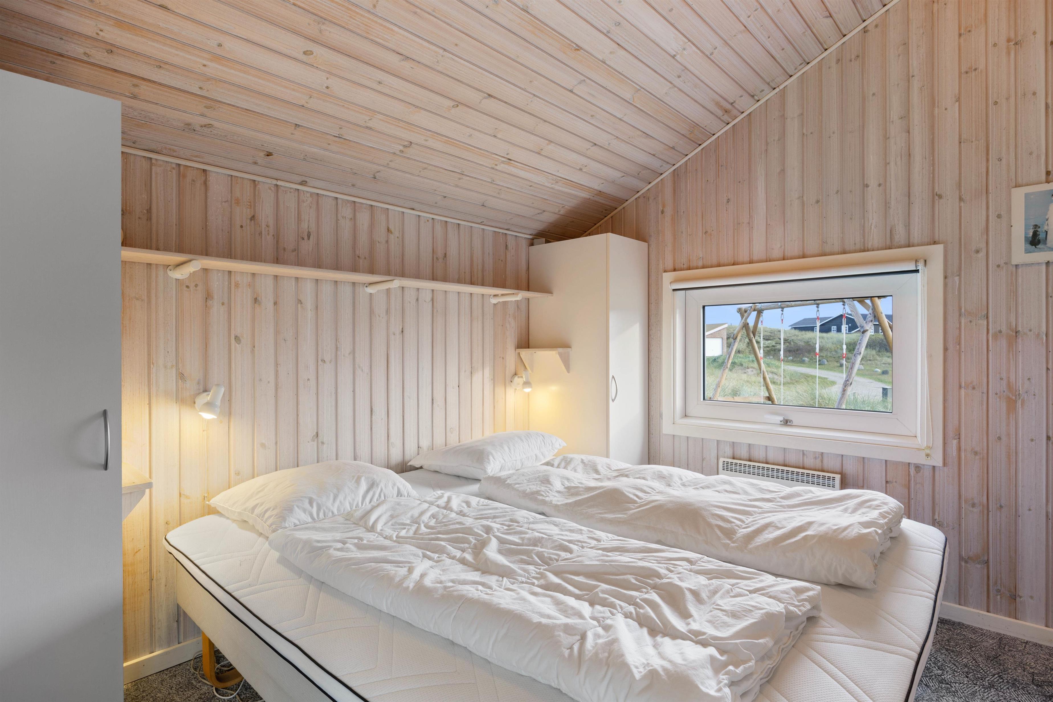 Sommerhuset er beliggende i Bjerregård, tæt på stranden og Vesterhavet. Her kan familien nyde en afslappende ferie væk fra hverdagens stress og jag – her er plads til 8 gæster og deres 2 hunde. Her er 3 soverum, hvoraf 2 er indrettet med dobbeltseng og det sidste med 2 enkeltsenge. De sidste 2 sovepladser findes i stuen i form af en hyggelige alkove. Her vil børnene helt sikkert elske at sove i deres egen lille hule.