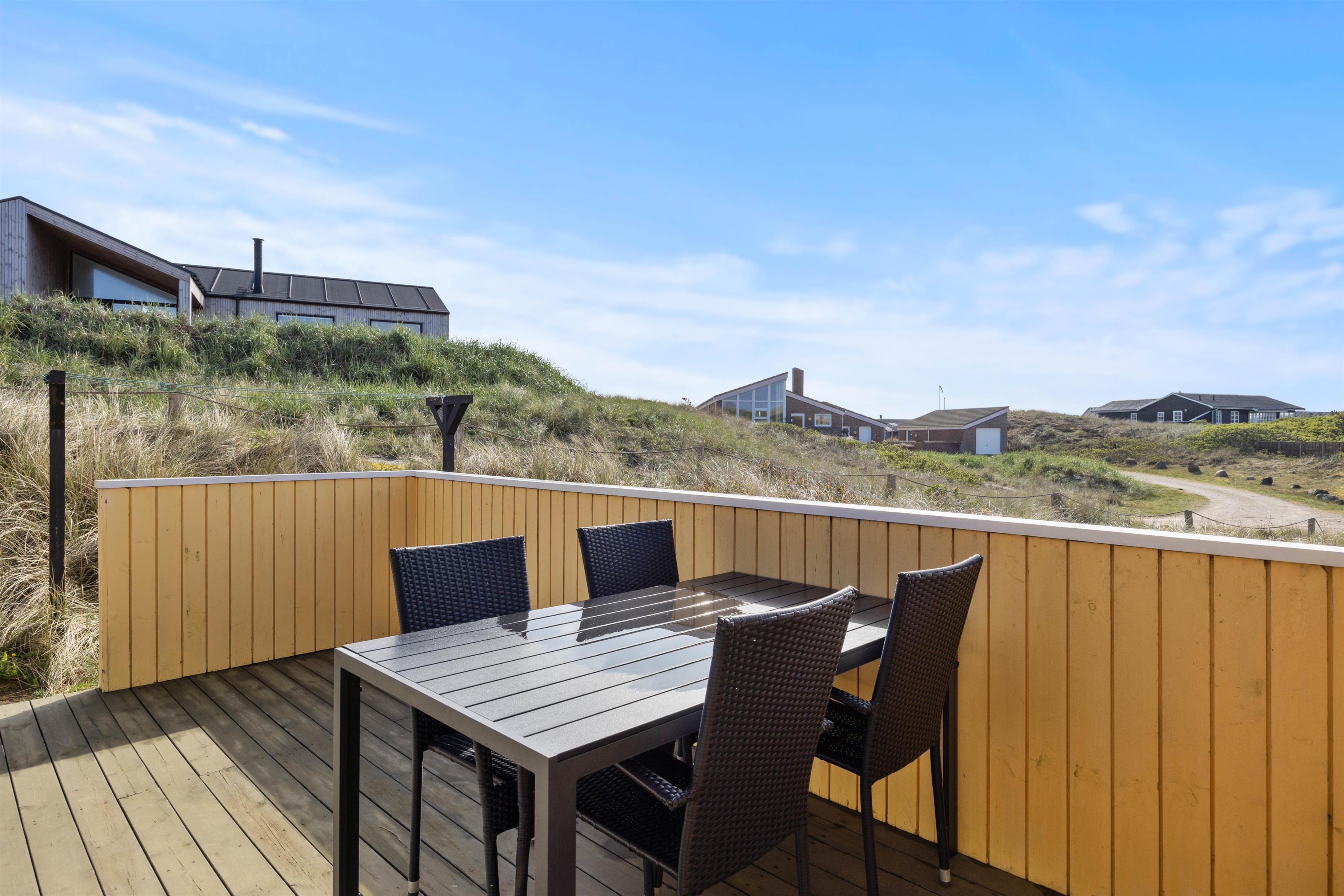 Et fint og klassisk 2-stjernet sommerhus med herlig beliggehed kun et par minutters gang fra stranden. Sommerhuset har flere terrasser, så her finder I altid en lækrog, hvor I kan nyde den friske luft og lytte til bølgernes brusen. To af terrasserne lukkede, hvilket er helt perfekt, hvis I har børn eller hunde.