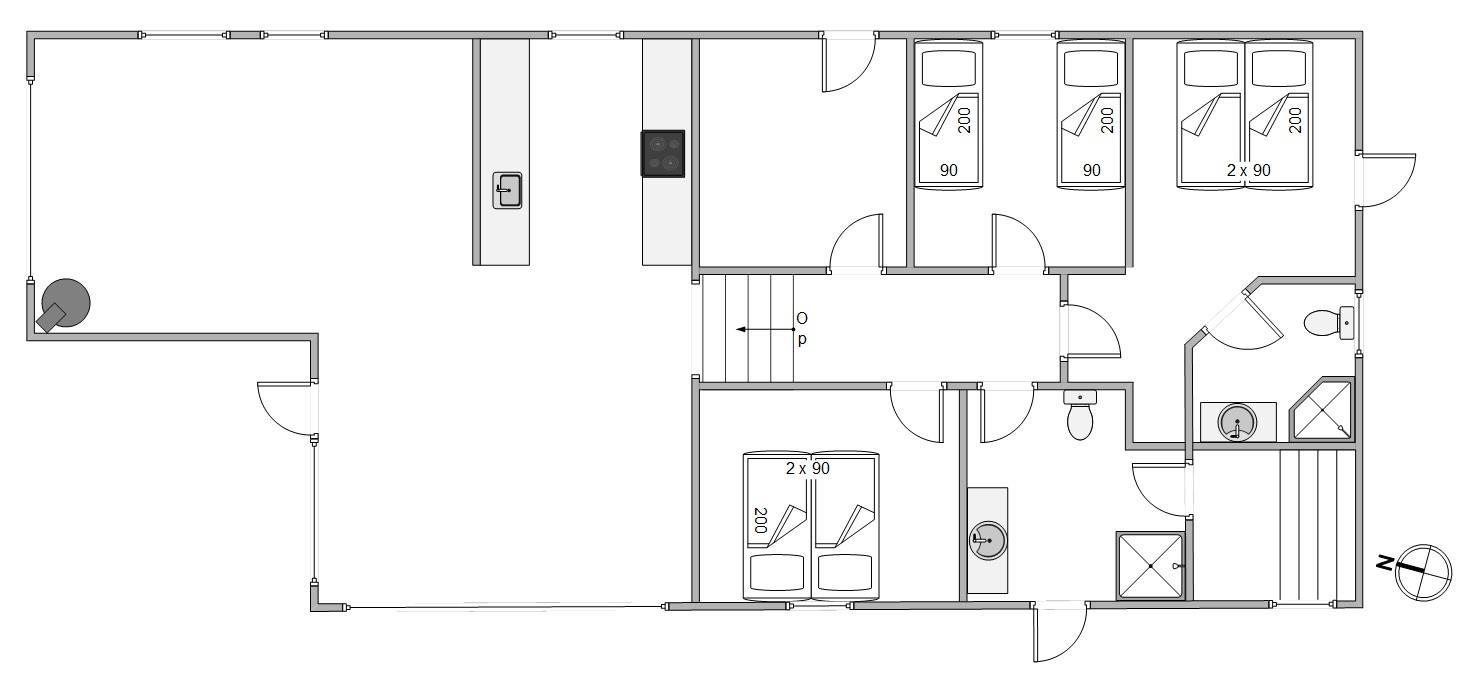 Feriehuset er indrettet til 6 personer (og 2 hunde), og med 112 m² i forskudt plan, så har I mere end god plads. Det store opholdsrum med stue, køkken og spiseafdeling i ét bliver feriens mødested, og foran den knitrende brændeovn kommer I garanteret til at tilbringe mange hyggelige stunder med sene filmaftener, rødvin efter aftensmaden eller varm kakao på en frostklar vinterdag.