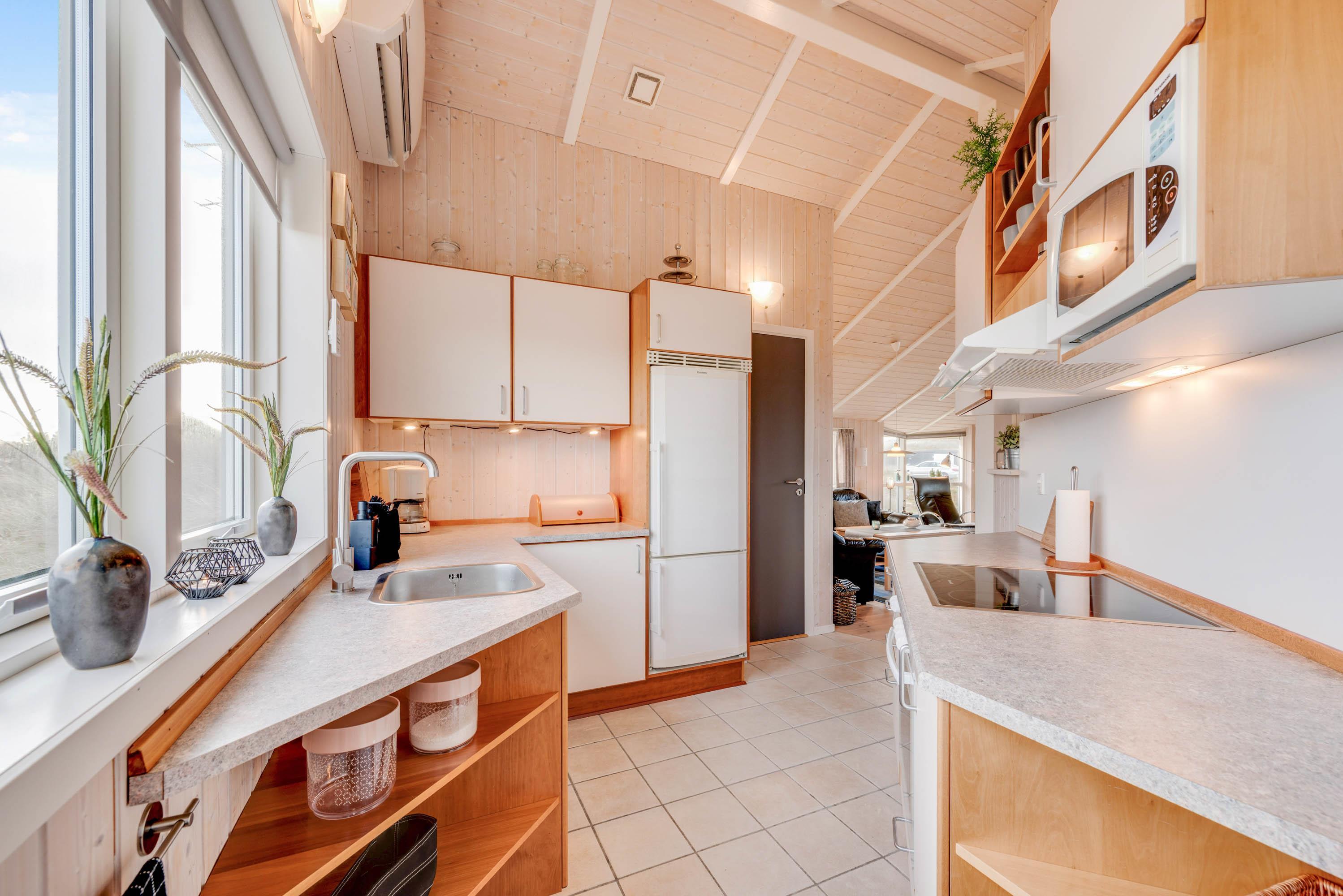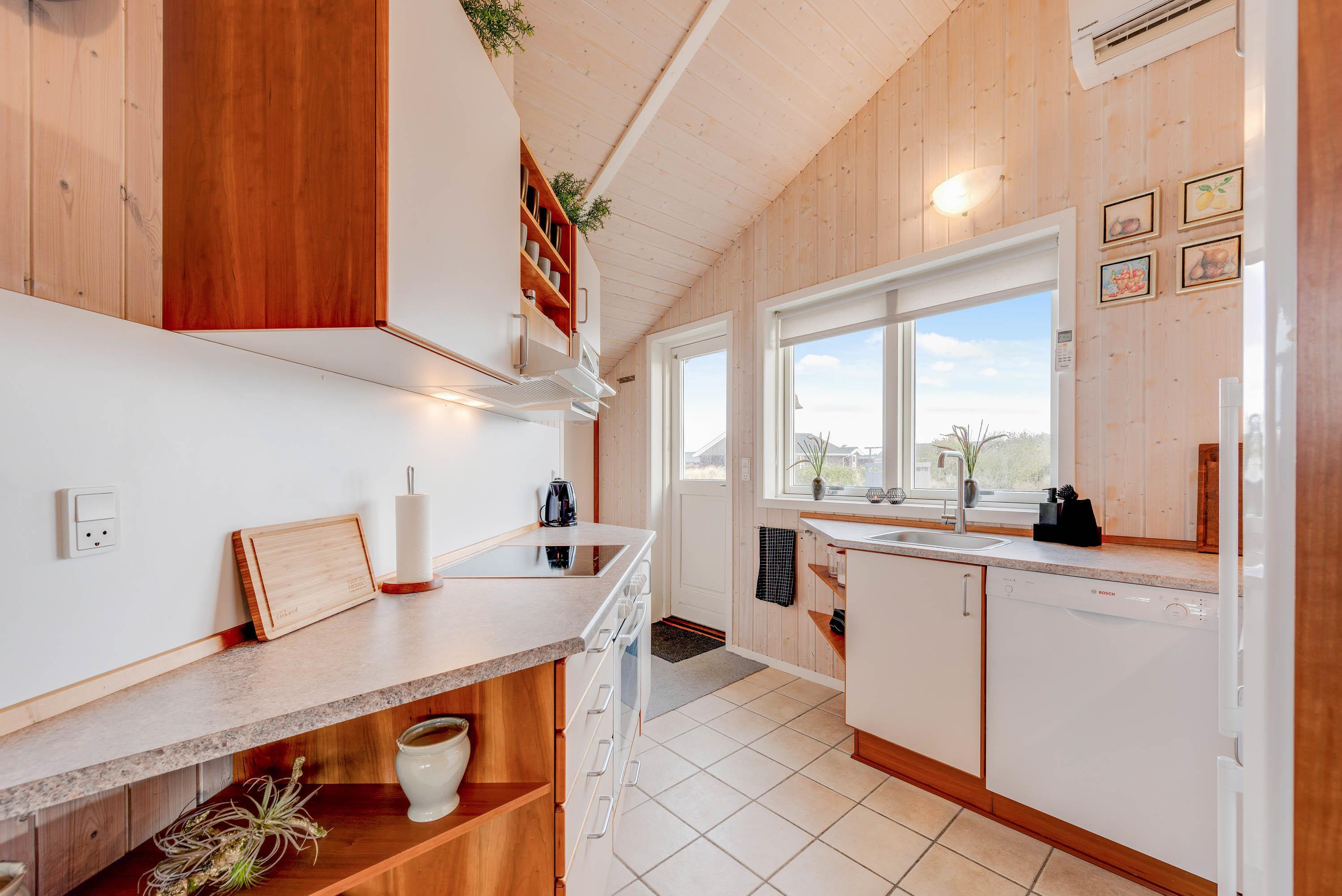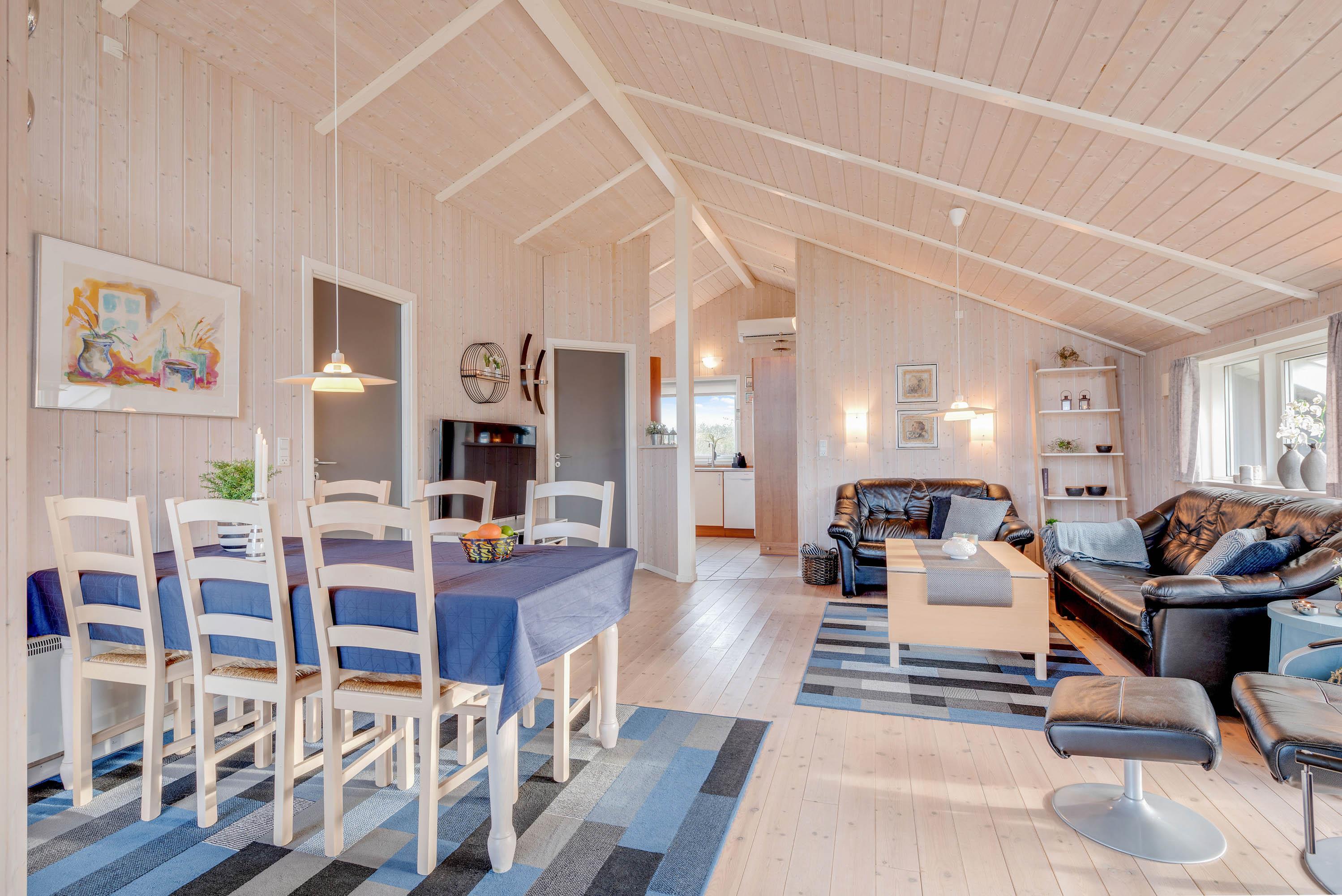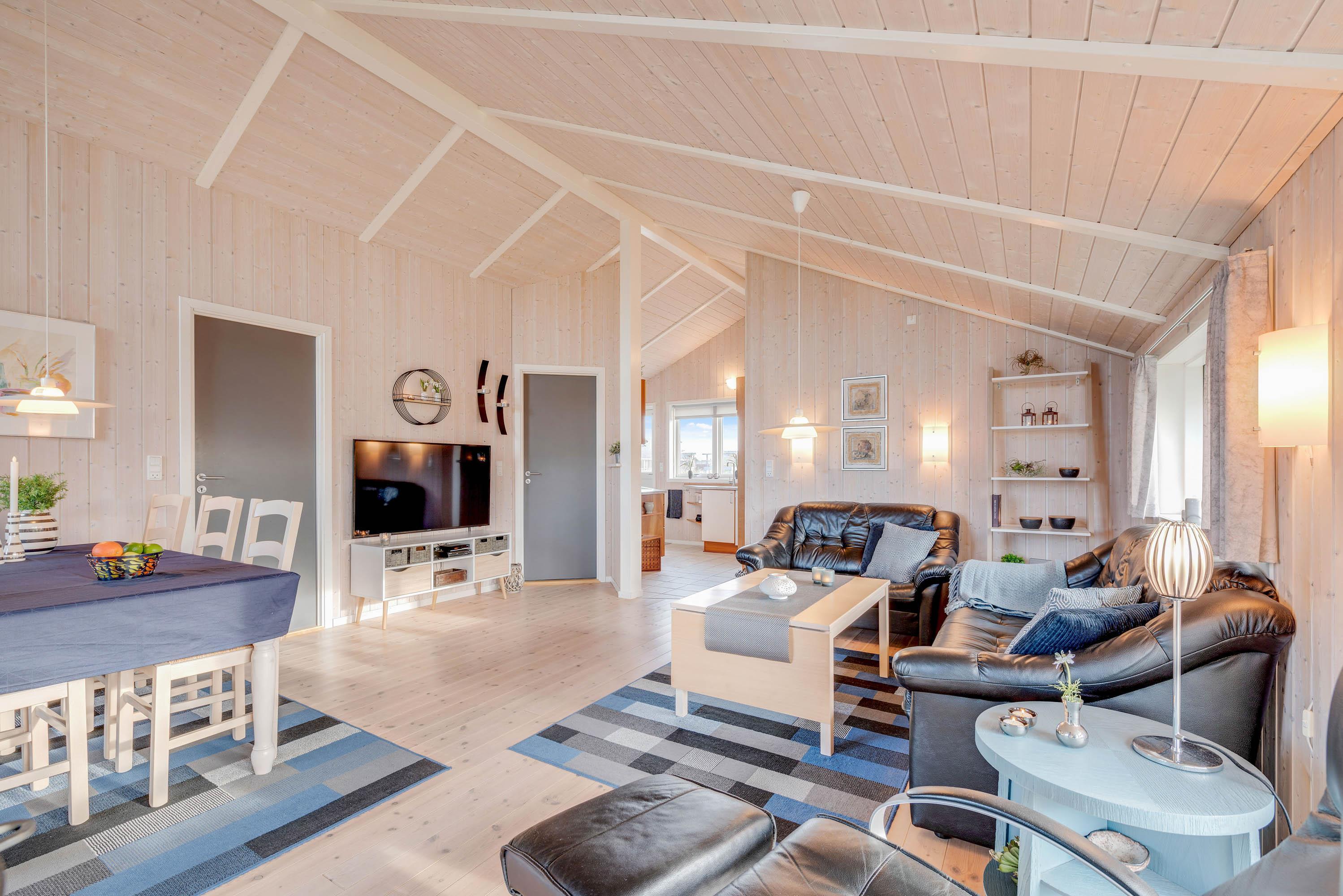 Husets hjerte er det åbne opholdsrum med stue og spiseafdeling, som ligger i åben forbindelse til det veludstyrede køkken. Her er rammerne sat for en masse hyggelige feriestunder med de nærmeste, og med den knitrende brændeovn i baggrunden bliver dagene kun endnu hyggeligere.