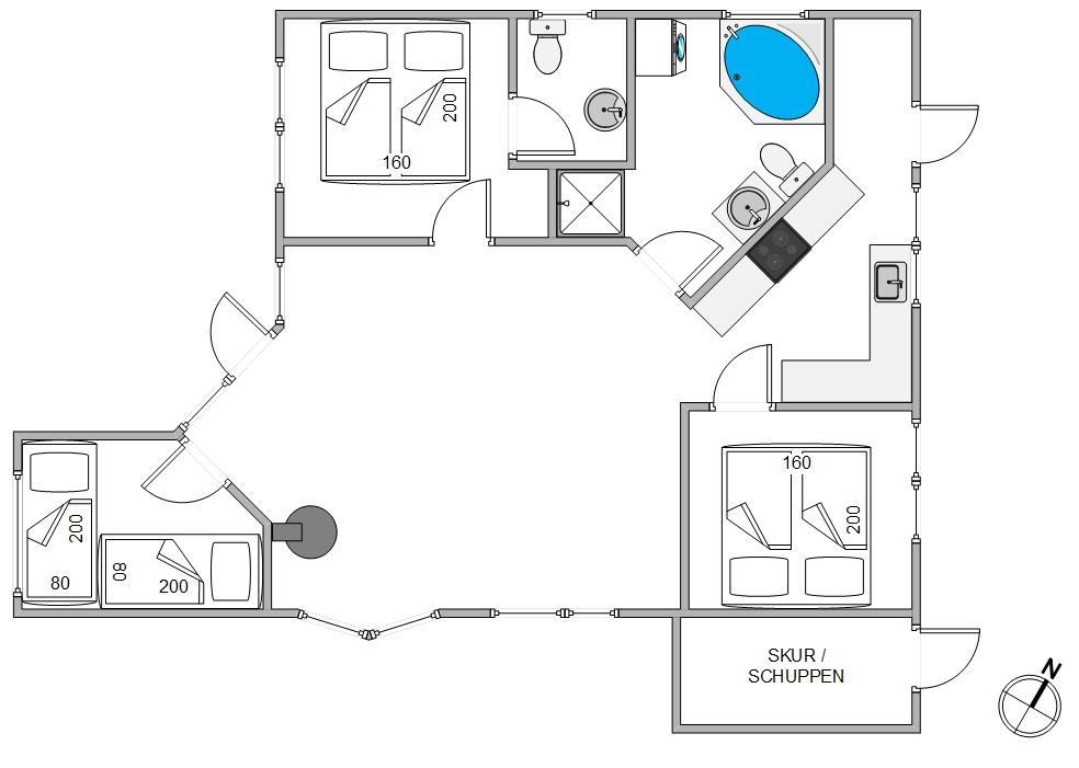 Trænger I til lidt ekstra varme og wellness, er der også mulighed for det. I det store badeværelse står nemlig et spabad, hvor I kan forkæle jer selv lidt ud over det sædvanlige og lade batterierne op til en ny og spændende feriedag.