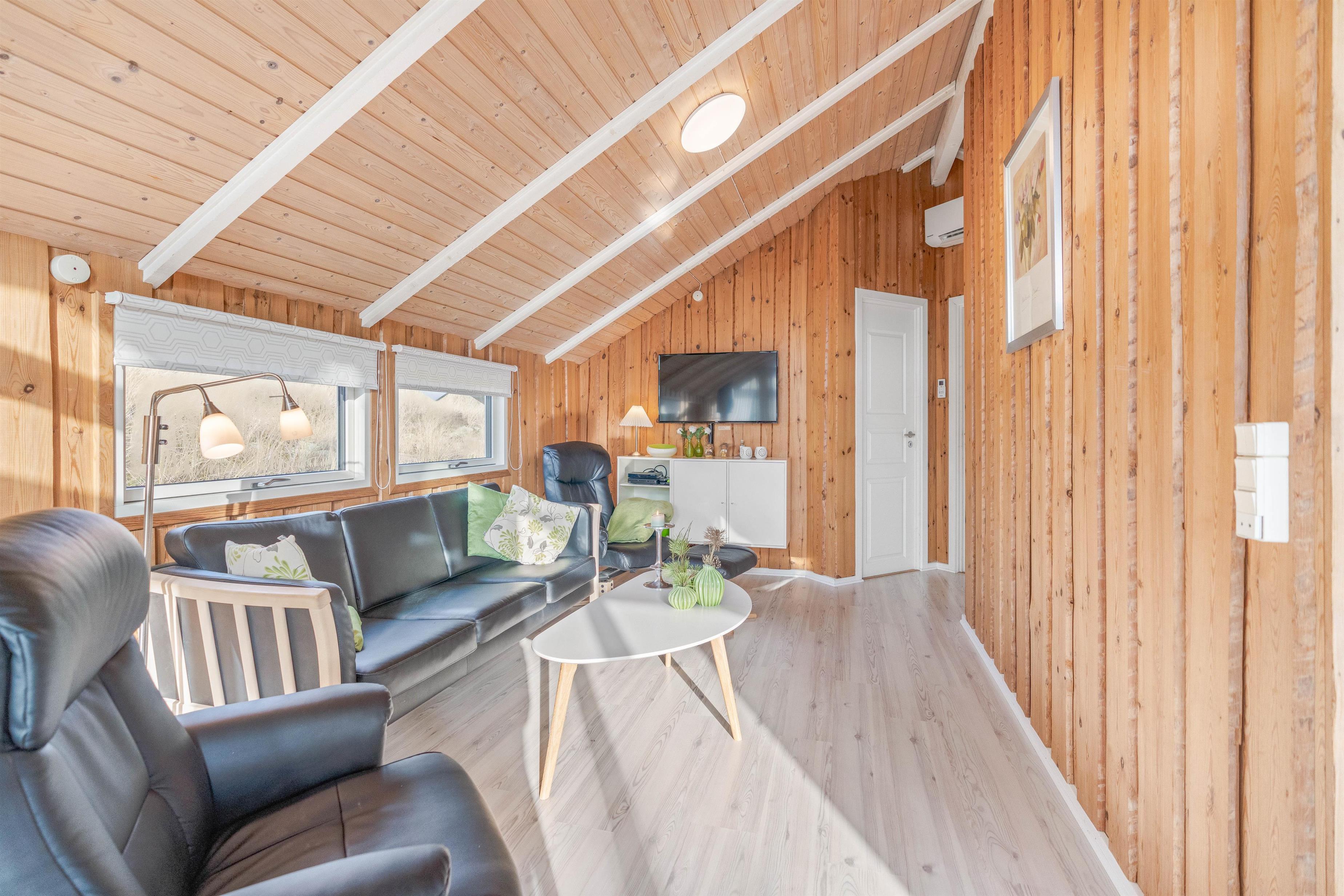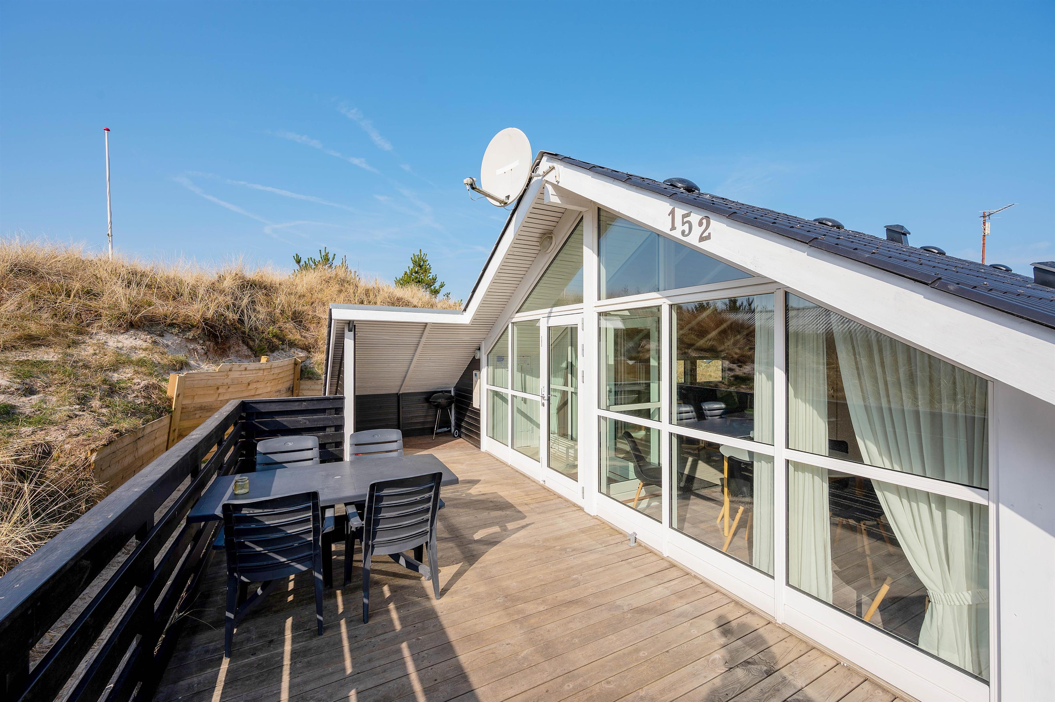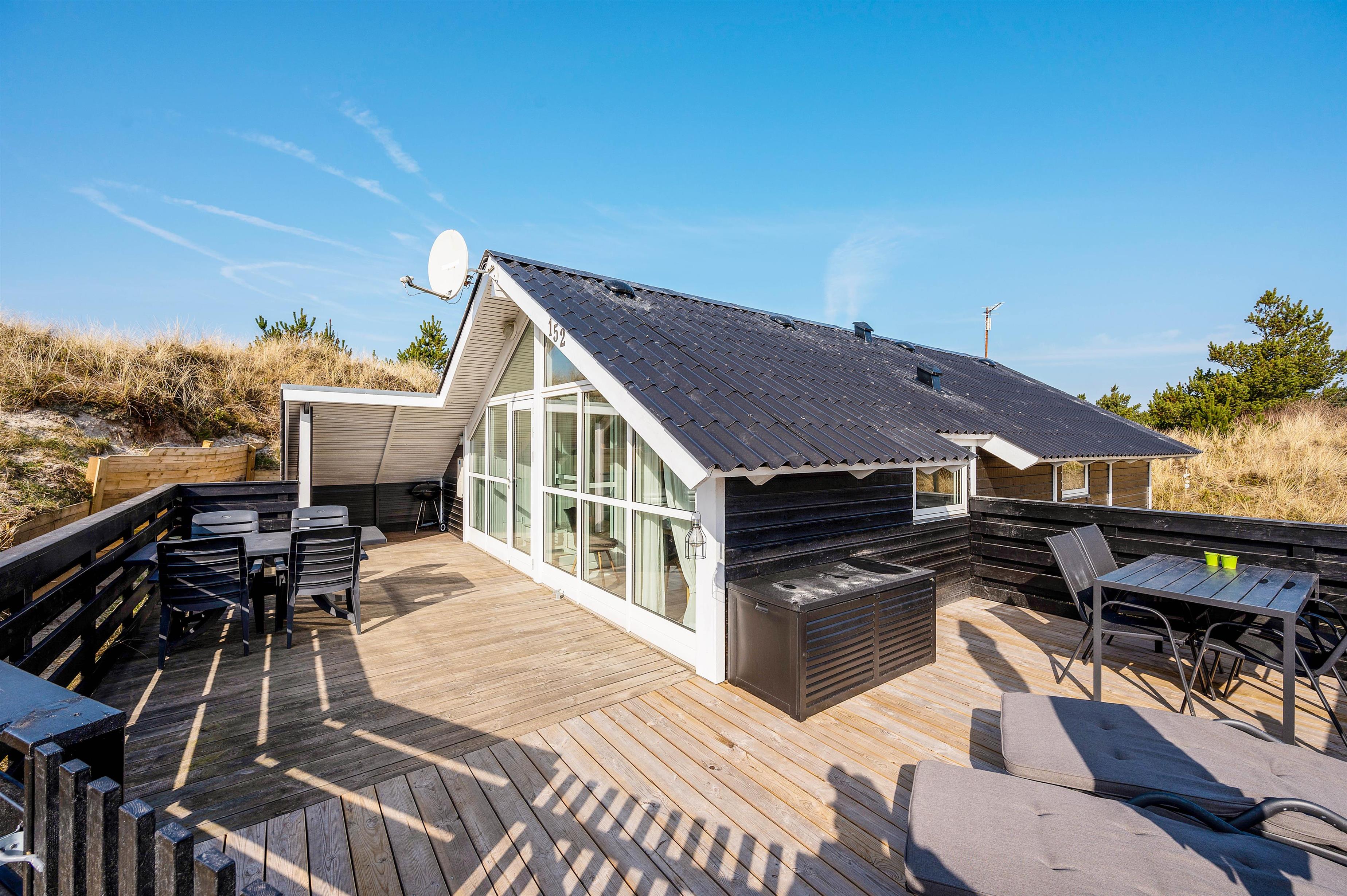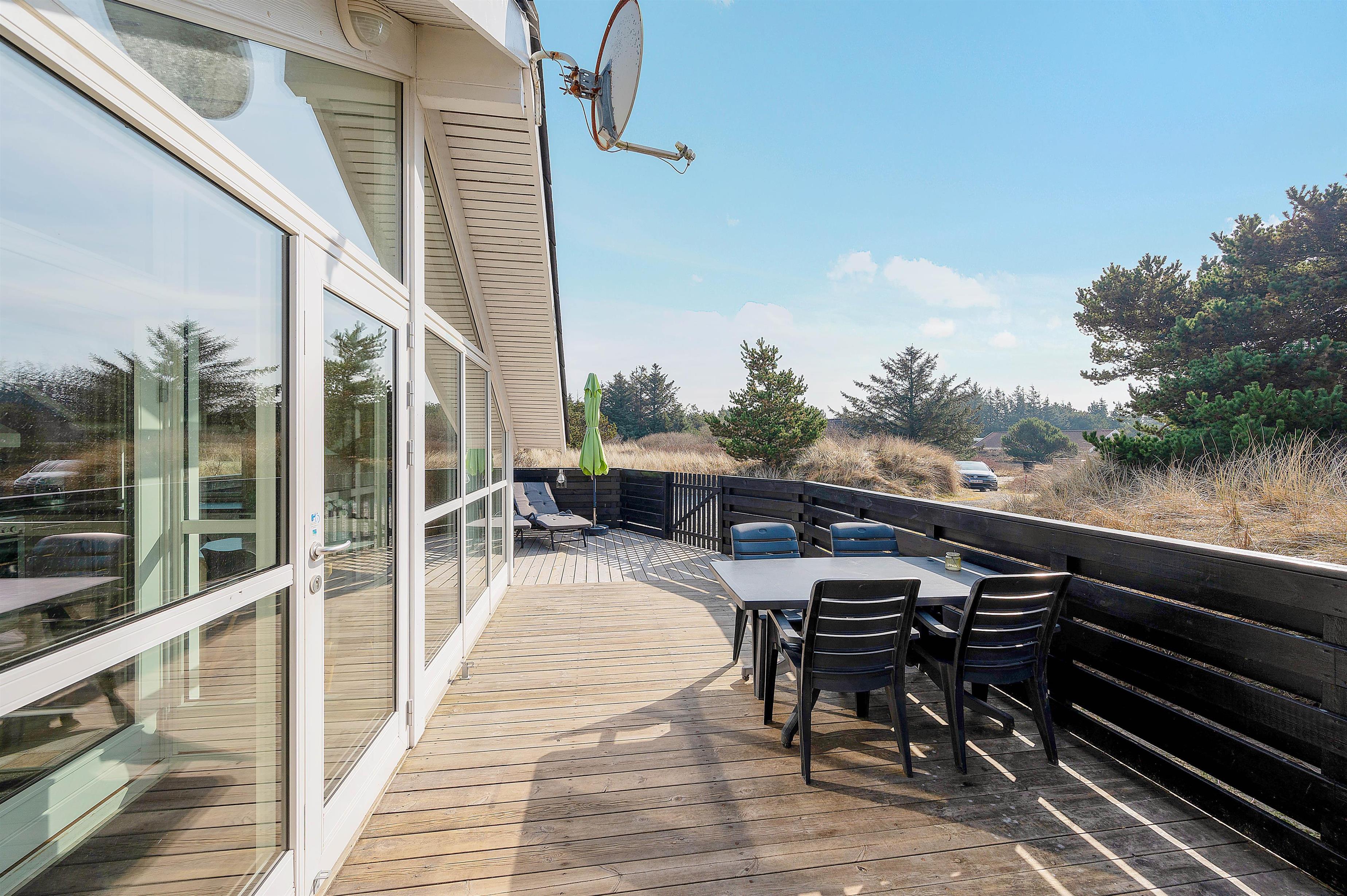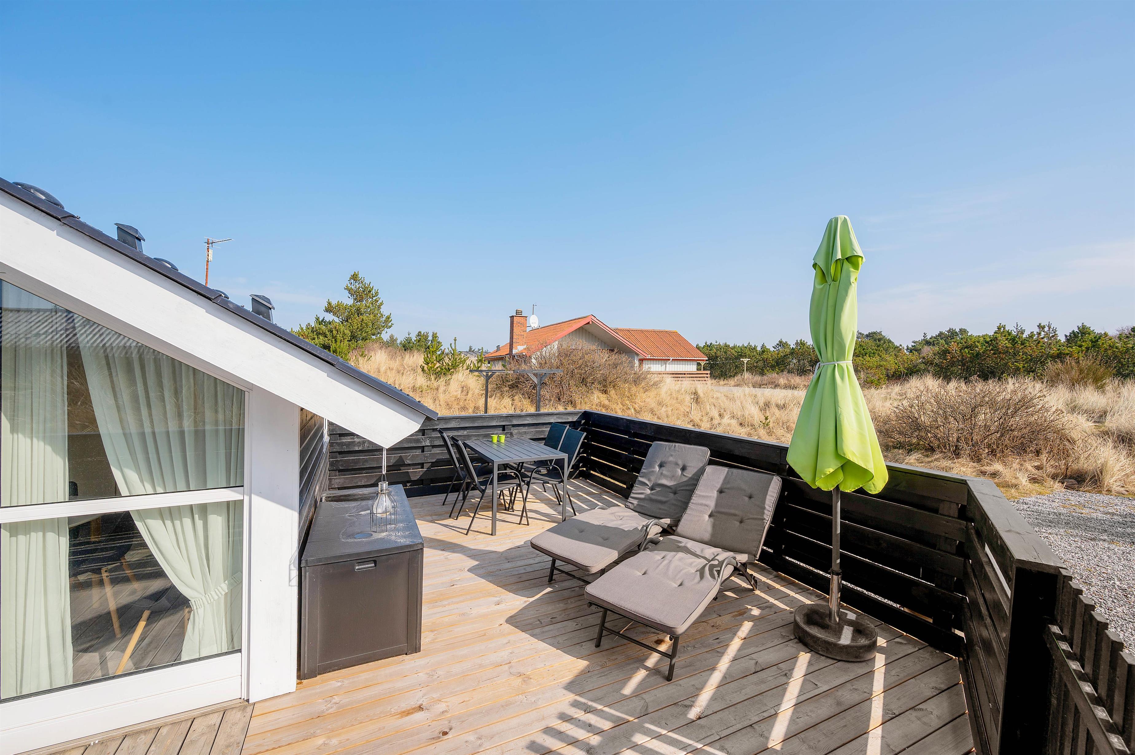 Terrassen er lukket og er placeret mod syd og er derfor anvendelig meget af dagen. Derudover er den delvist overdækket og afskærmet, hvilket gør den ideel til grillaftener eller til dage, hvor man trænger til skygge eller læ for vinden. Vesterhavet og de brede sandstrande ligger kun 900 meter fra feriehuset, og det giver naturligvis mulighed for mange skønne vandreture med familien.