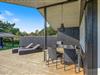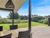 Afskærmet og delvist overdækket terrasse på stor plænegrund