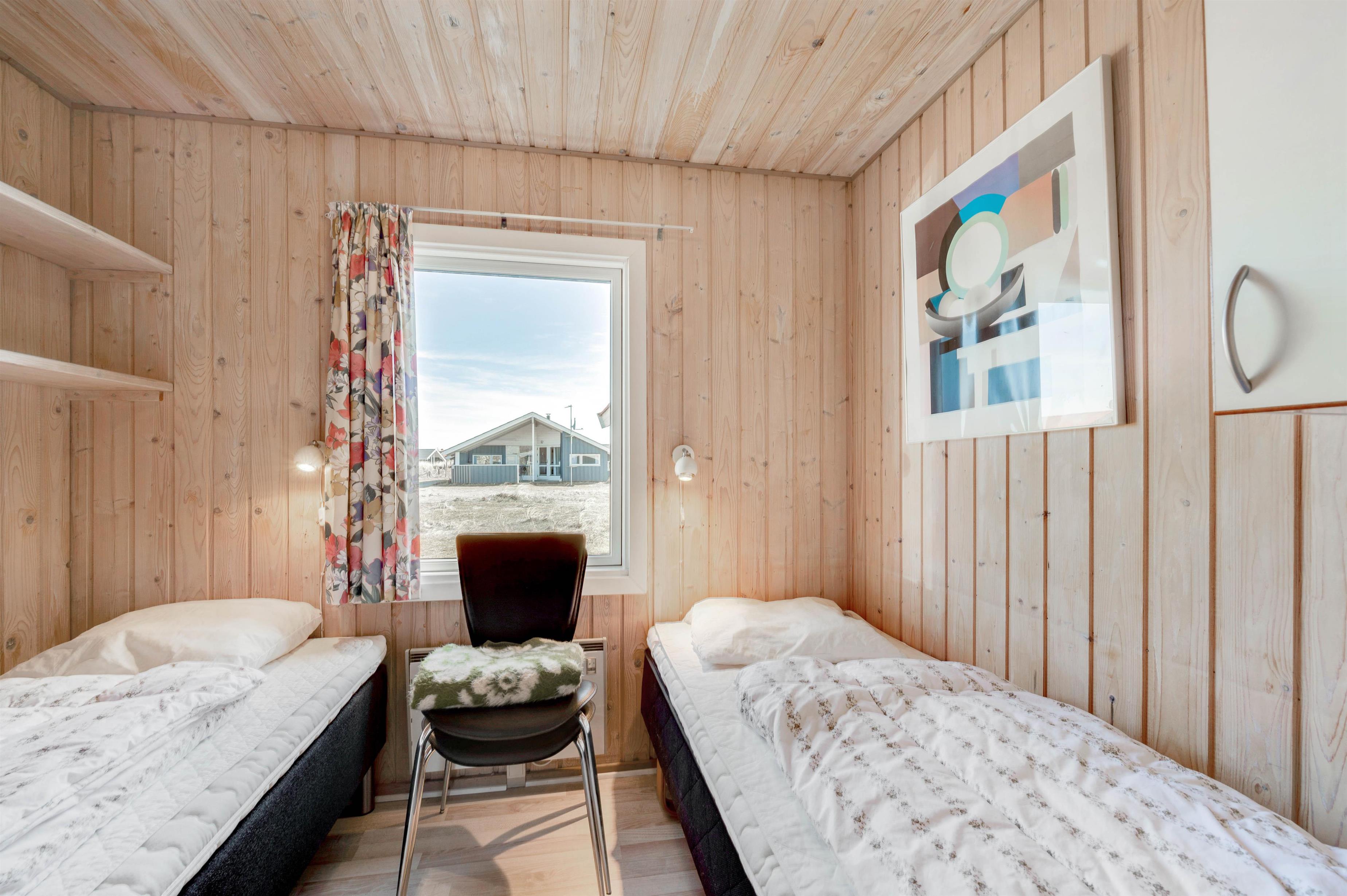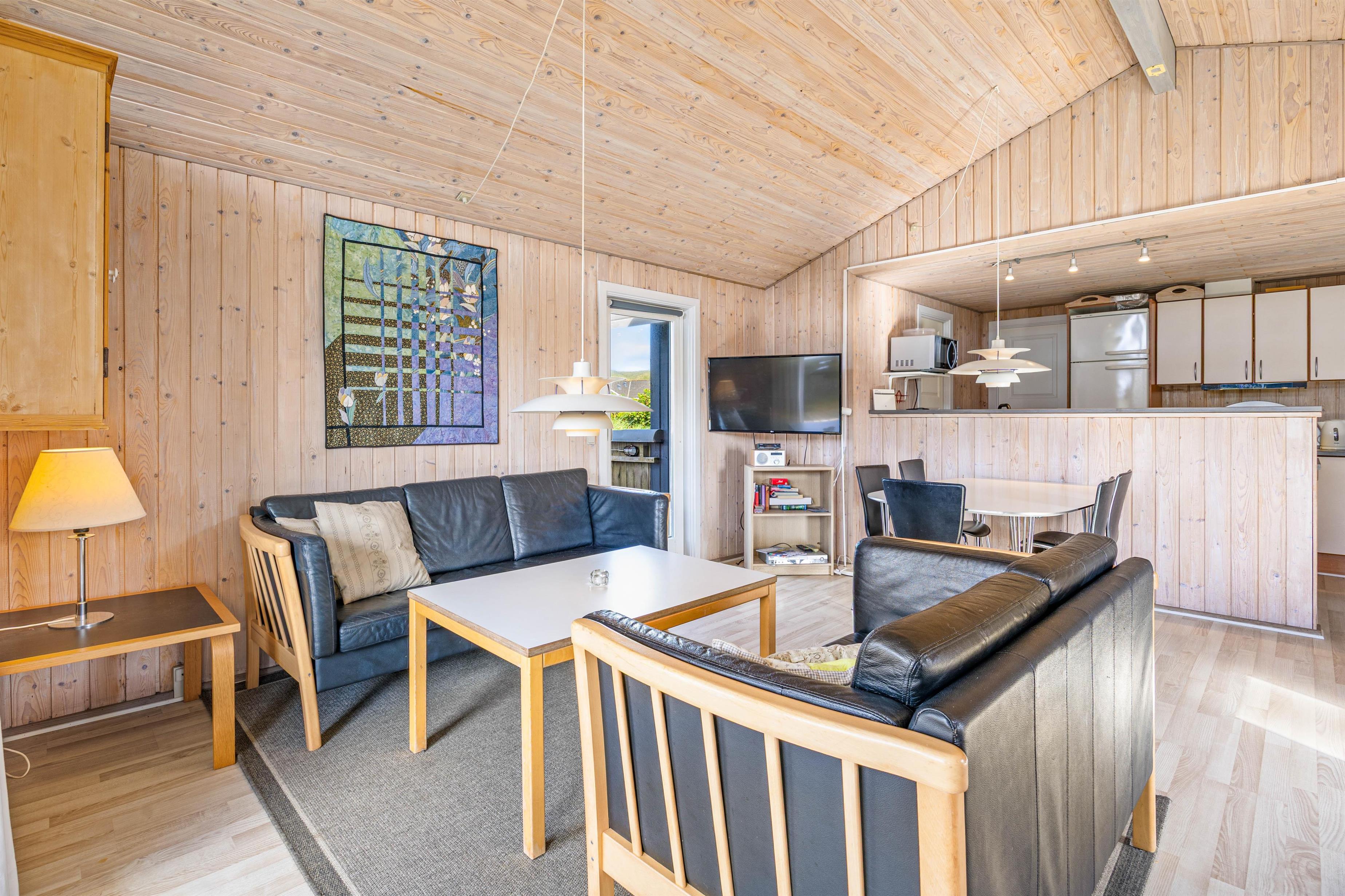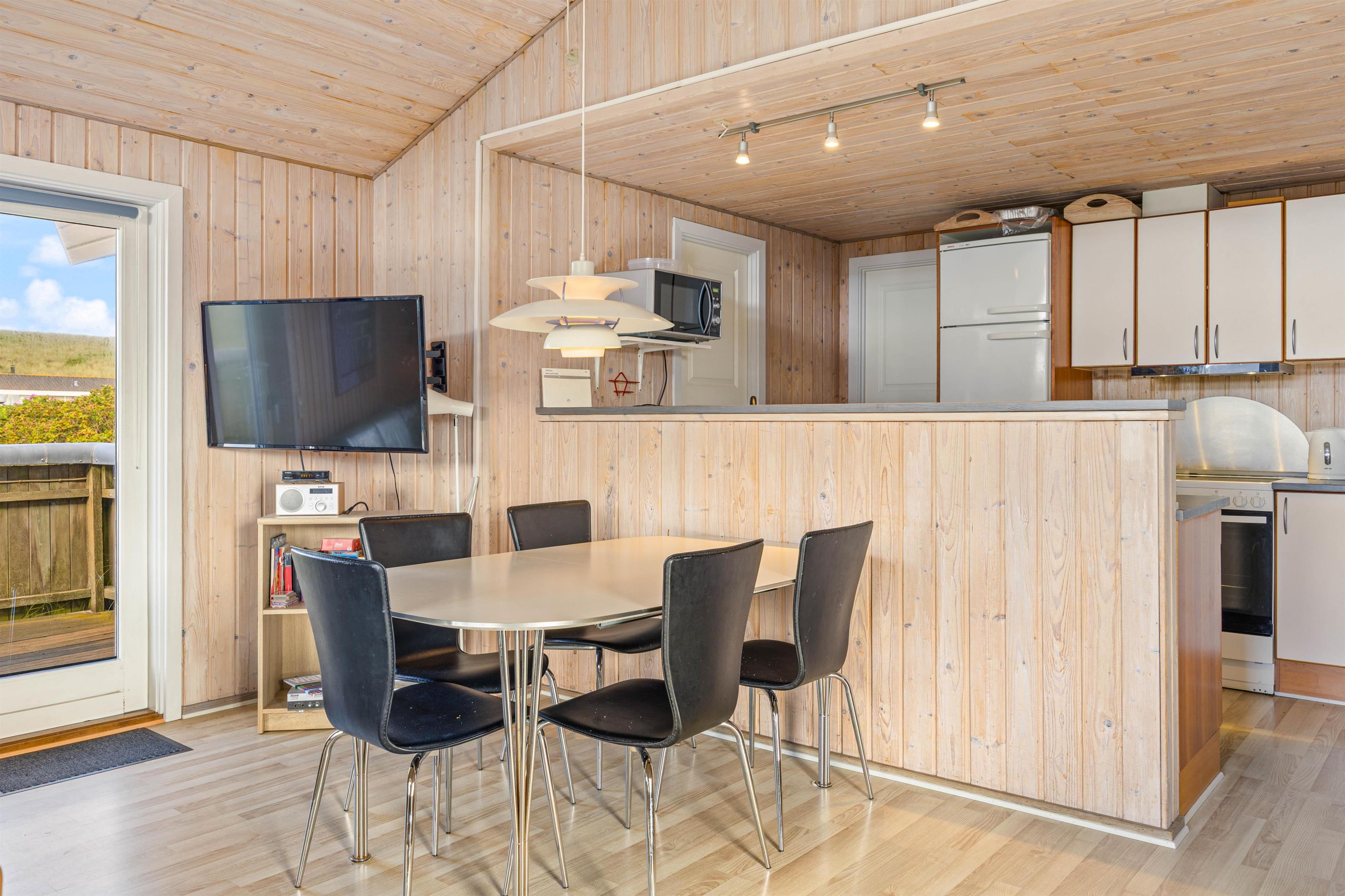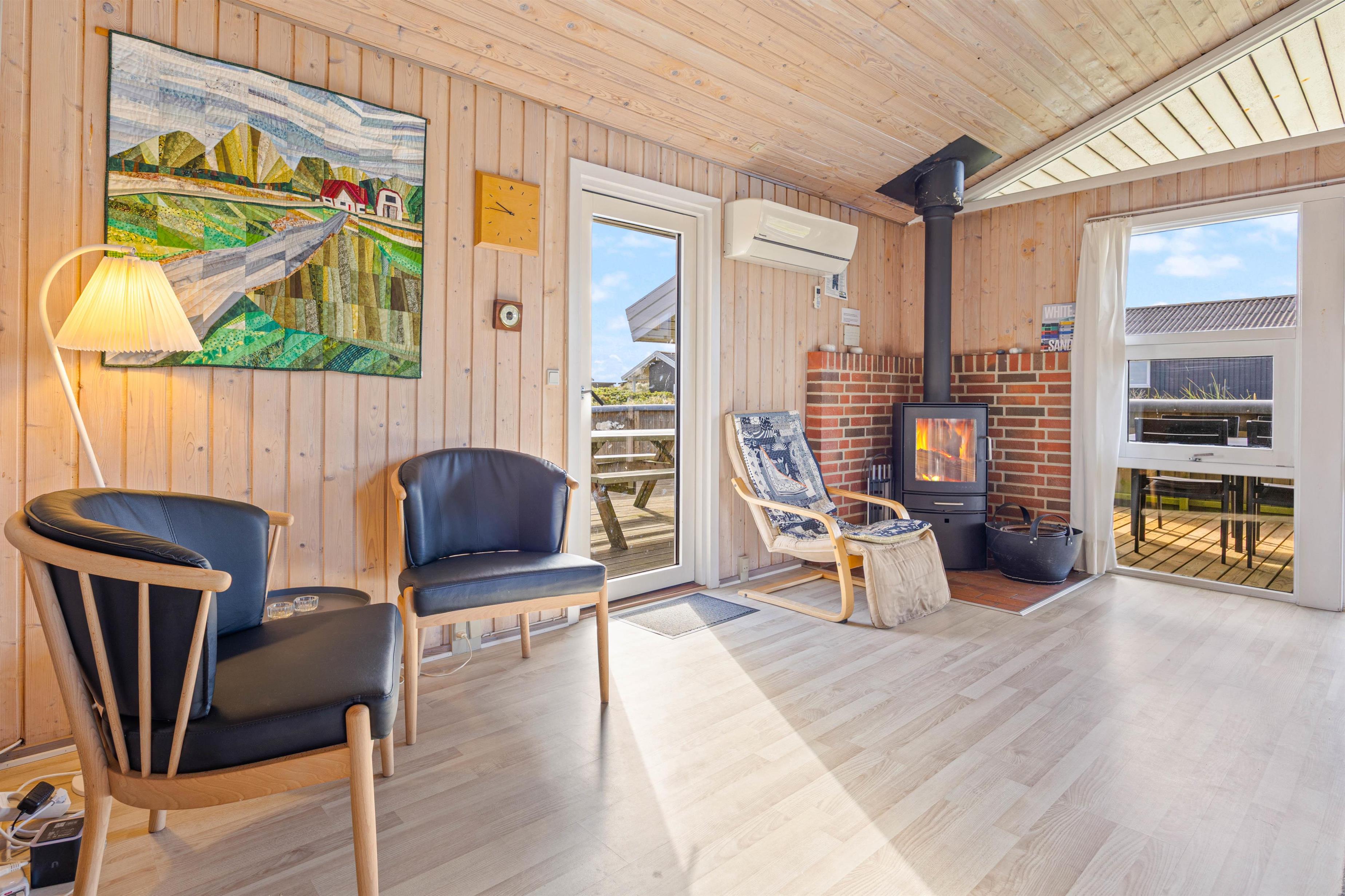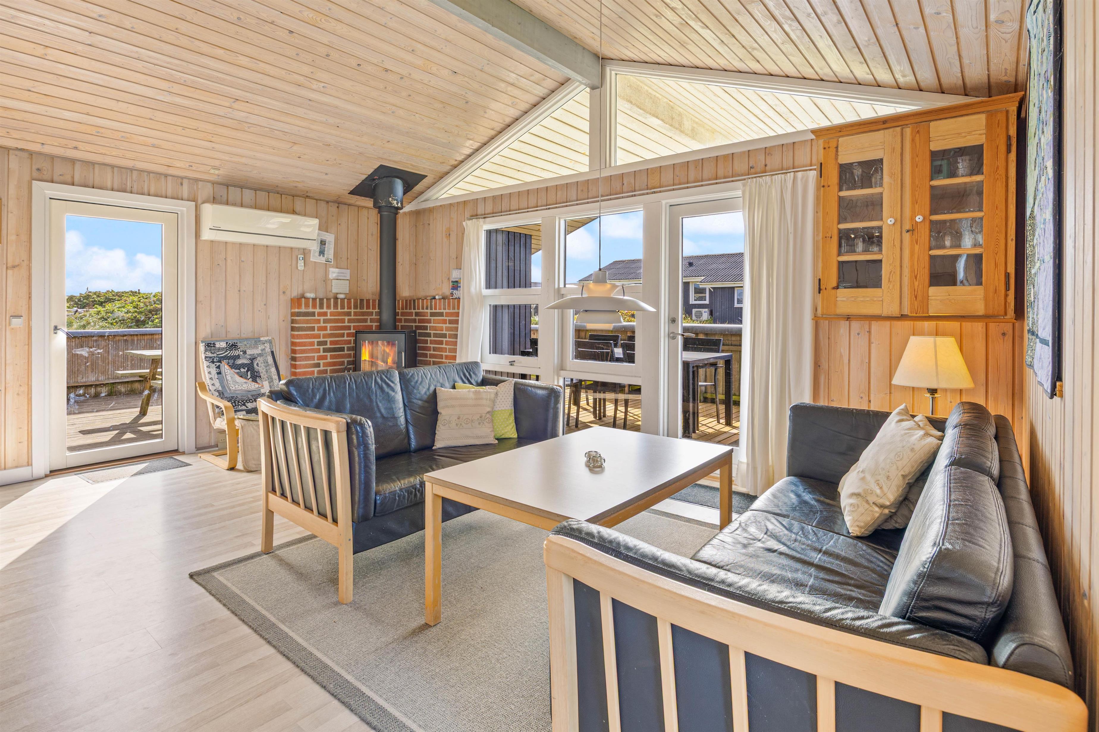 Det flotte landskab, som breder sig omkring feriehuset kan nydes fra havemøblerne på terrassen, men kan også ses fra feriehusets inderum. Ønsker I at bade i Vesterhavet, ligger sommerhuset tæt på en sti, der fører jer direkte ned til den hvide sandstrand og de brusende bølger. Feriehuset ligger kun 100 meter fra vandet.