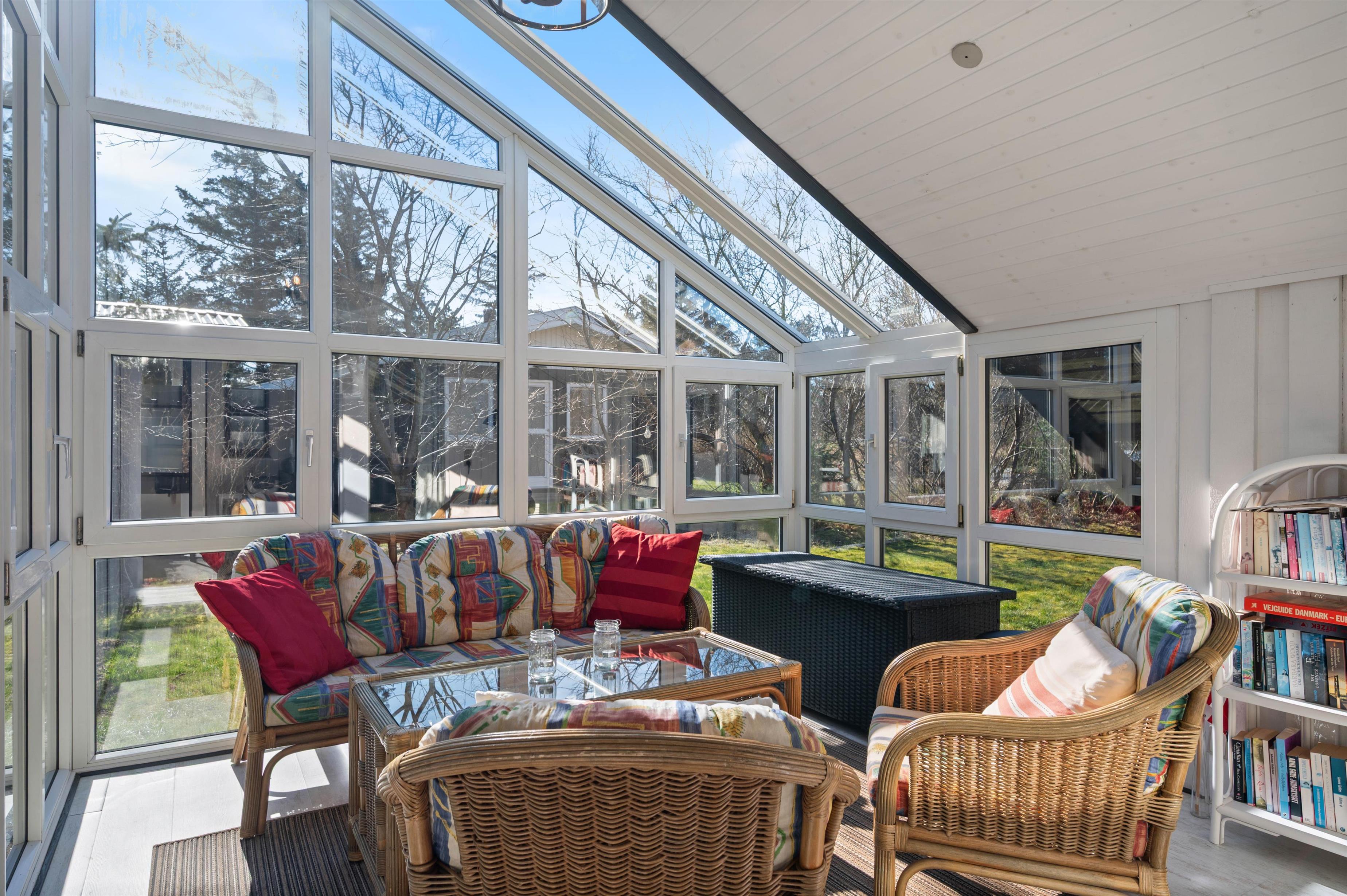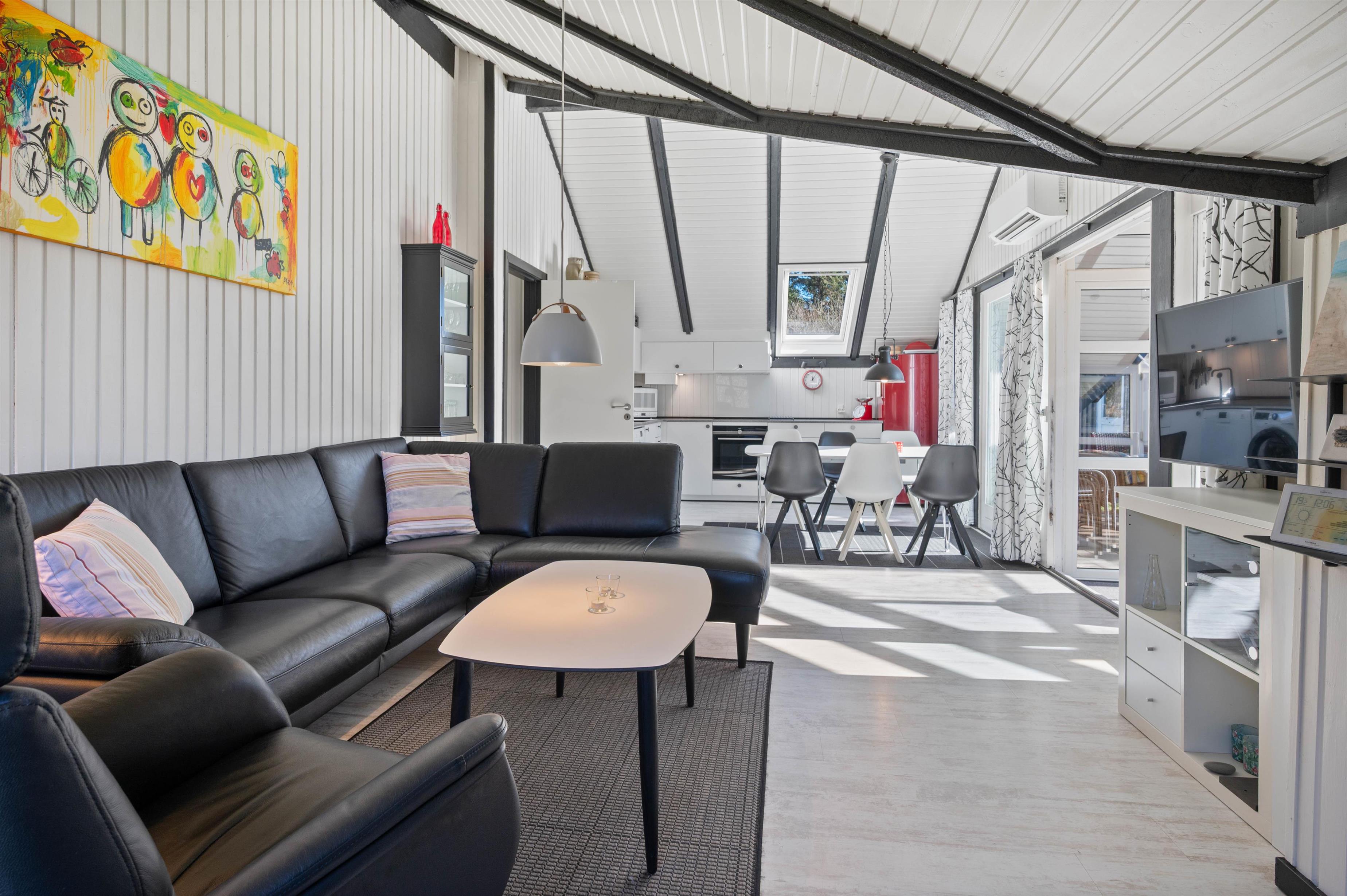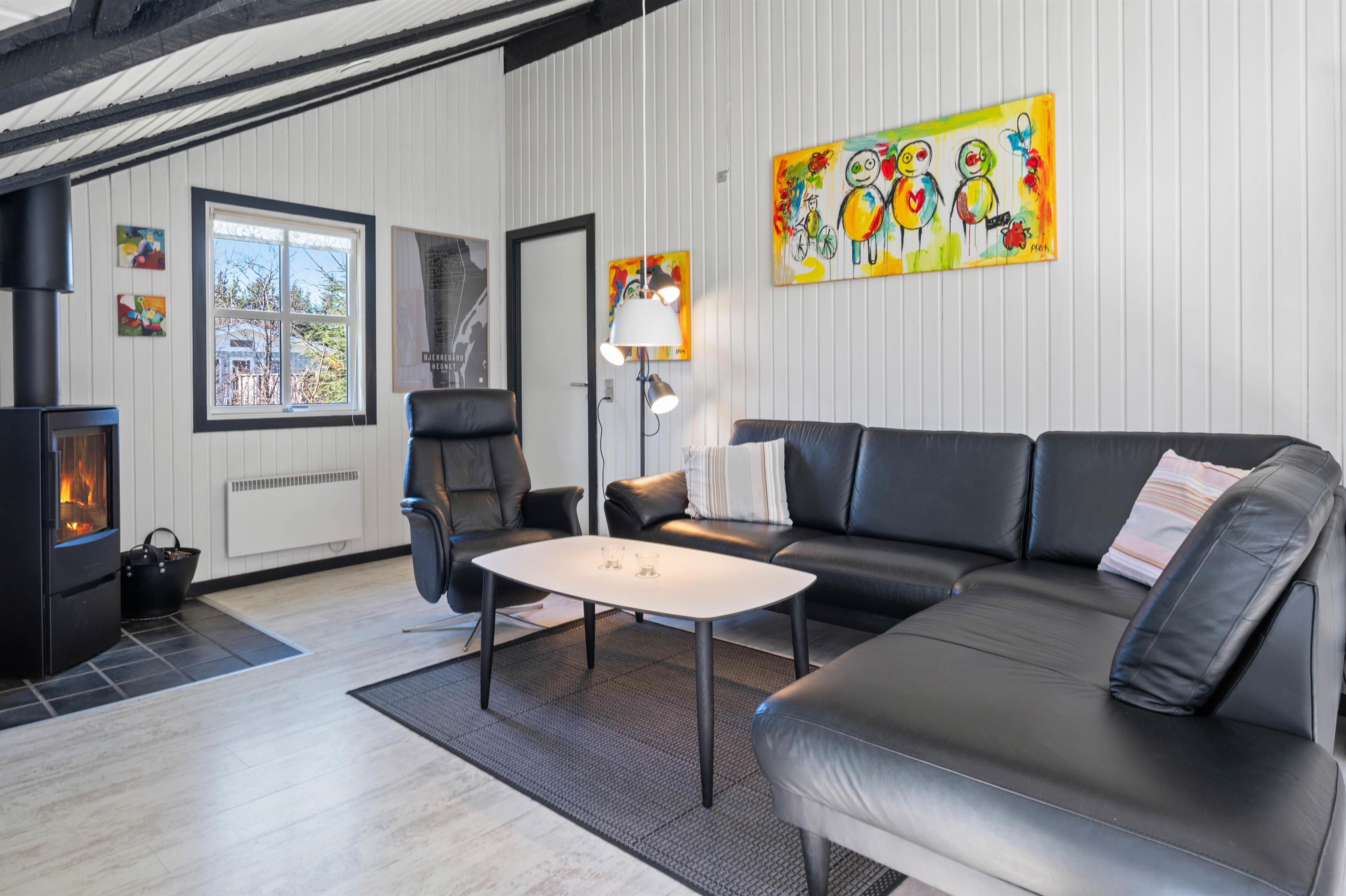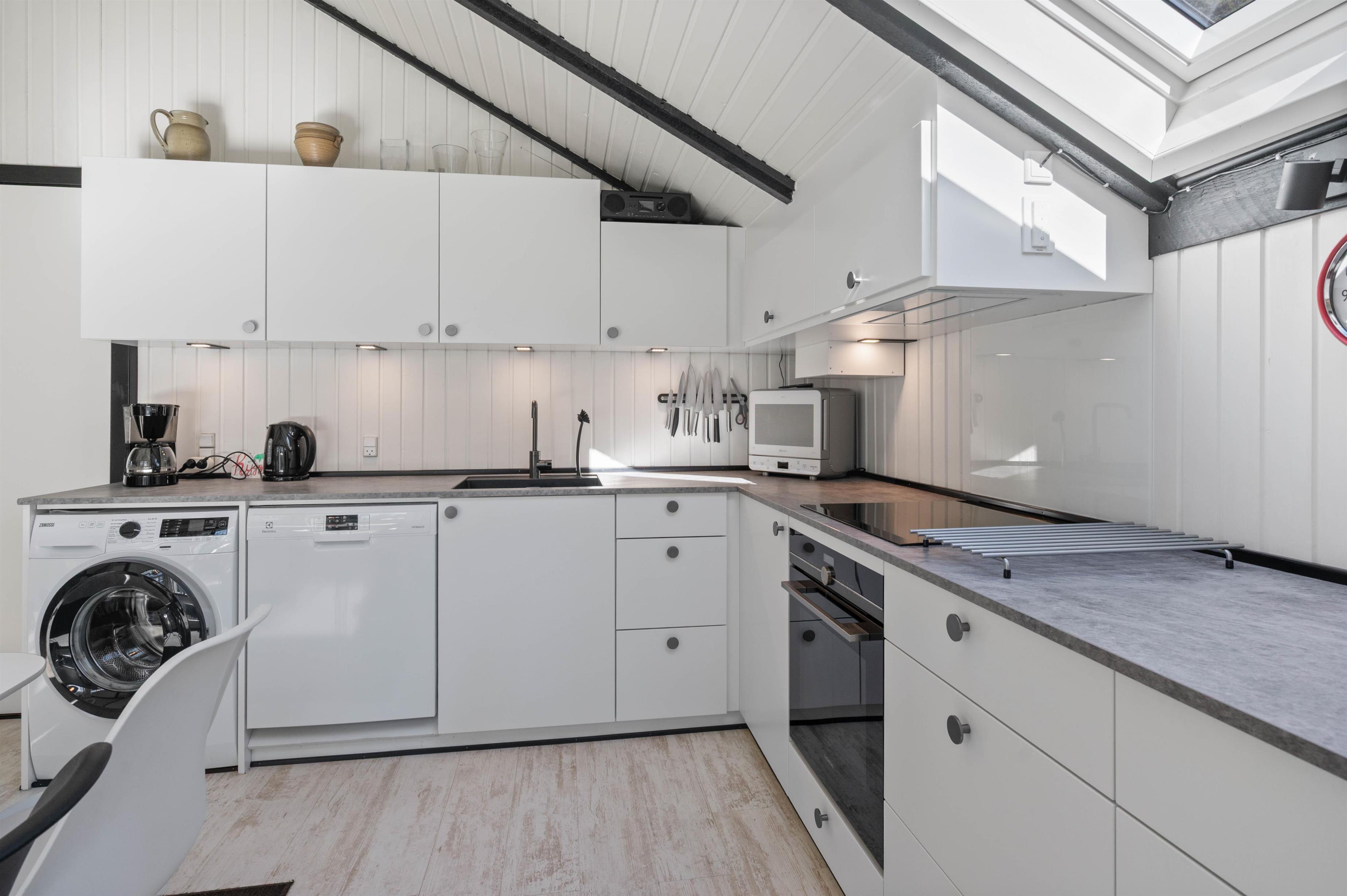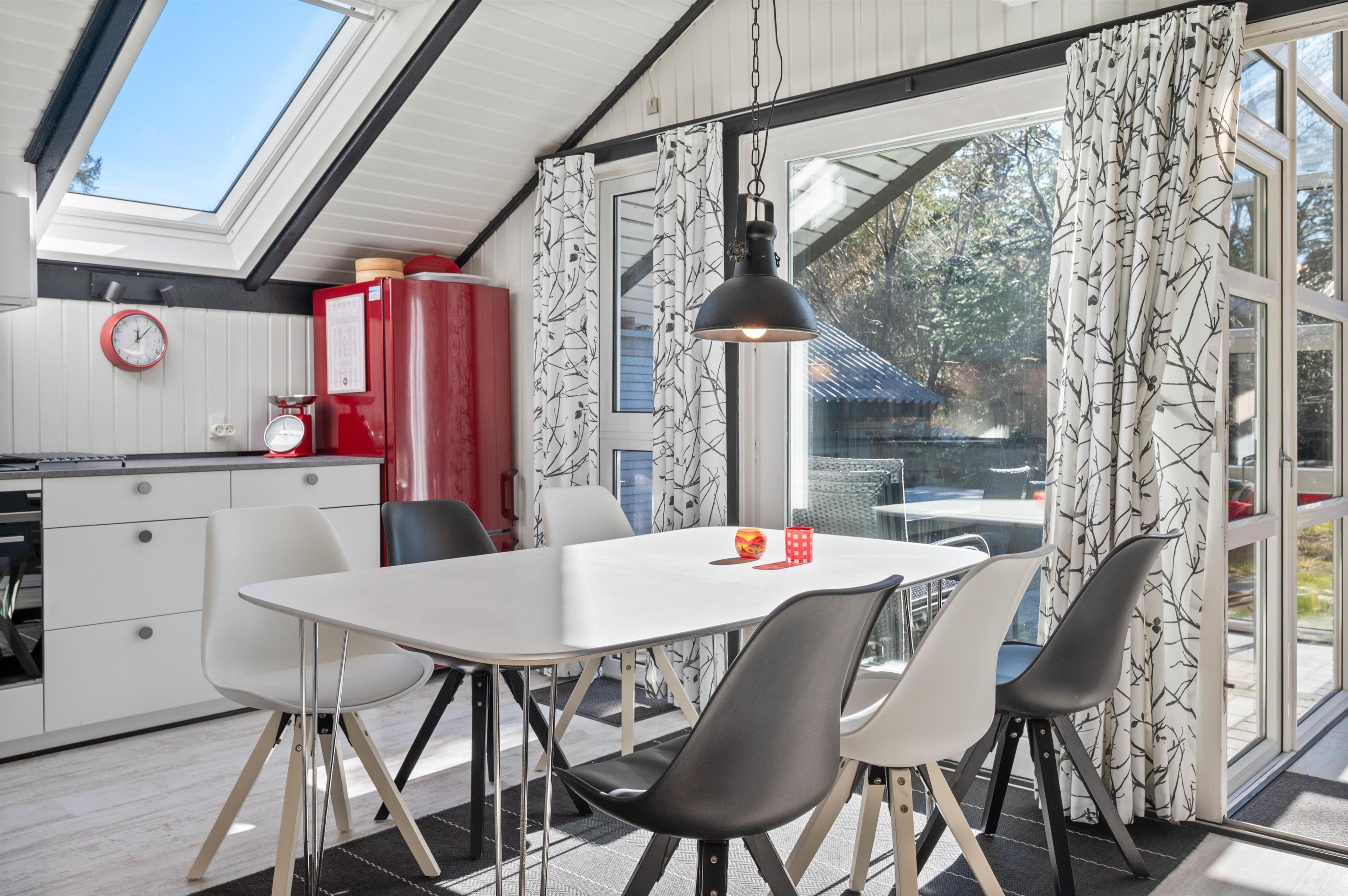 Det charmerende sommerhus på Kirstinevej 4 er lyst og venligt indrettet med hvidmalede panelvægge, loft til kip og med synlige bjælker. Sammen med de komfortable møbler og den indbydende havestue er huset til et godt valg for familien på op til 5 personer, som værdsætter at være sig selv. Opholdsrummet med køkken og stue i ét danner et hyggeligt fællesområde, hvor I både kan tilberede lækre måltider, som I sammen kan nyde ved spisebordet, og bagefter kan I slappe af i sofaen med ild i brændeovnen.