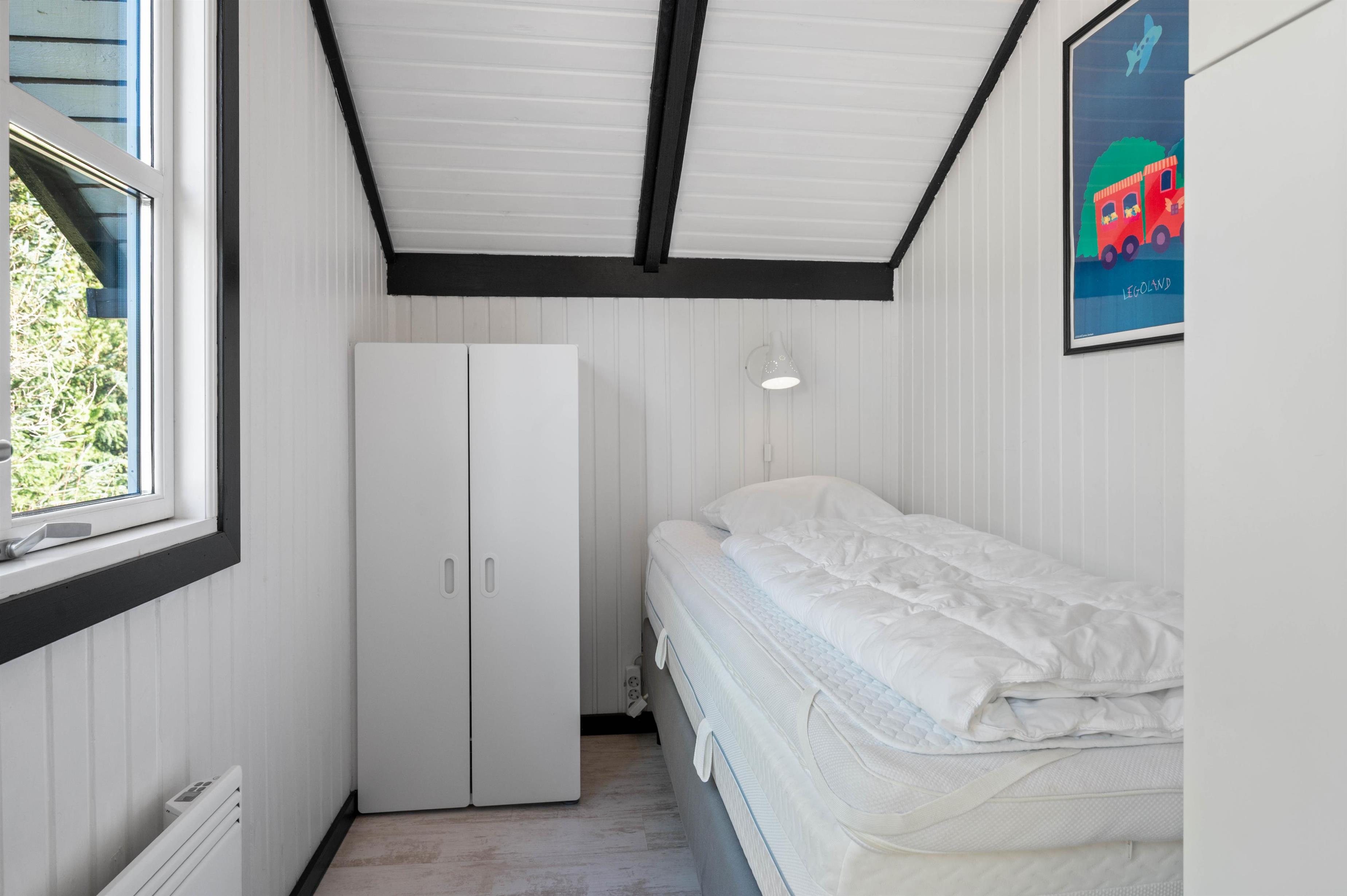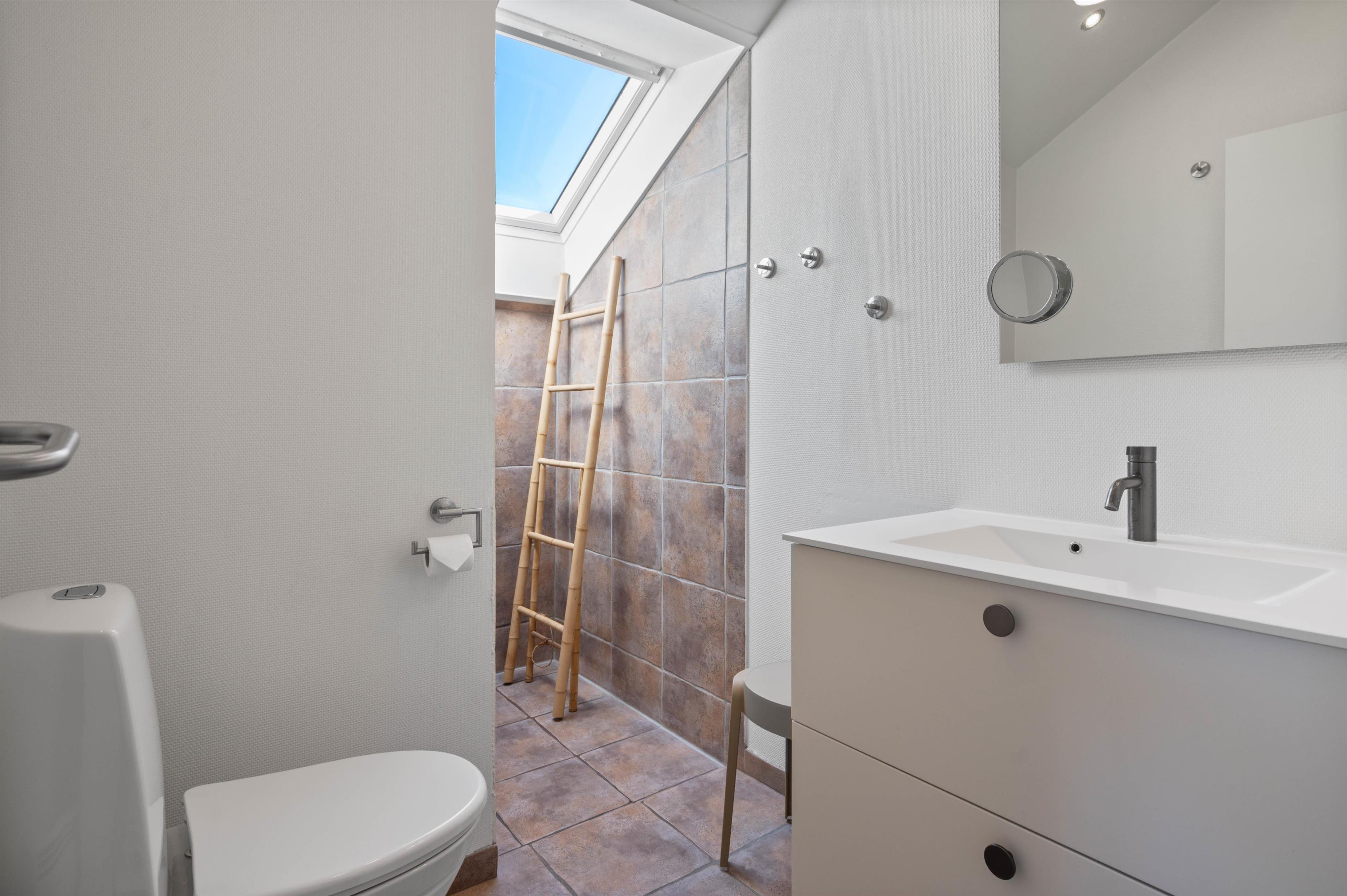 De 3 østvendte soveværelser har alle trælaminatgulve. 2 af værelserne har komfortable dobbeltsenge og det sidste har enkeltseng. I badeværelset med gulvvarme kan I tage et forfriskende brusebad. Moderne hvidevarer, som opvaskemaskine, vaskemaskine og en energibesparende varmluftpumpe står naturligvis til rådighed for jer på ferien.