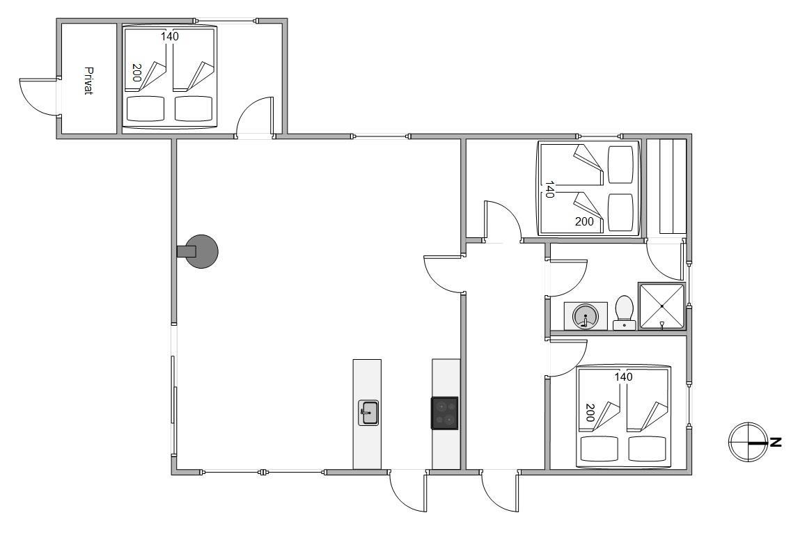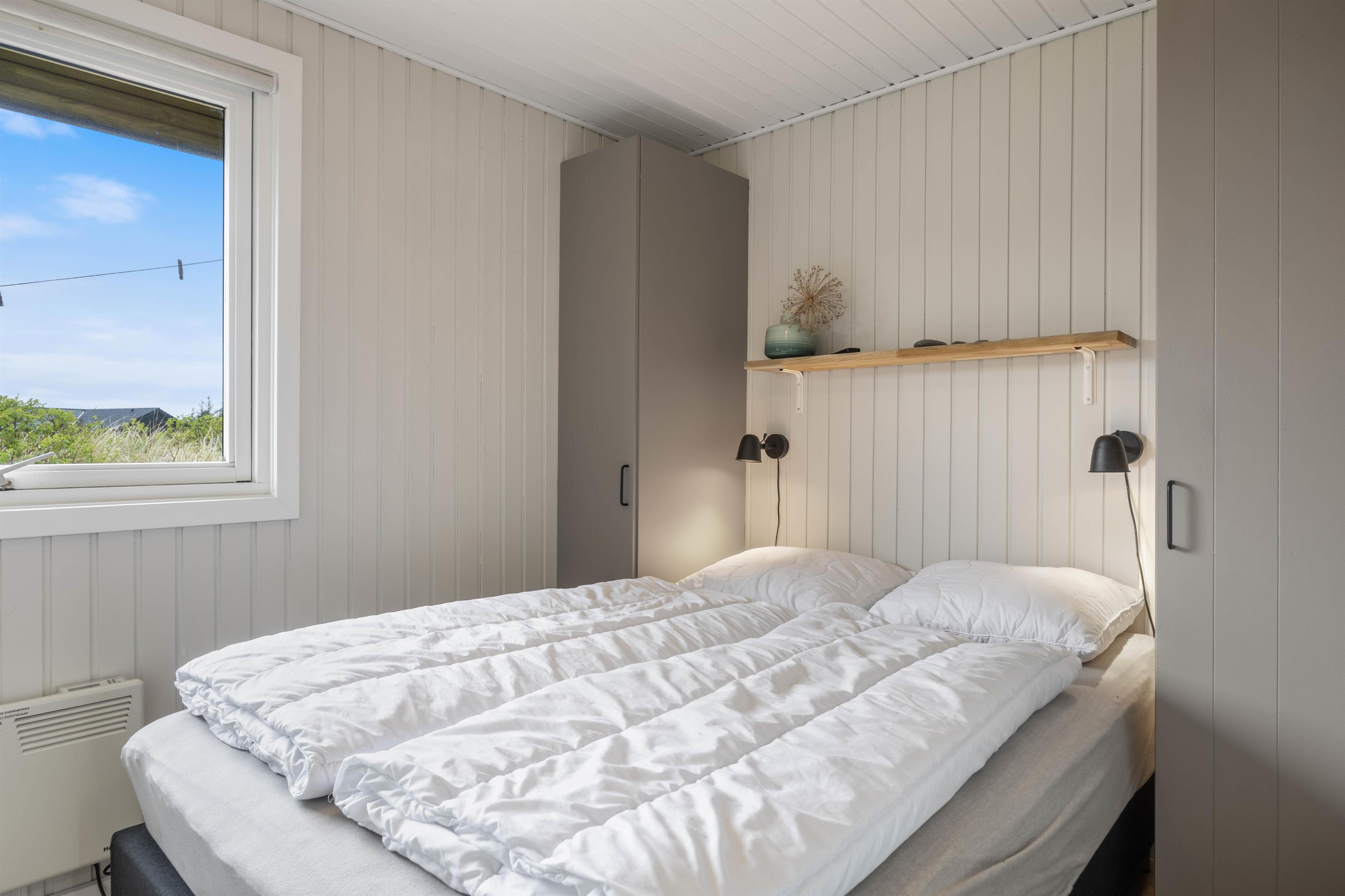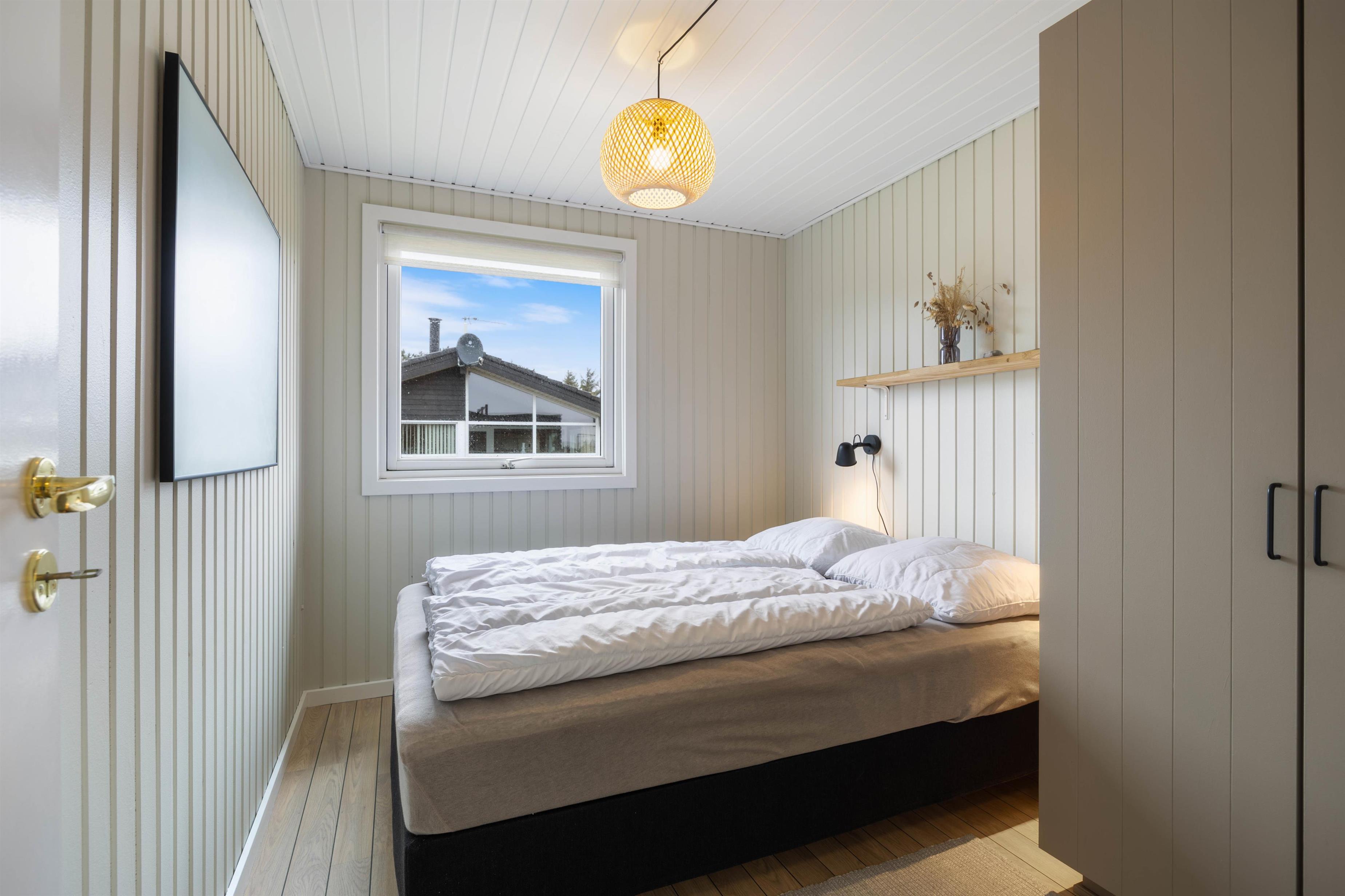 I sommerhuset er alle rum lyst og indbydende indrettet, og her vil I hurtigt føle jer godt tilpas og fornemme feriefølelsen. Når I har fået de 3 hyggelige værelser fordelt imellem jer, kan I samles i sommerhusets alrum, hvor spiseplads, det flotte køkken og den hyggelige stue ligger samlet i ét.