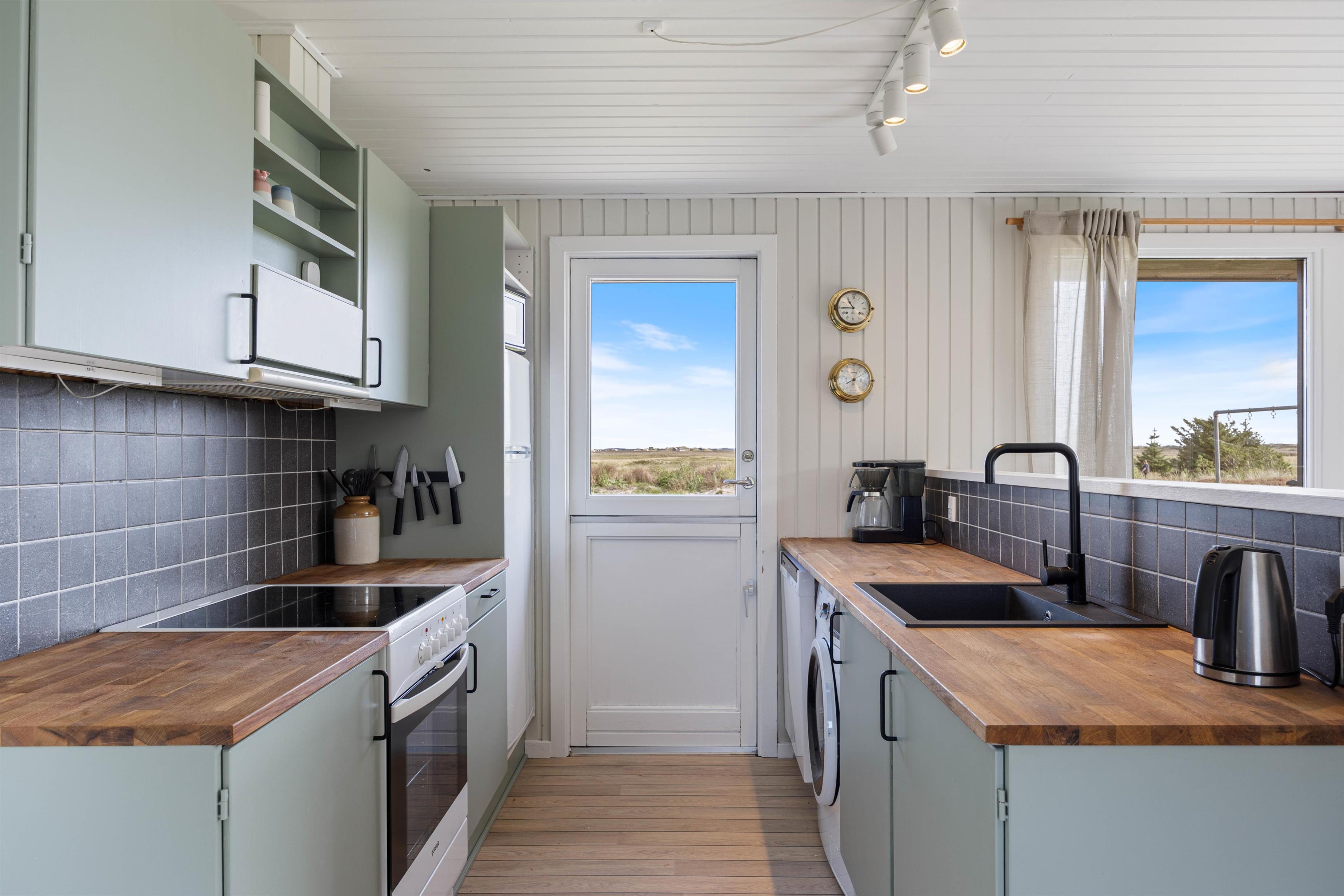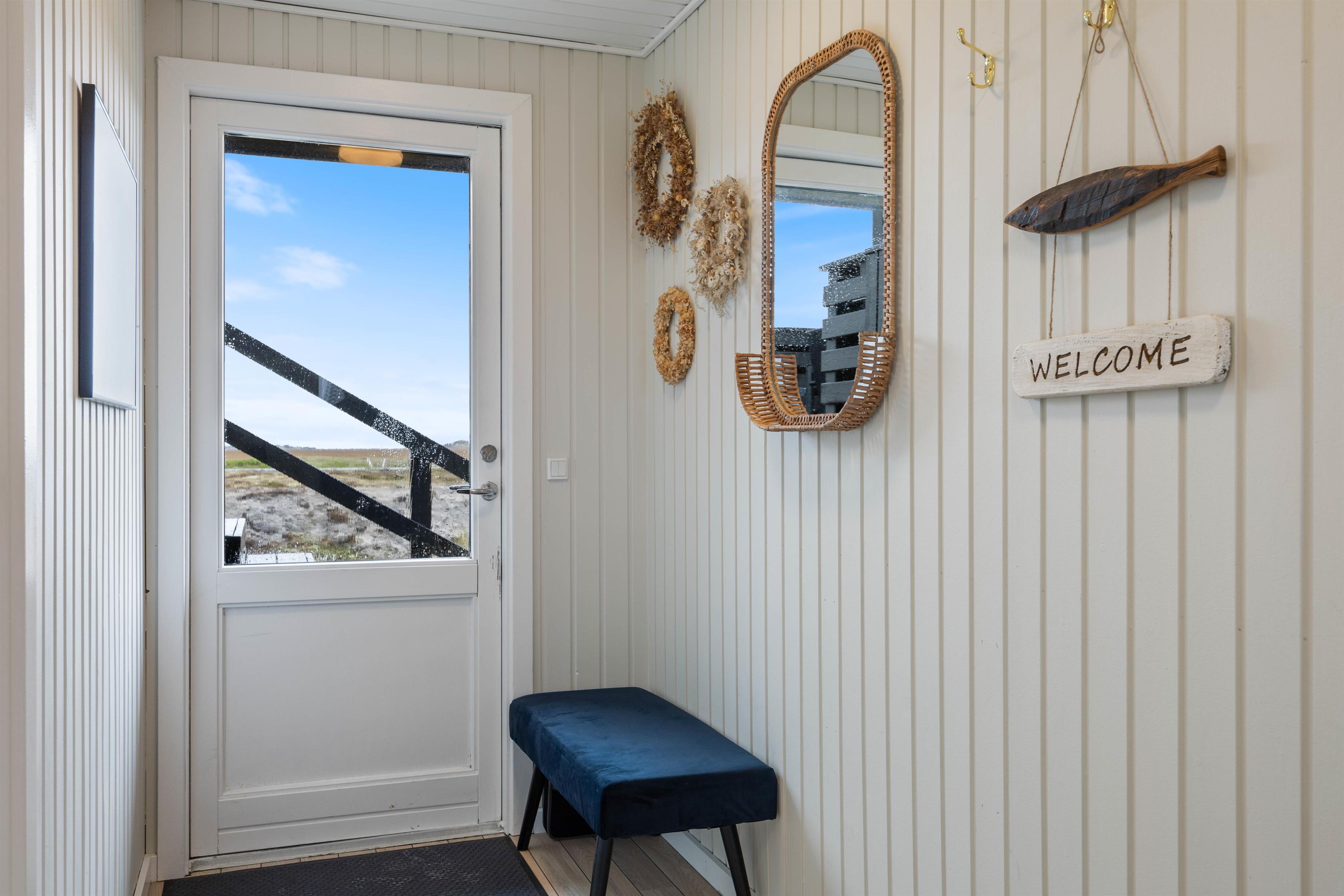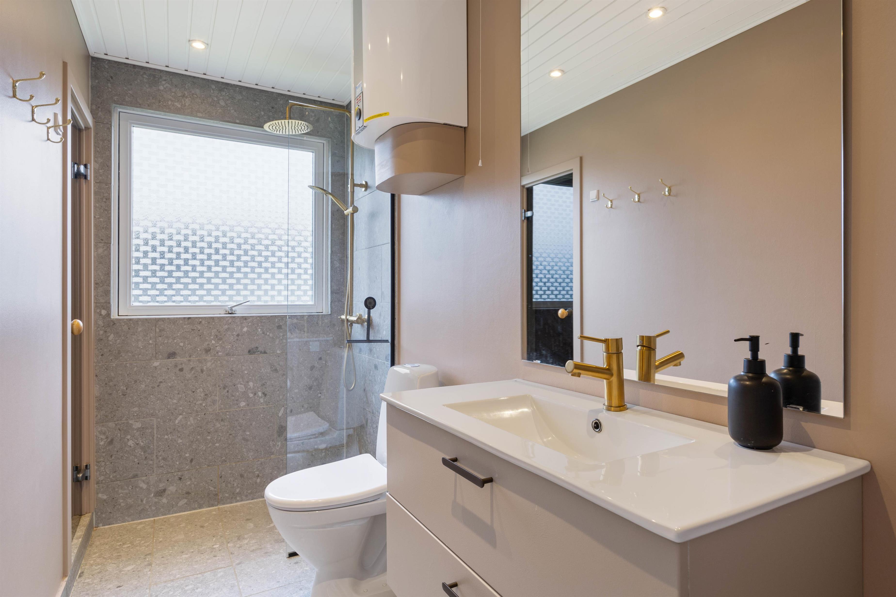 Sommerhusets badeværelse er renoveret i 2023 og er indbydende og moderne indrettet. Her er der gulvvarme, og efter en frisk gåtur ved Vesterhavet kan I tage en afslappende stund i sommerhusets sauna.