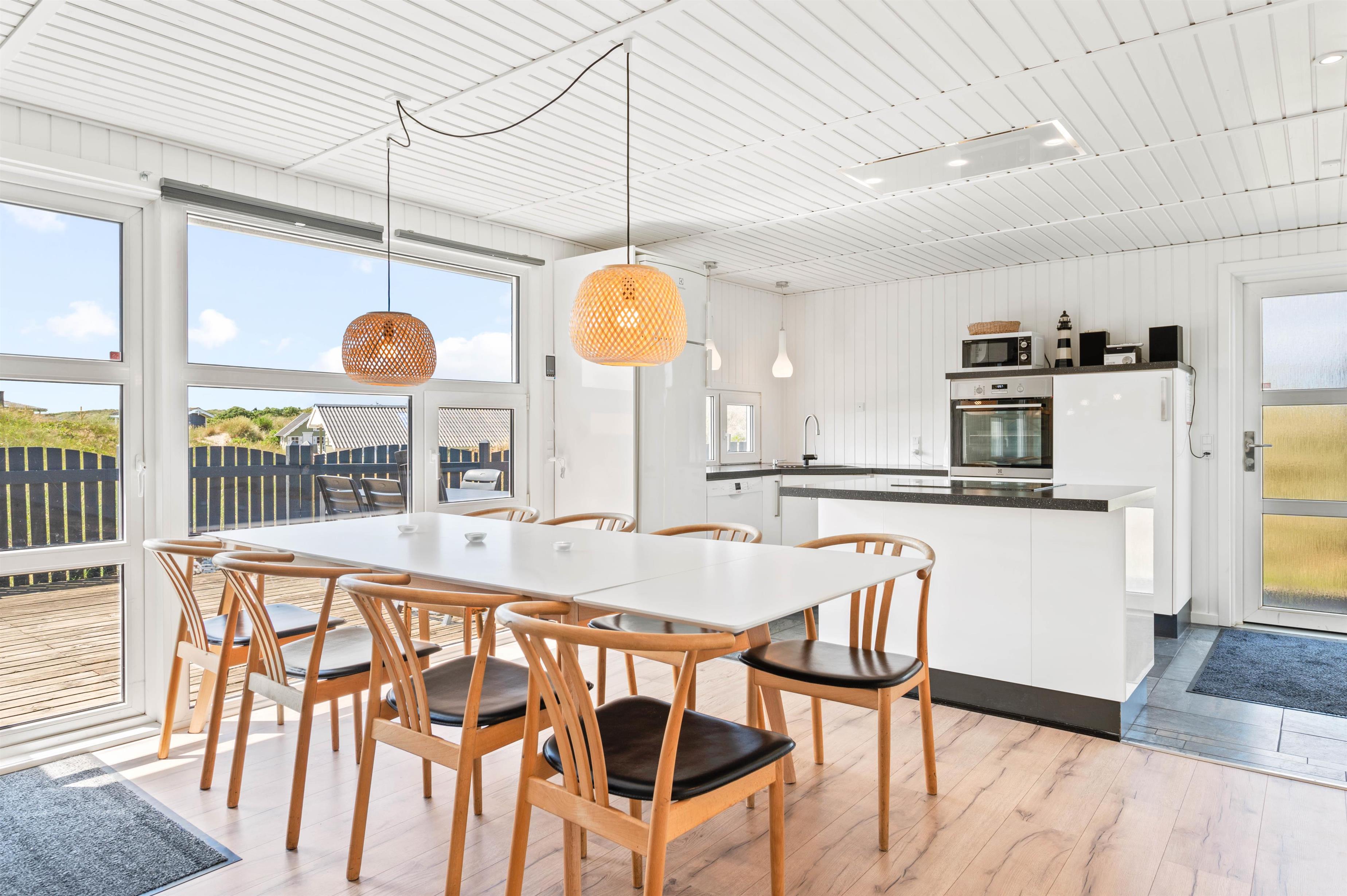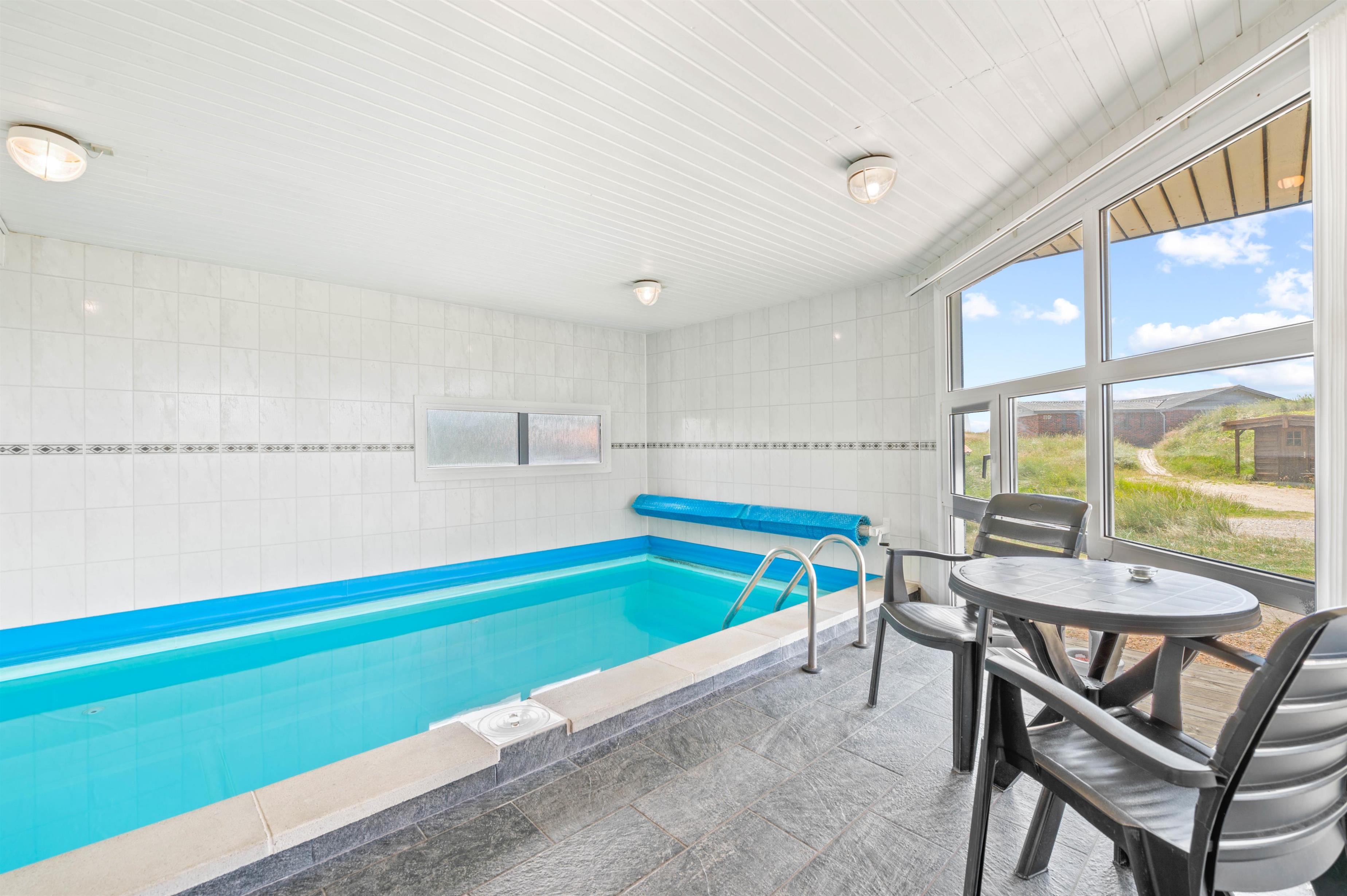 Dejligt sommerhus med ideel beliggenhed en blind vej på naturgrund, kun 350 meter fra Vesterhavet. Op til 8 personer kan få glæde af dette rummelige feriehus, som ligger midt i den vestjyske natur. Med egen wellnessafdeling og swimmingpool kan I her finde velvære både udendørs og indendørs – uanset vejret.