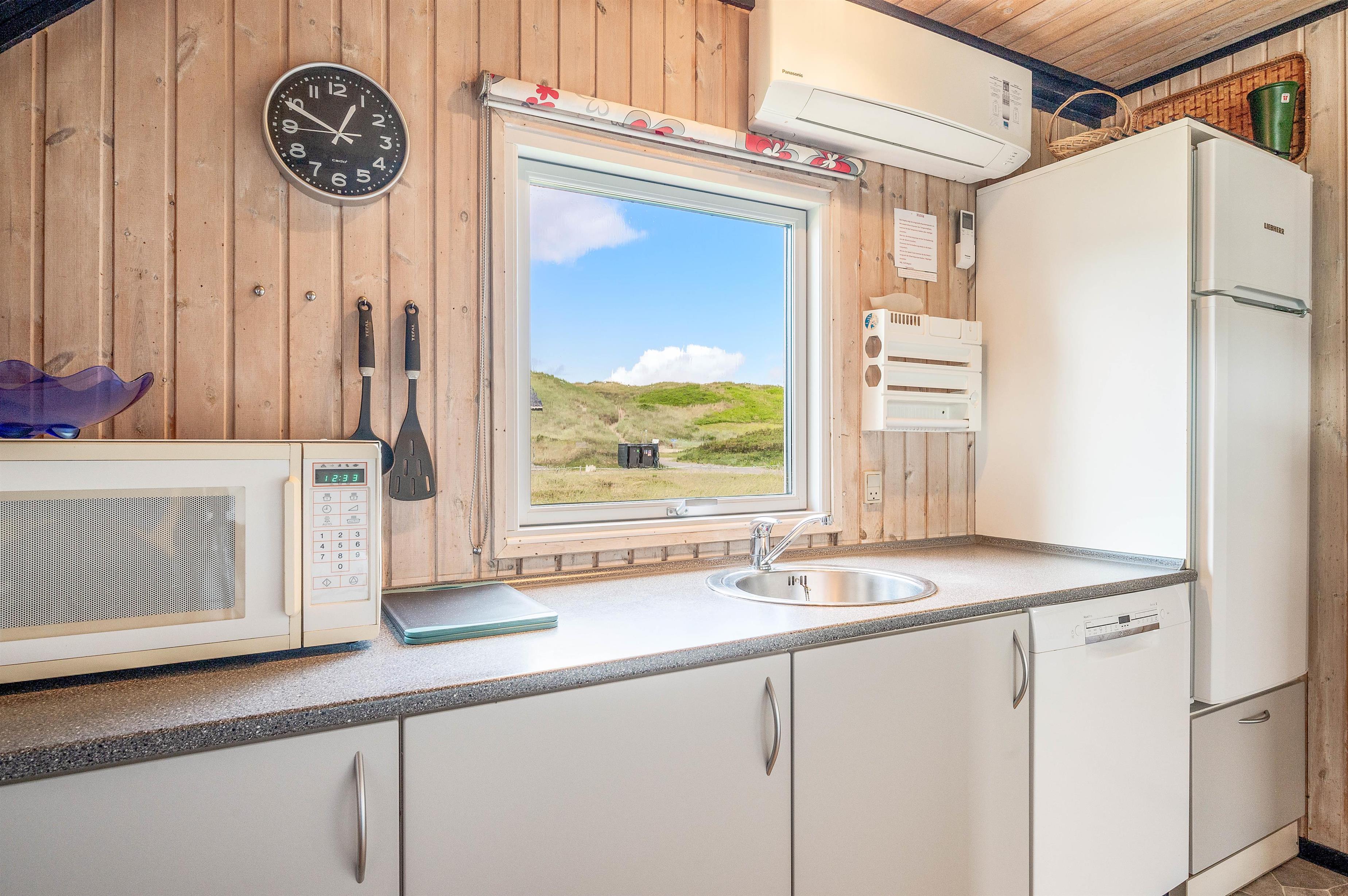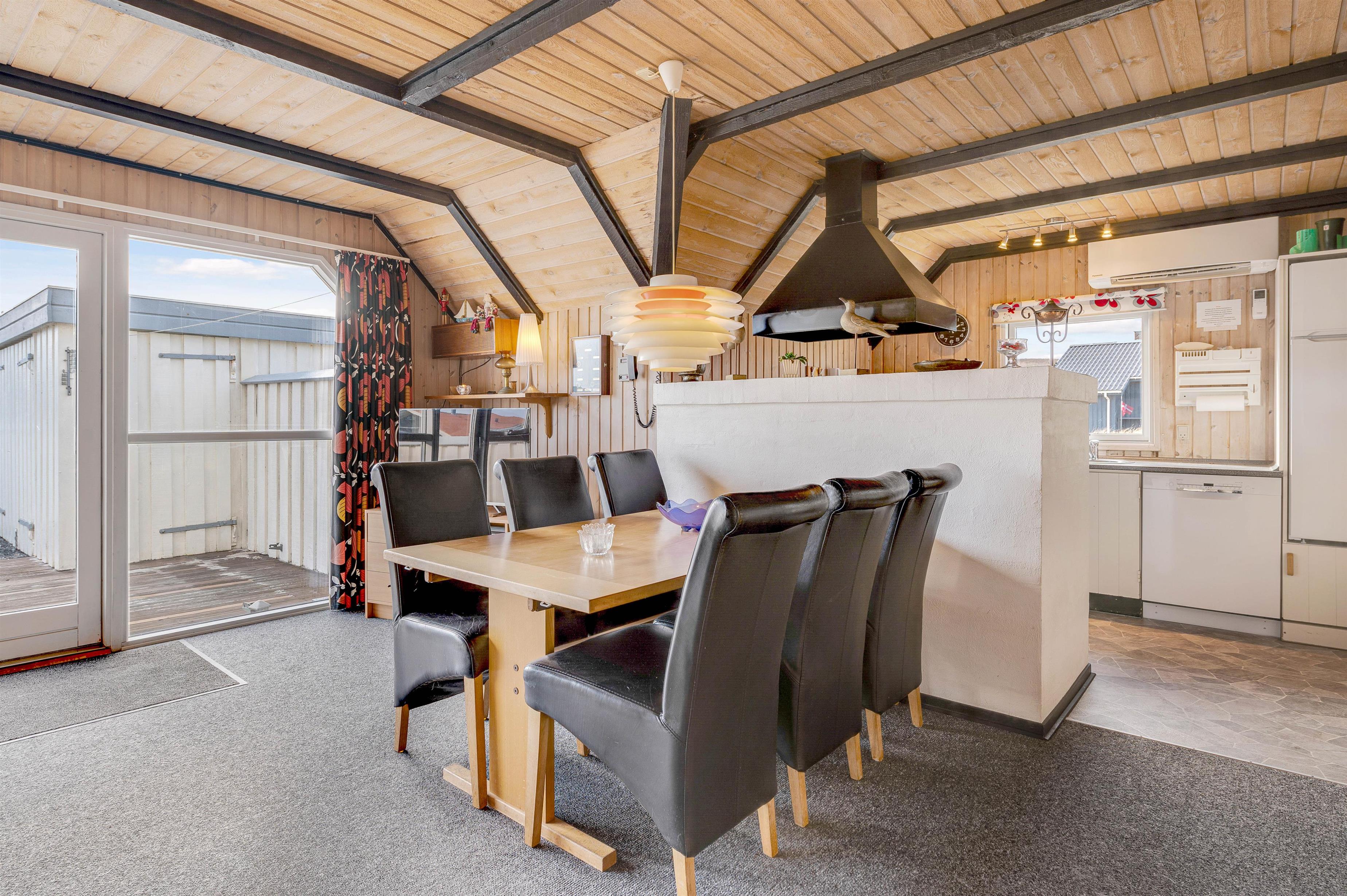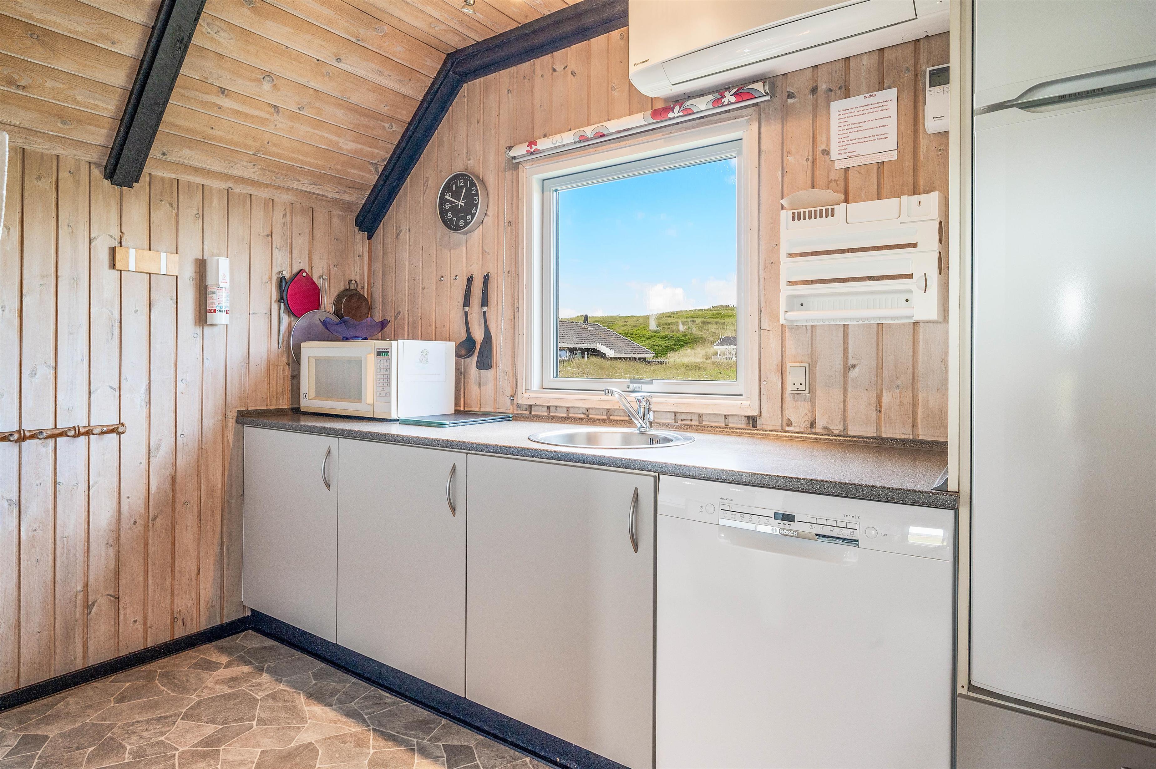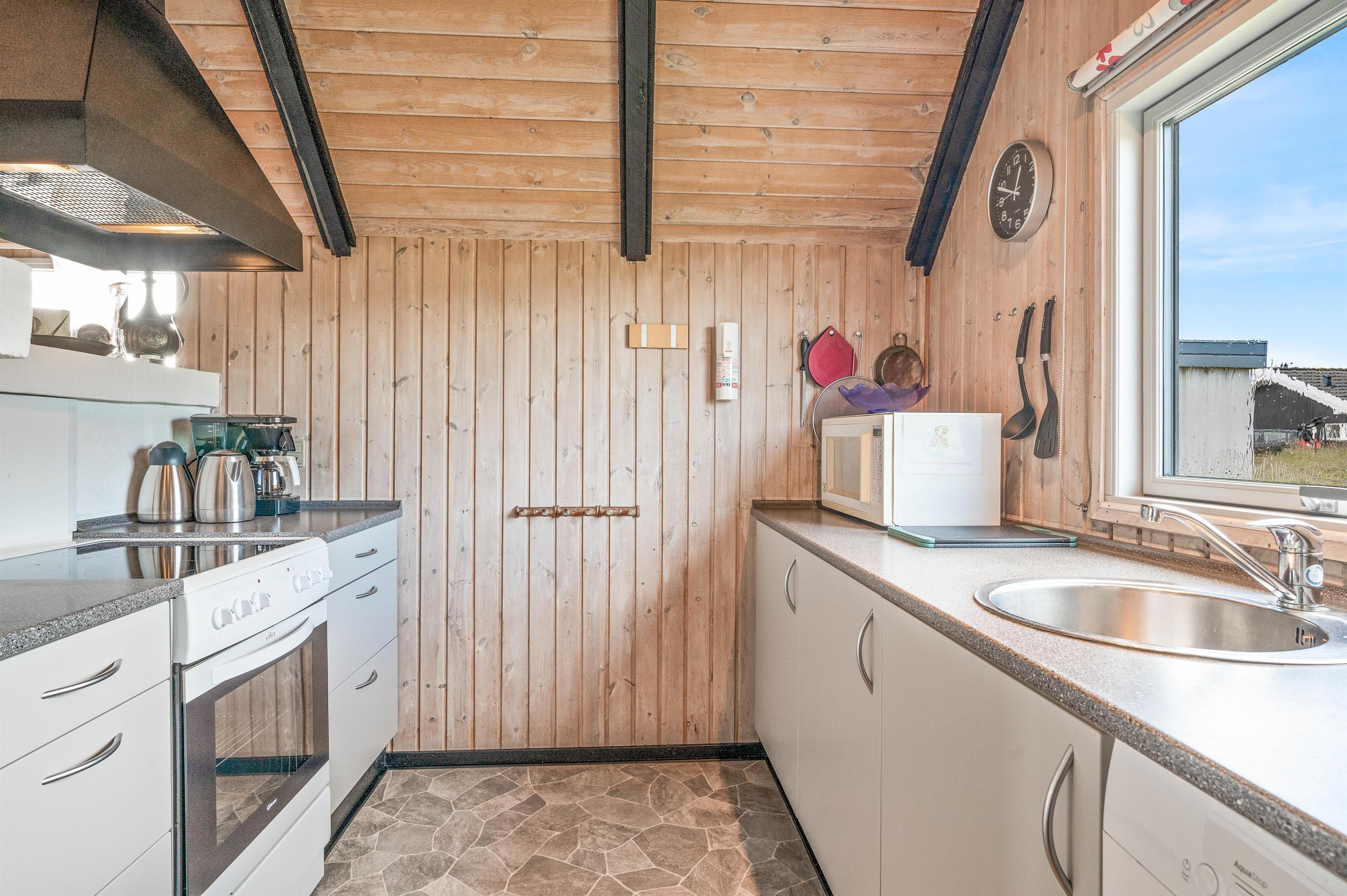 Køkkenet ligger i åben forbindelse med stuen, og varmepumpen sørger for et godt indeklima. Børnene kan sidde ved bordet og spille et spil, mens maden tilberedes. Køkkenet er udstyret med mikroovn, køleskab med lille fryser (54L) og en opvaskemaskine, som klarer opvasken for jer. Der er 3 soveværelser i sommerhuset, de to af dem har dobbeltsenge og det tredje værelse har en ekstra bred enkeltseng. Alle værelser har gulvtæppe. På badeværelset er der vaskemaskine, bruseniche og gulvvarme, hvilket er skønt på de kolde efterårsmorgener.