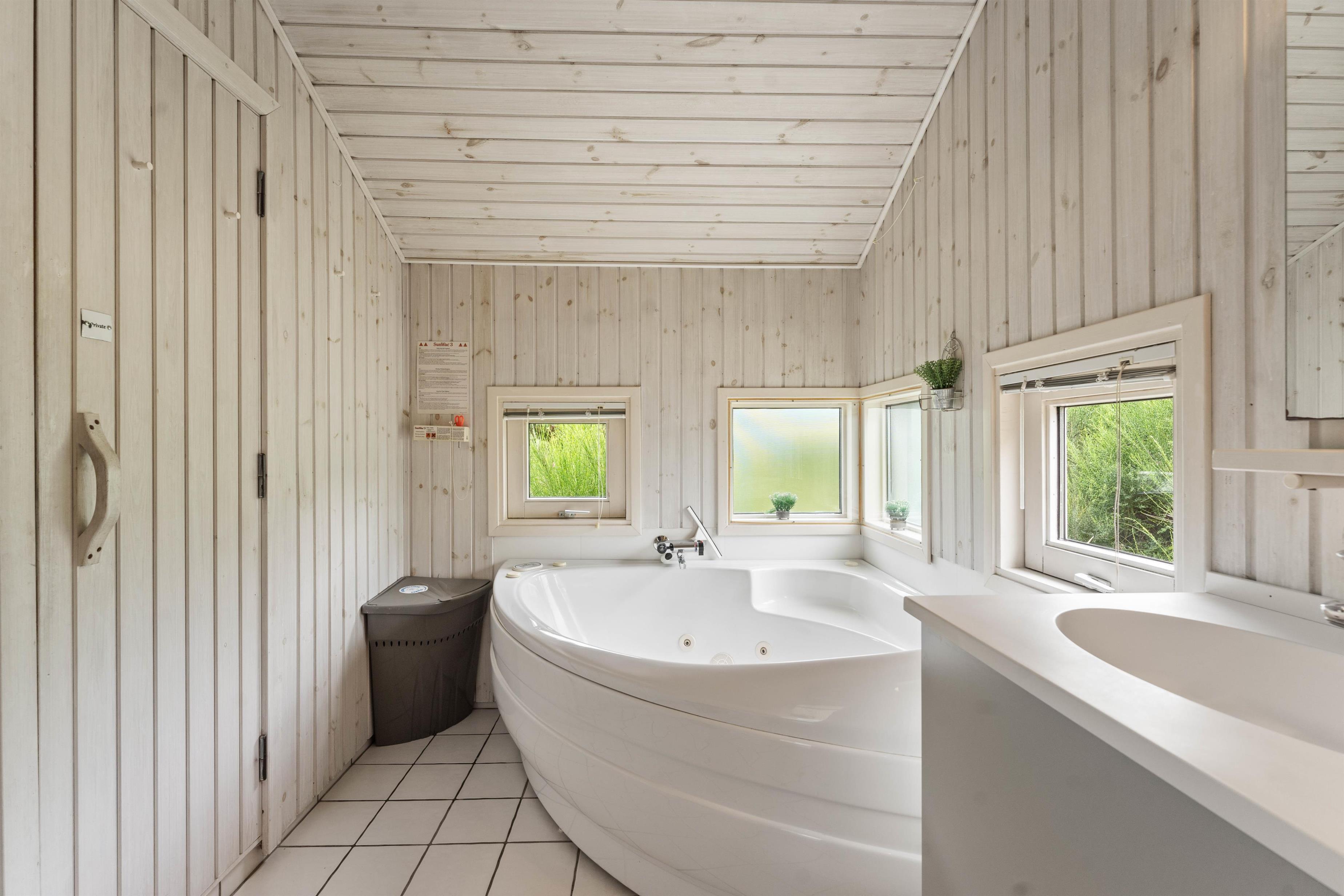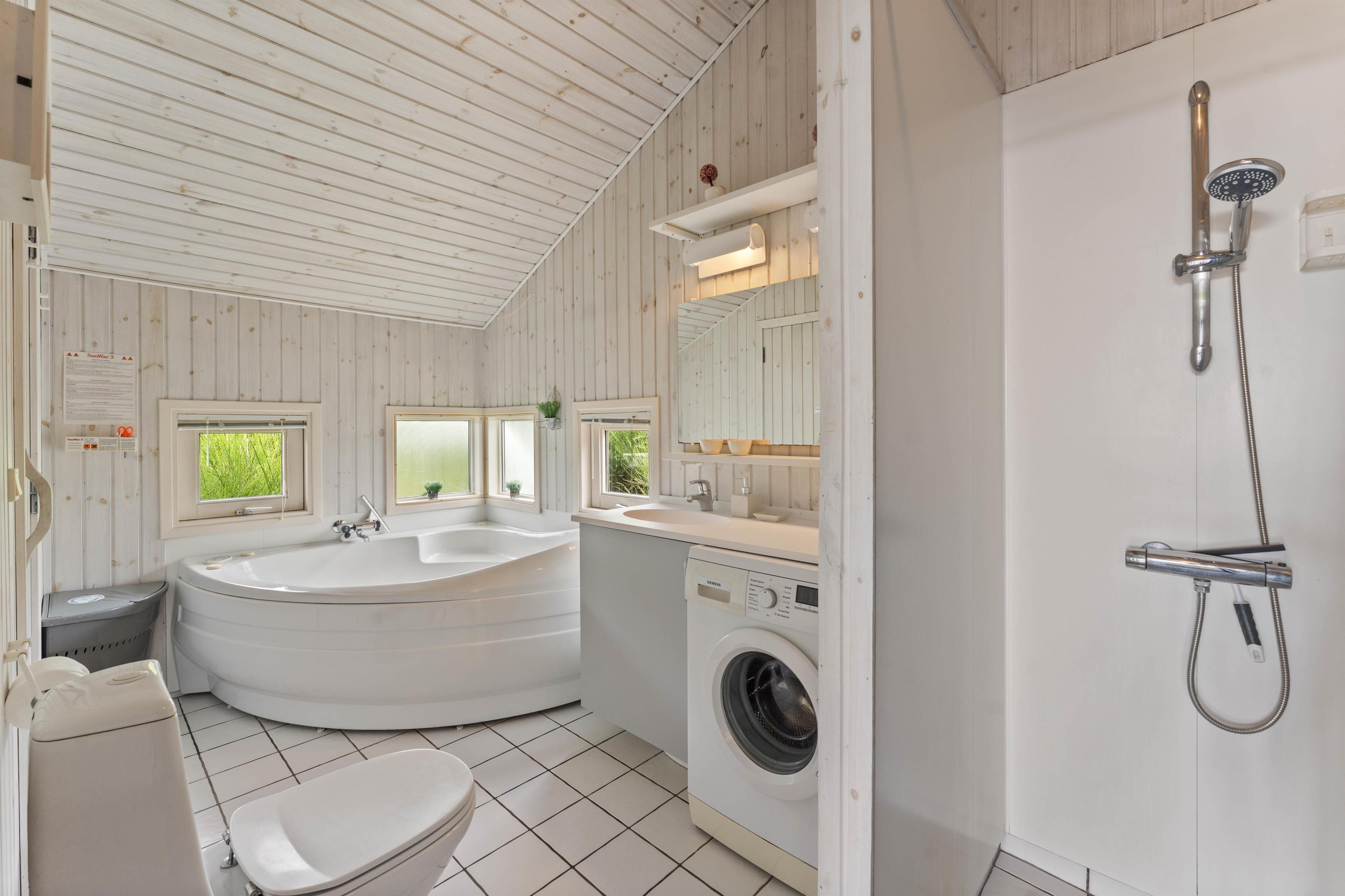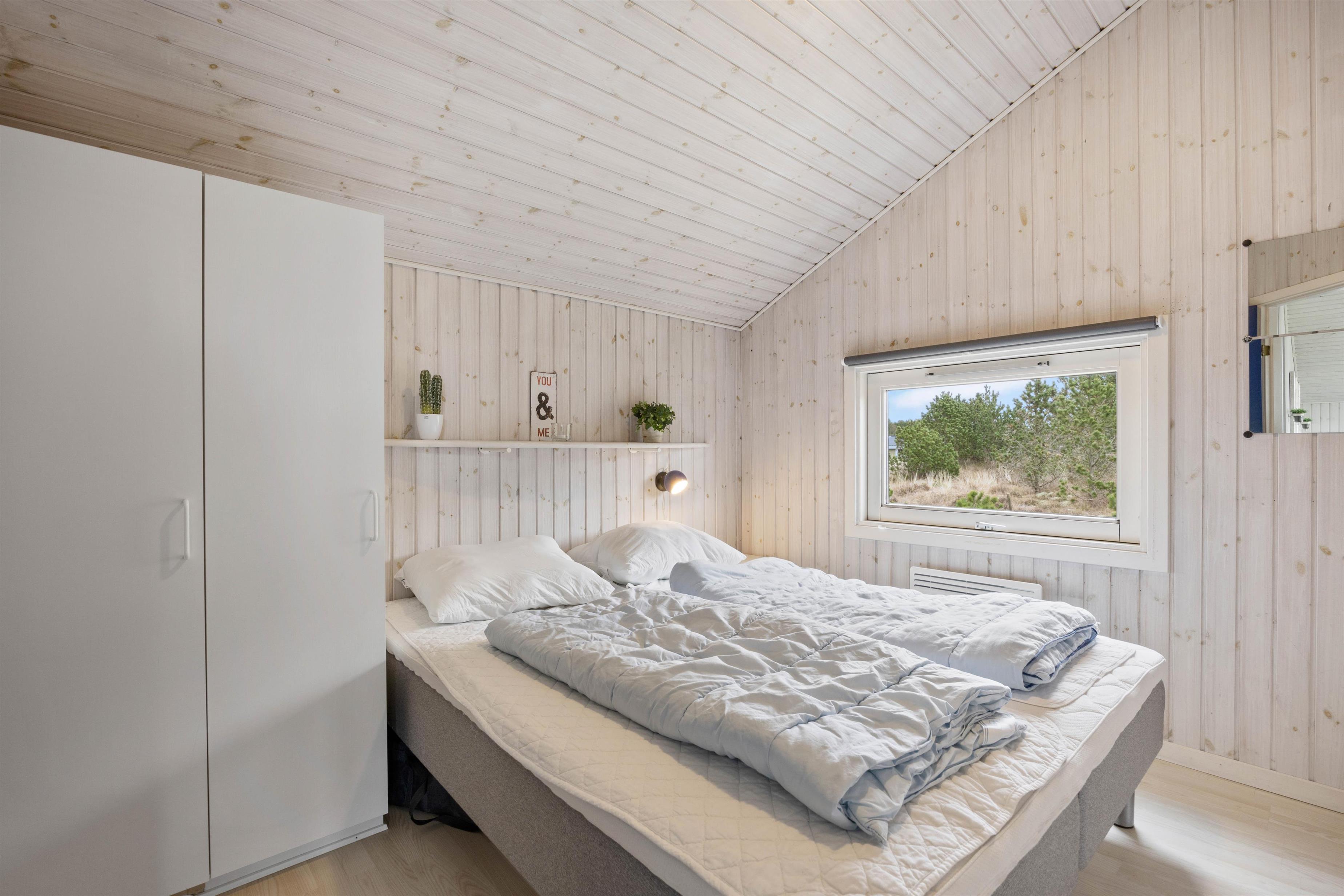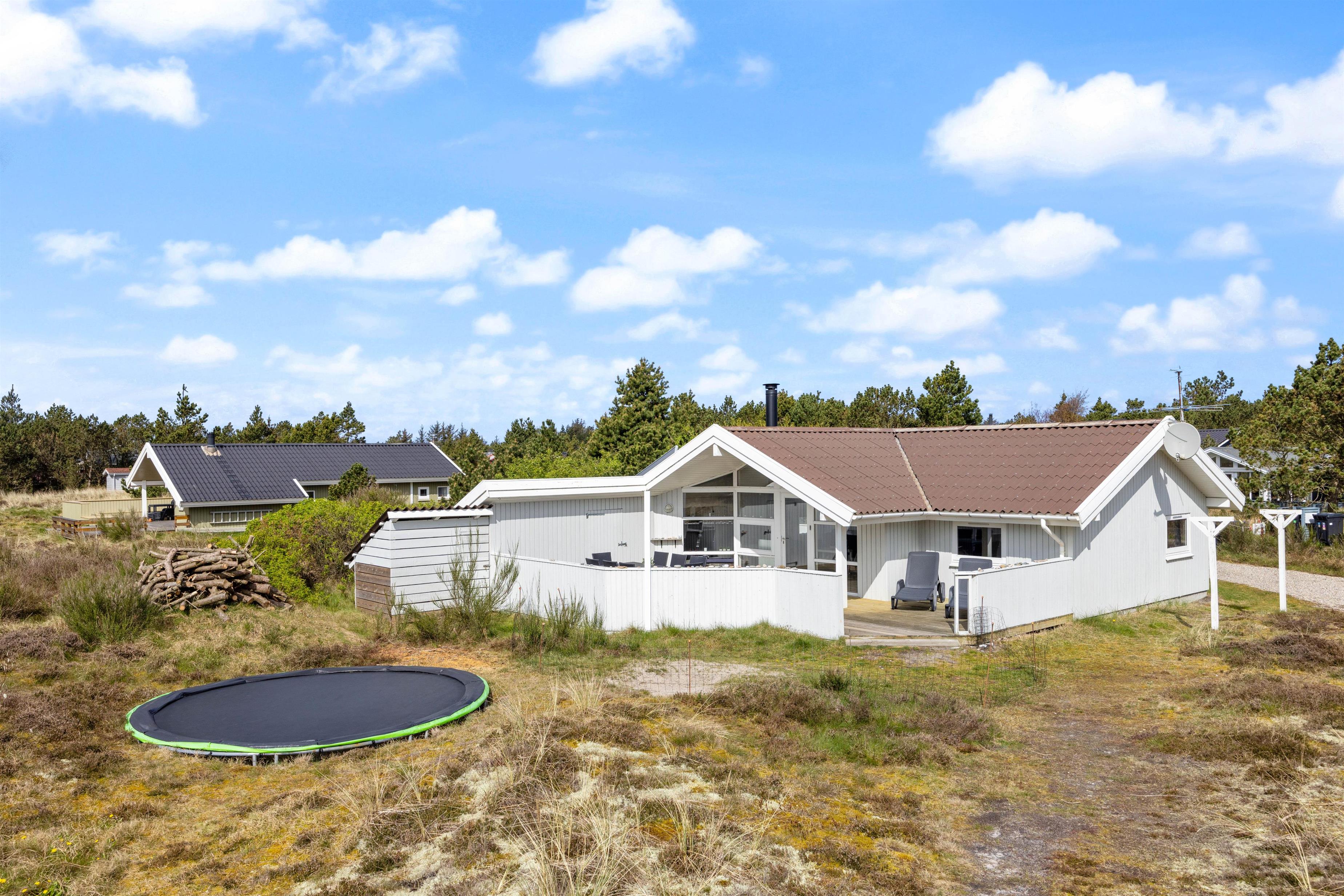 Strålende hvidt byder det L-formede sommerhus jer velkommen i Bjerregård Nord. Her kan I holde en hyggelig ferie med op til 6 personer + 1 hund på knap 80 m², og med en ekstra bonus oveni: spabad.