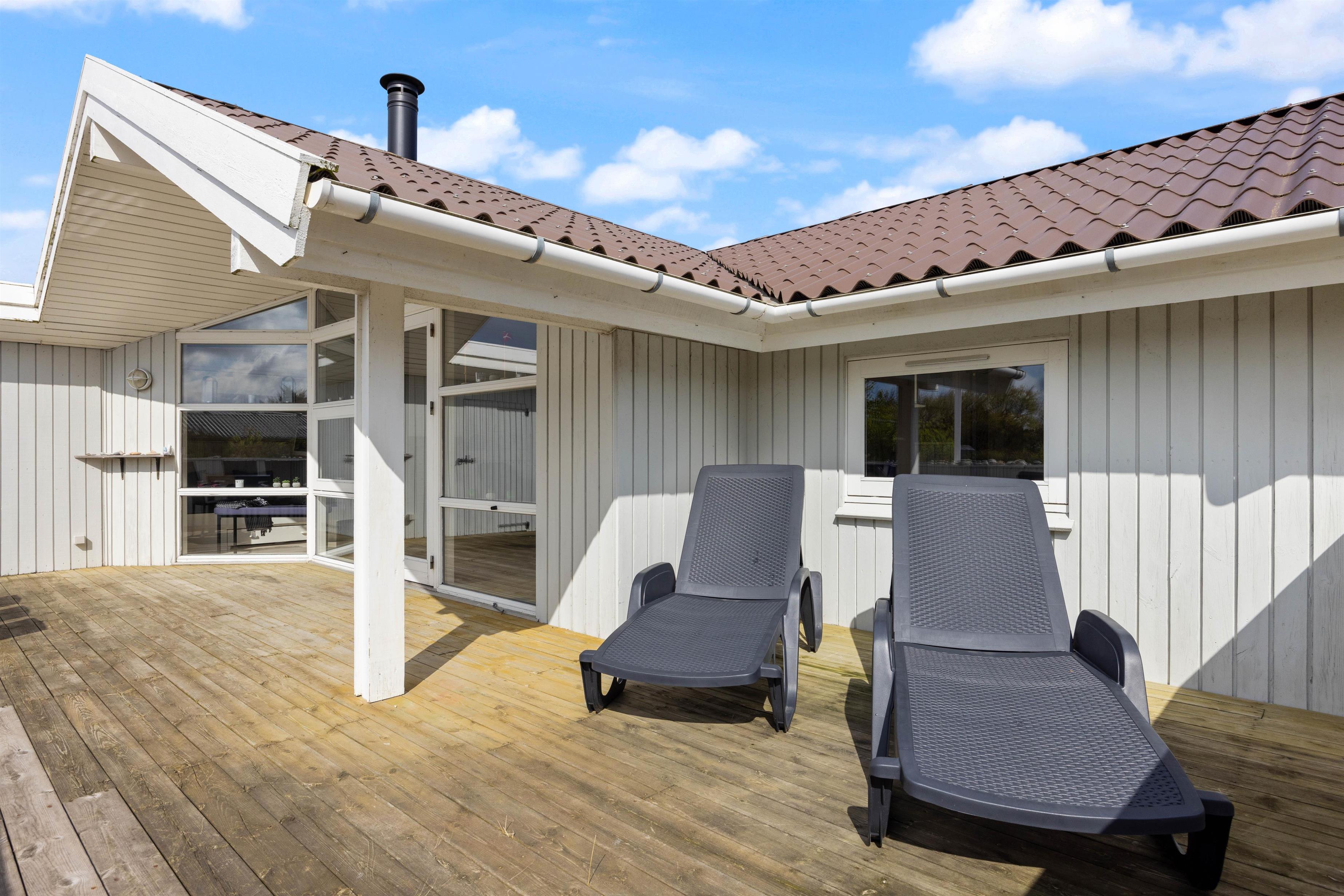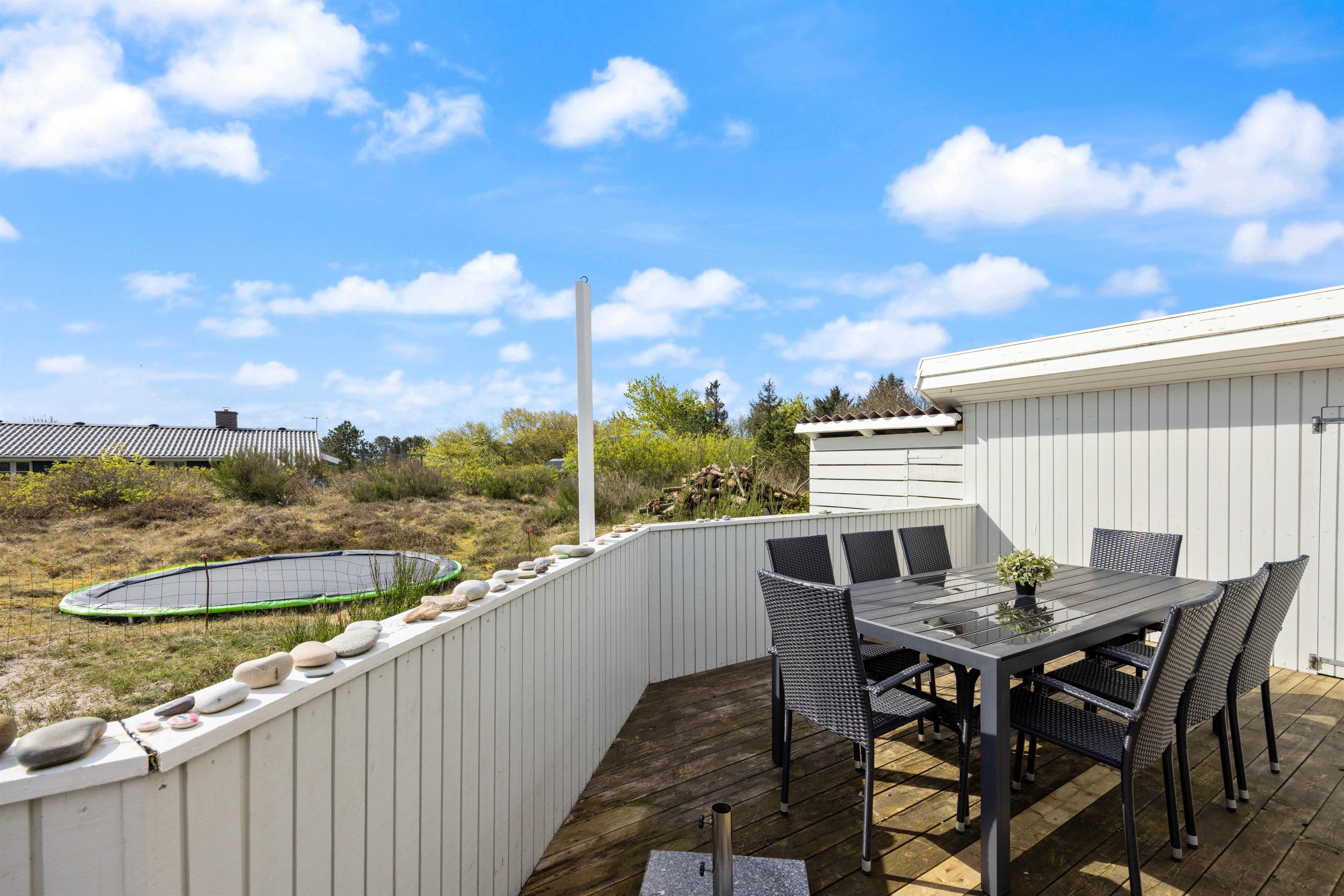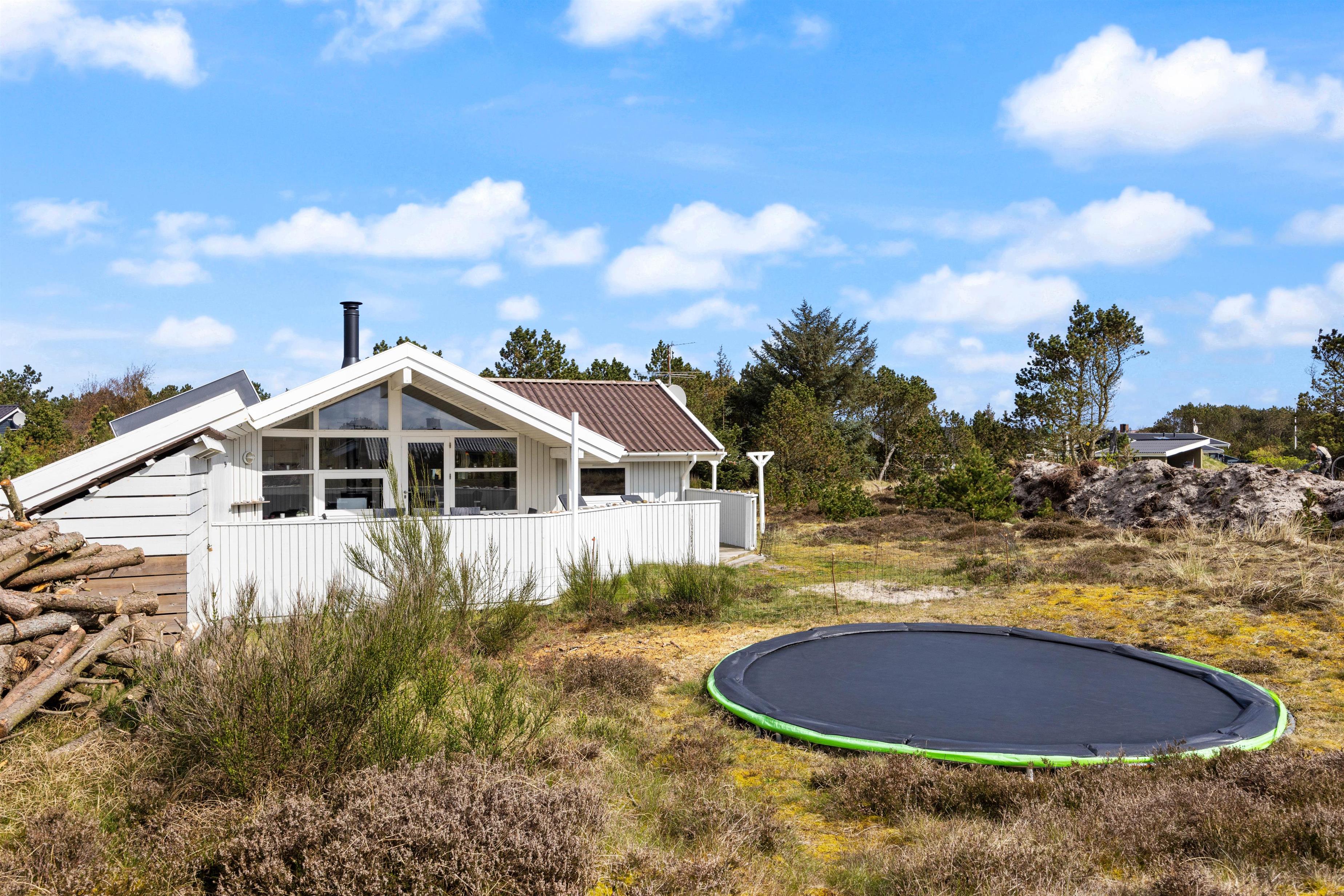 Der er altid god læ på terrassen, og det indbyder til hyggelige stunder udenfor, hvor I kan betragte den flotte, blå himmel og nyde godt af solens stråler på de varme dage, mens børnene kan få masser af glæde af den nedgravede trampolin i haven.