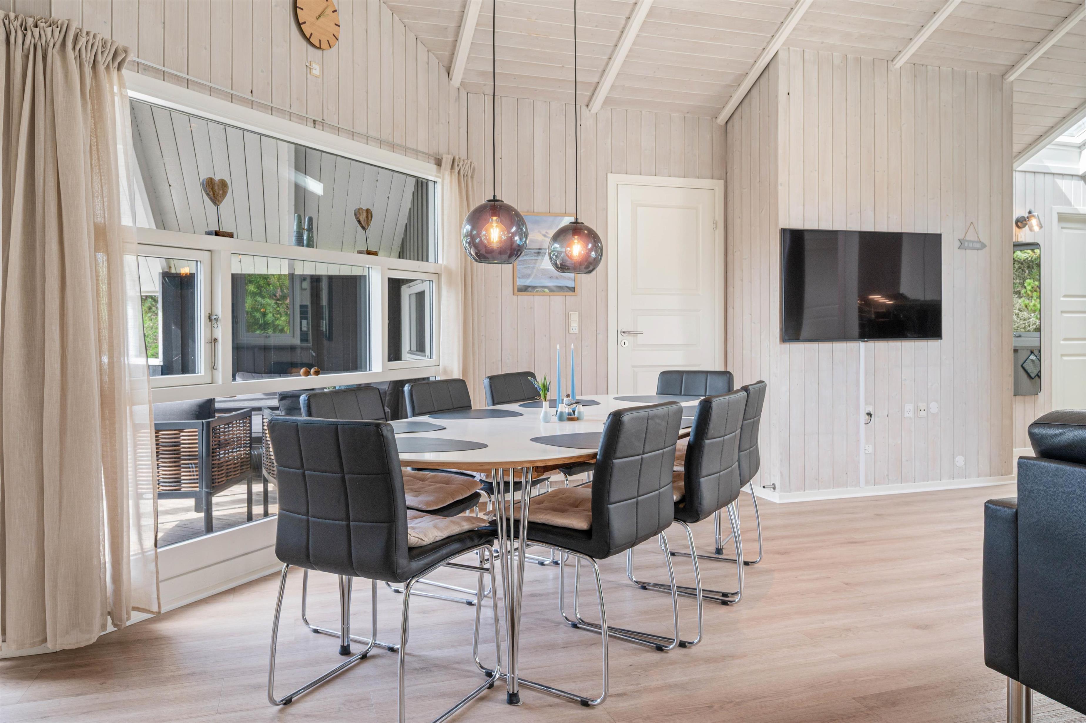 Sommerhusets hjerterum er opholdsstuen, hvor hele familien kan samles til hyggelige stunder, mens brændeovnen sætter prikken over i'et til feriestemning. Sommerhuset har desuden en energivenlig varmpepumpe, som I også kan benytte jer af til at få en behagelig temperatur i rummet.