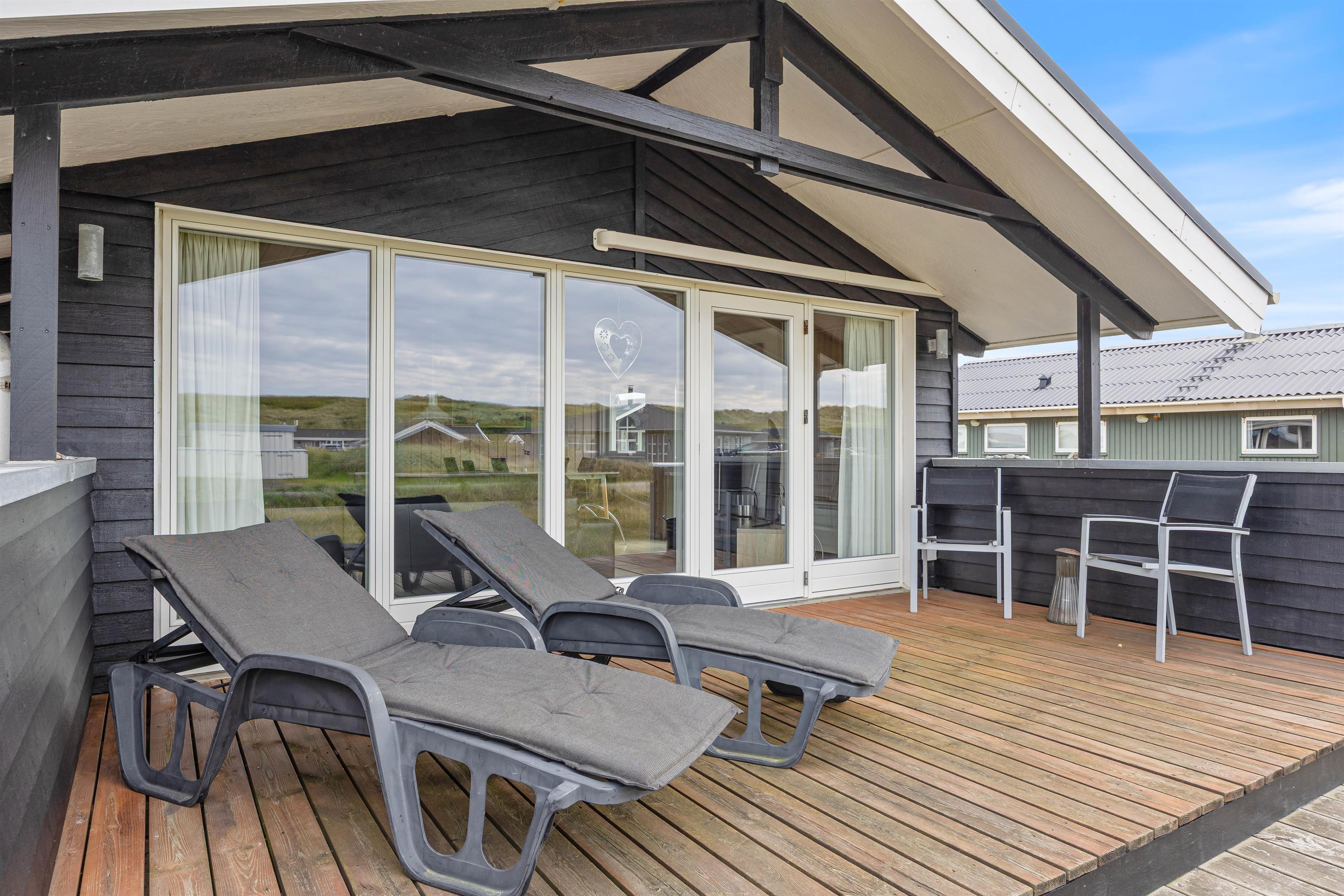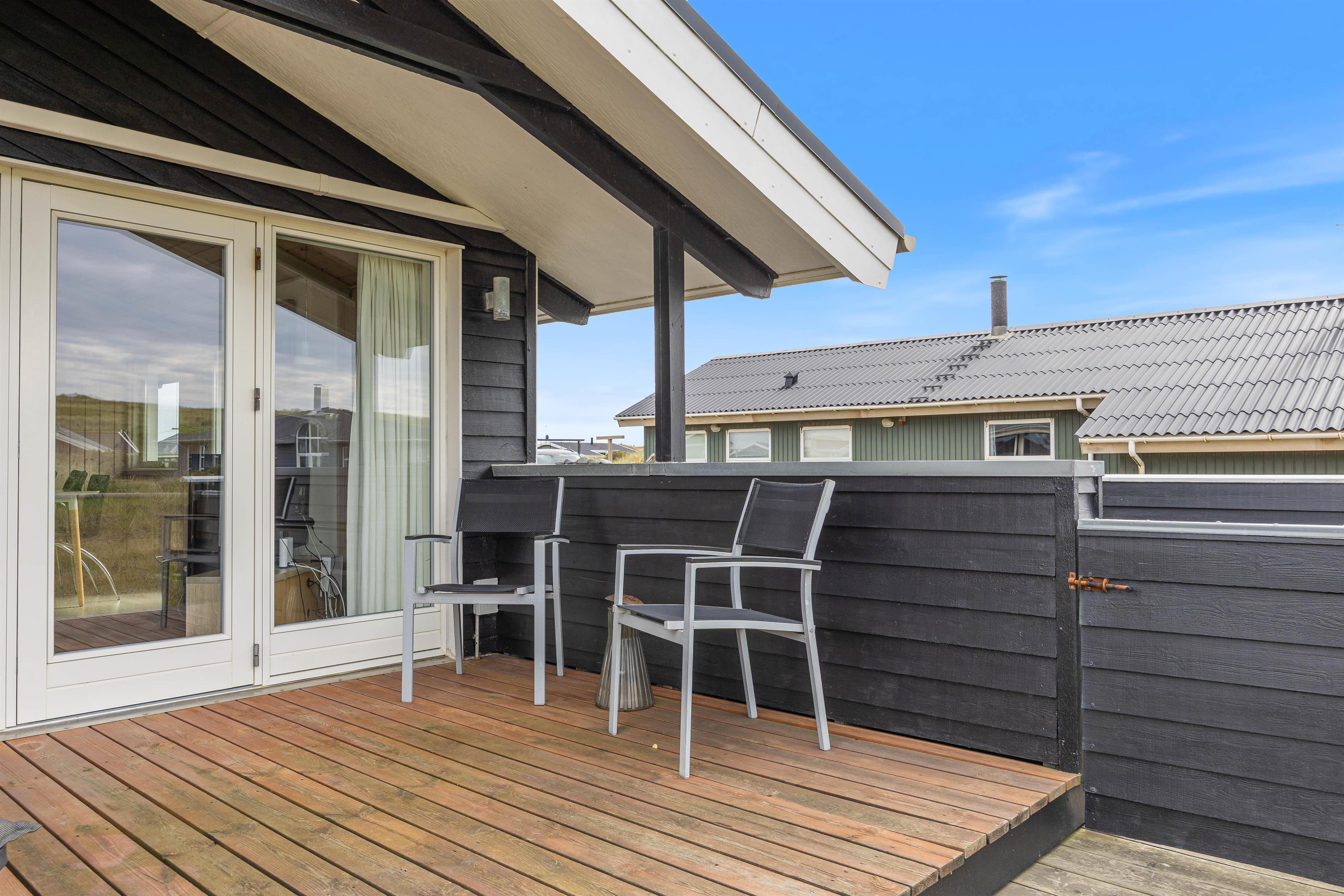 Et hyggeligt feriehus beliggende i Bjerregård, som ligger ca. 15 km syd for Hvide Sande. Her er kun 150 meter til den skønne sandstrand, og området er præget af masser af smuk natur og frisk luft. Sommerhuset er omgivet af terrasser, både afskærmet og delvist overdækket. Efter en god dag på stranden kan I hygge jer ved brændeovnen eller tage en tur i sommerhusets sauna. Derudover er det også tilladt at medbringe op til 2 hunde.