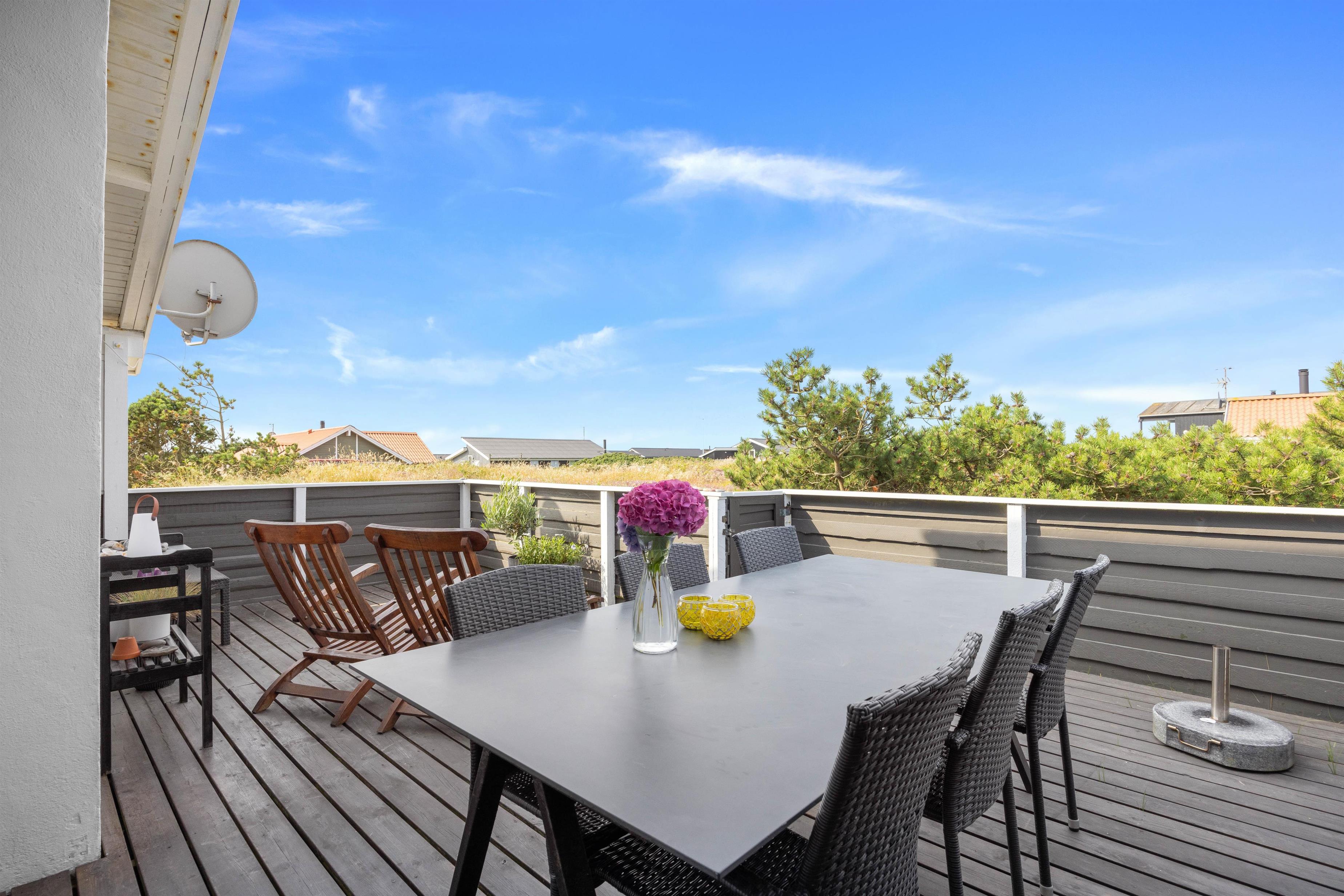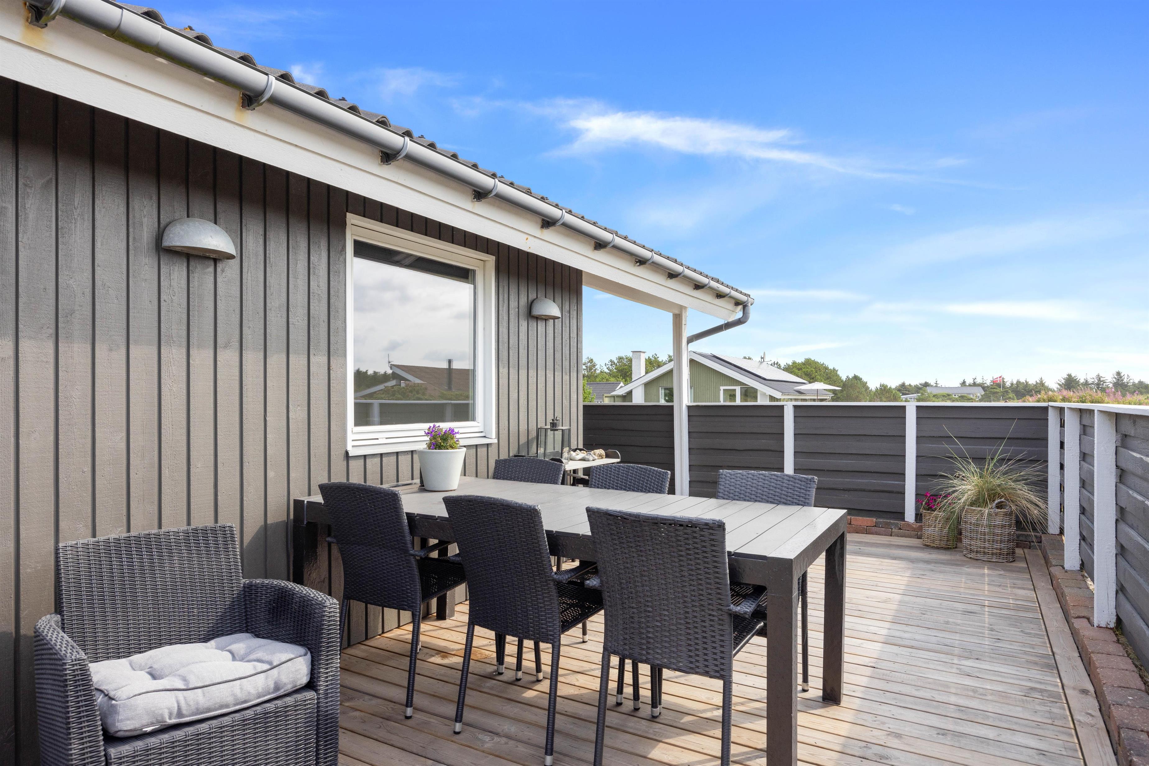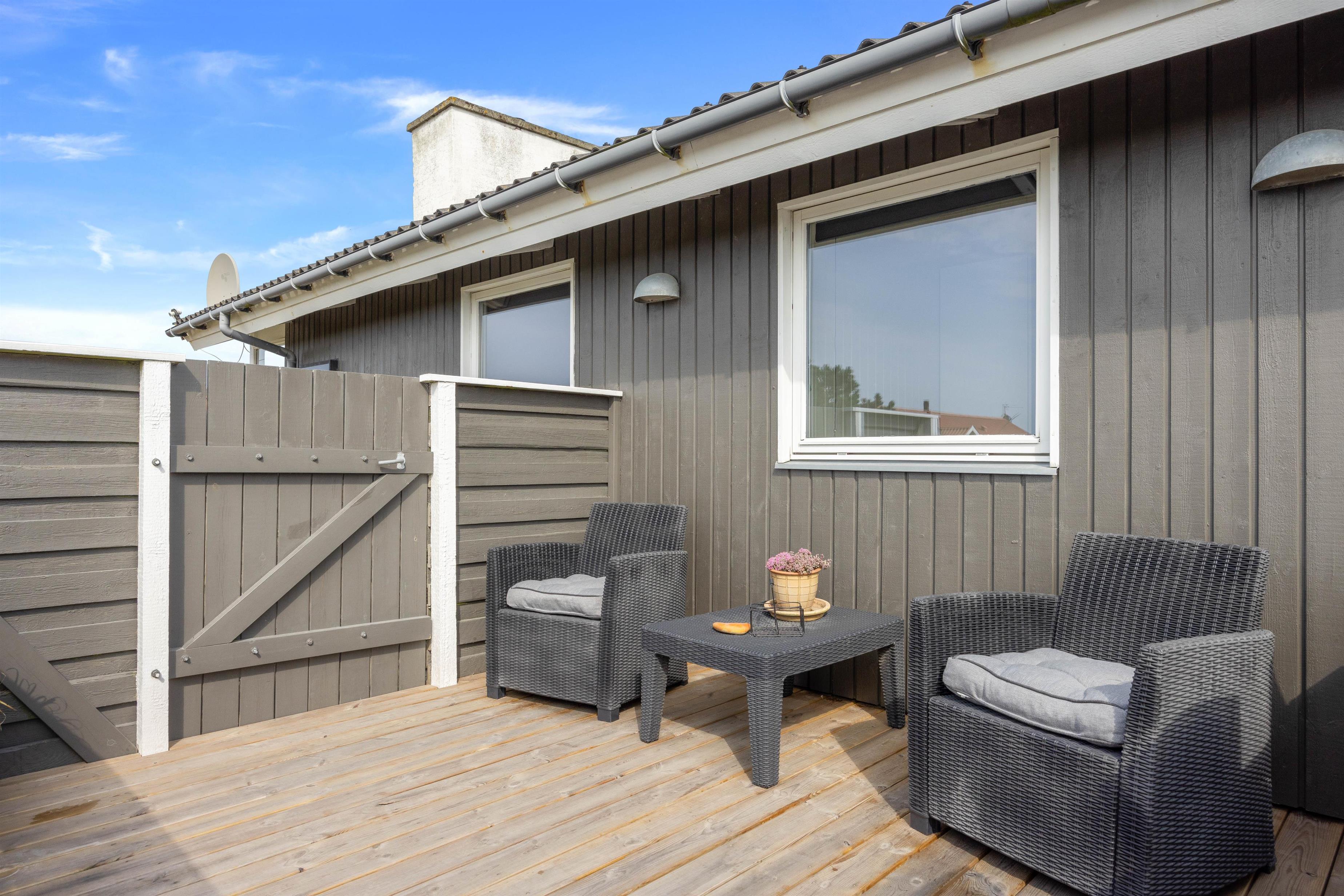 Endnu et stort plus ved sommerhuset er den lukkede terrasse. Her kan børnene lege i det gode vejr, uden I behøver at bekymre jer om, at de begynder at udforske området uden jer. På terrassen står der havemøbler såvel som grill klar til jer, og der er alle muligheder for en skøn grillaften på terrassen med familien på de lune sommeraftener.