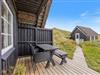 Fra stuen er der adgang til en dejlig morgenterrasse på forsiden af feriehuset samt en fantastisk, stor og velbeliggende vestvendt træterrasse med udsigt over klitgrunden på bagsiden af sommerhuset. Her er gode kvalitetshavemøbler, gasgrill og liggestole samt et bålområde, hvor der kan hygges om aftenen med skumfiduser eller laves bålmad.