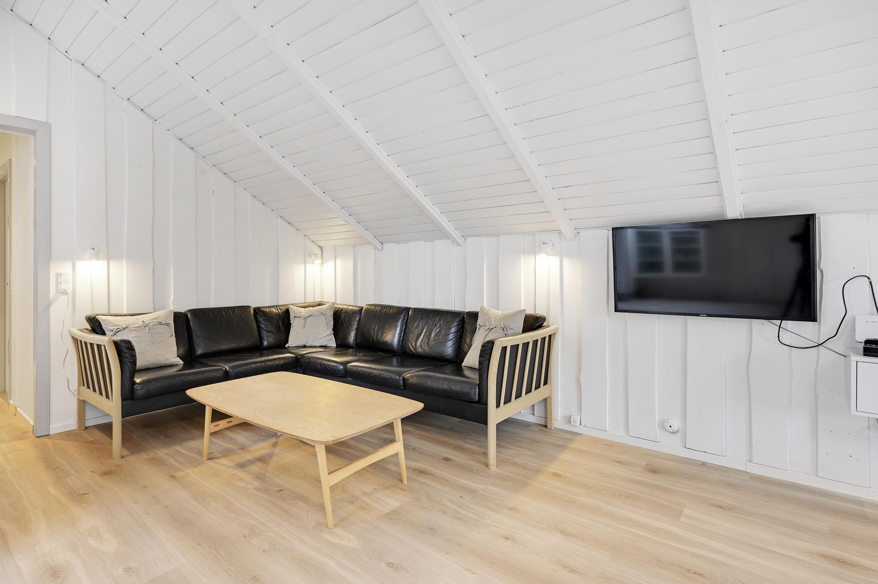 Gnisterne fra stuens brændeovn danner rammerne for en sjov spilleaften eller en hyggelig filmaften med familien, hvor I streamer jeres yndlingsfilm via Chromecasten. Den energibesparende varmepumpe kan med fordel også bruges til at holde temperaturen behagelig. På badeværelset er der gulvvarme.