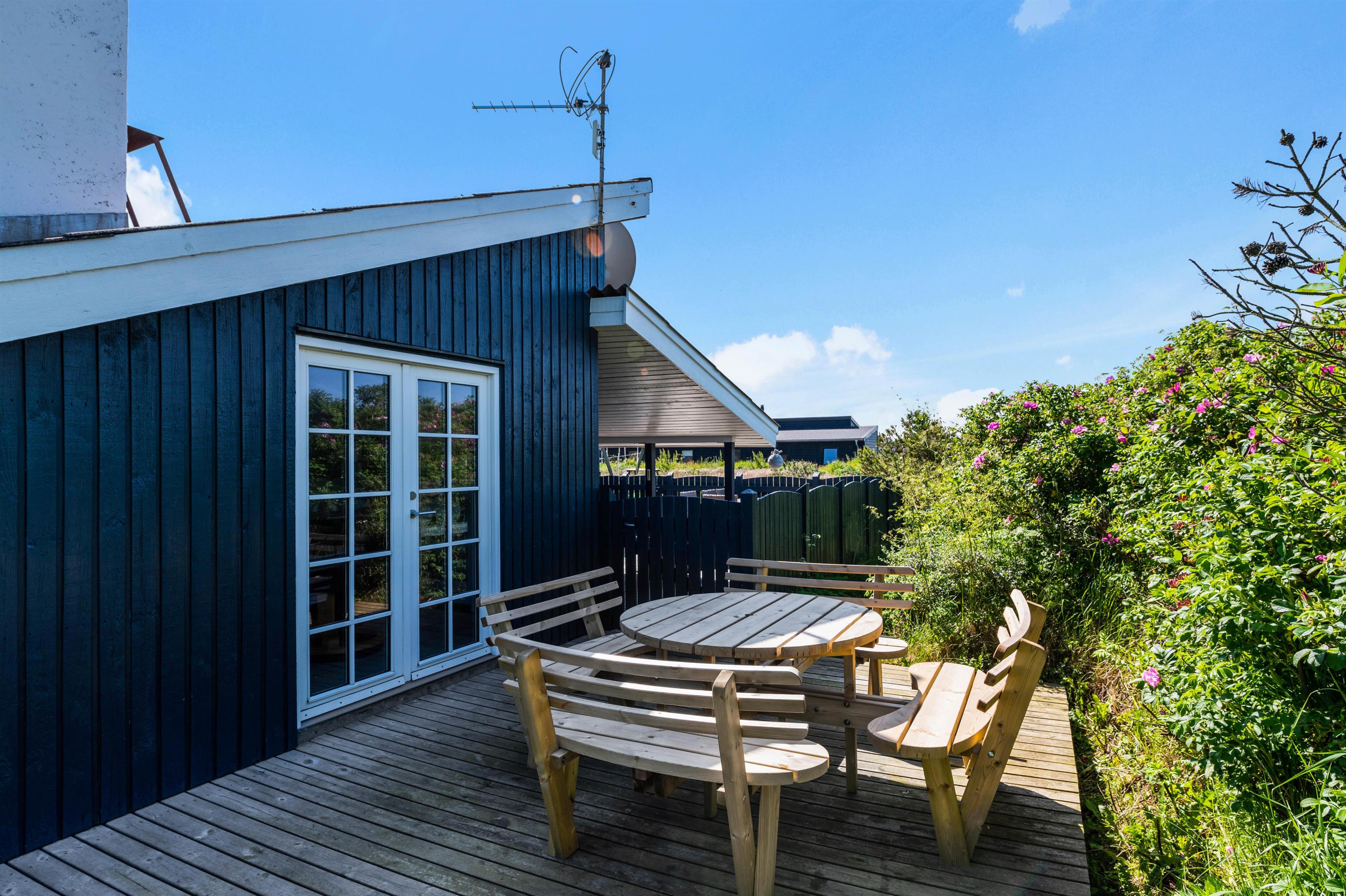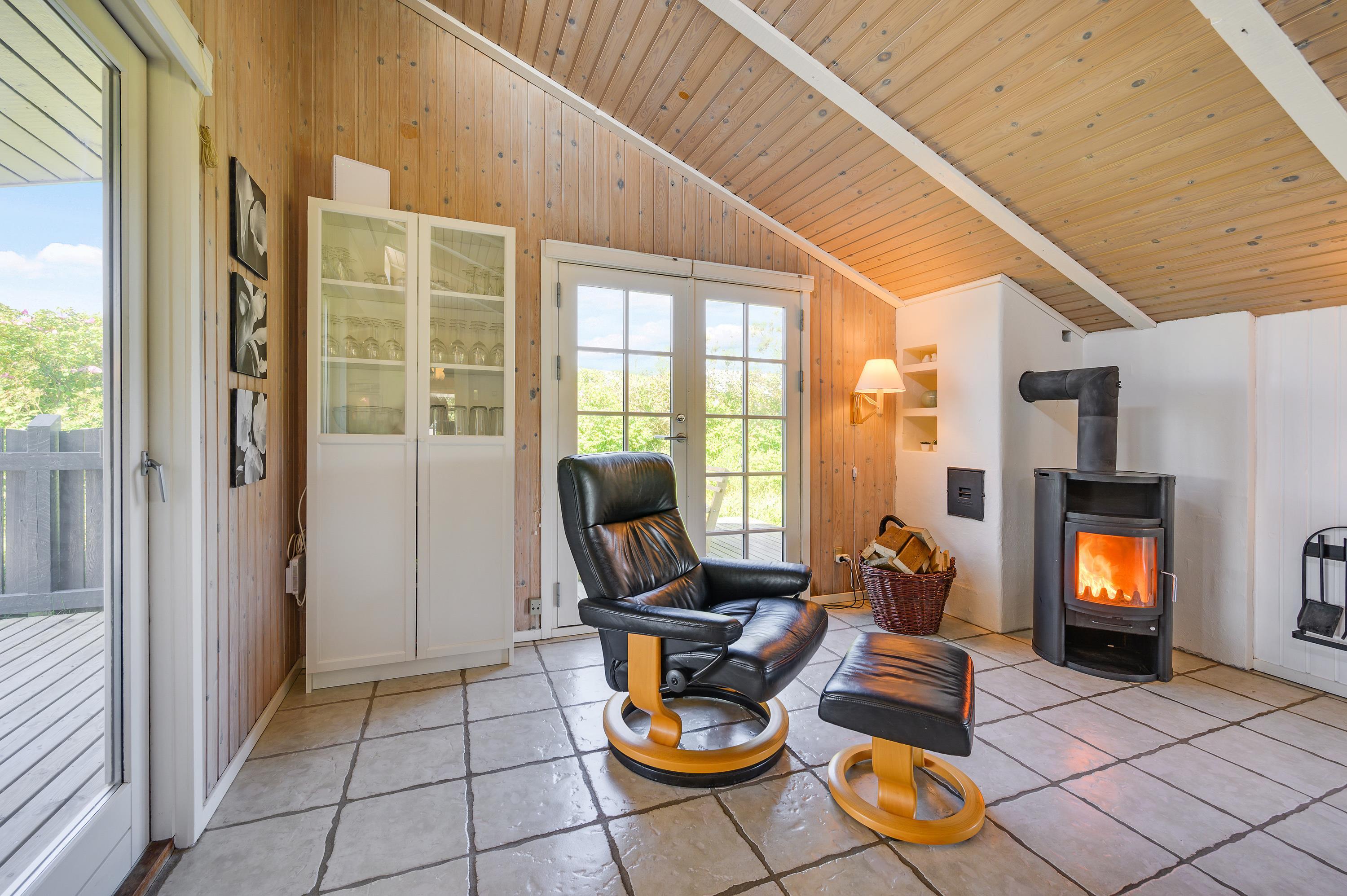 Rundt om sommerhuset finder I mange gode hyggekroge på de 3 terrasser og der er altid en terrasse med læ. En del af den sydvestvendte terrasse er overdækket, hvilket forlænger de lune sommeraftener på terrassen. Overdækningen sørger nemlig for at holde på varmen. Den giver samtidig også læ for vejr og vind allerede fra de tidlige forårsdage. Desuden er denne terrasse lukket.