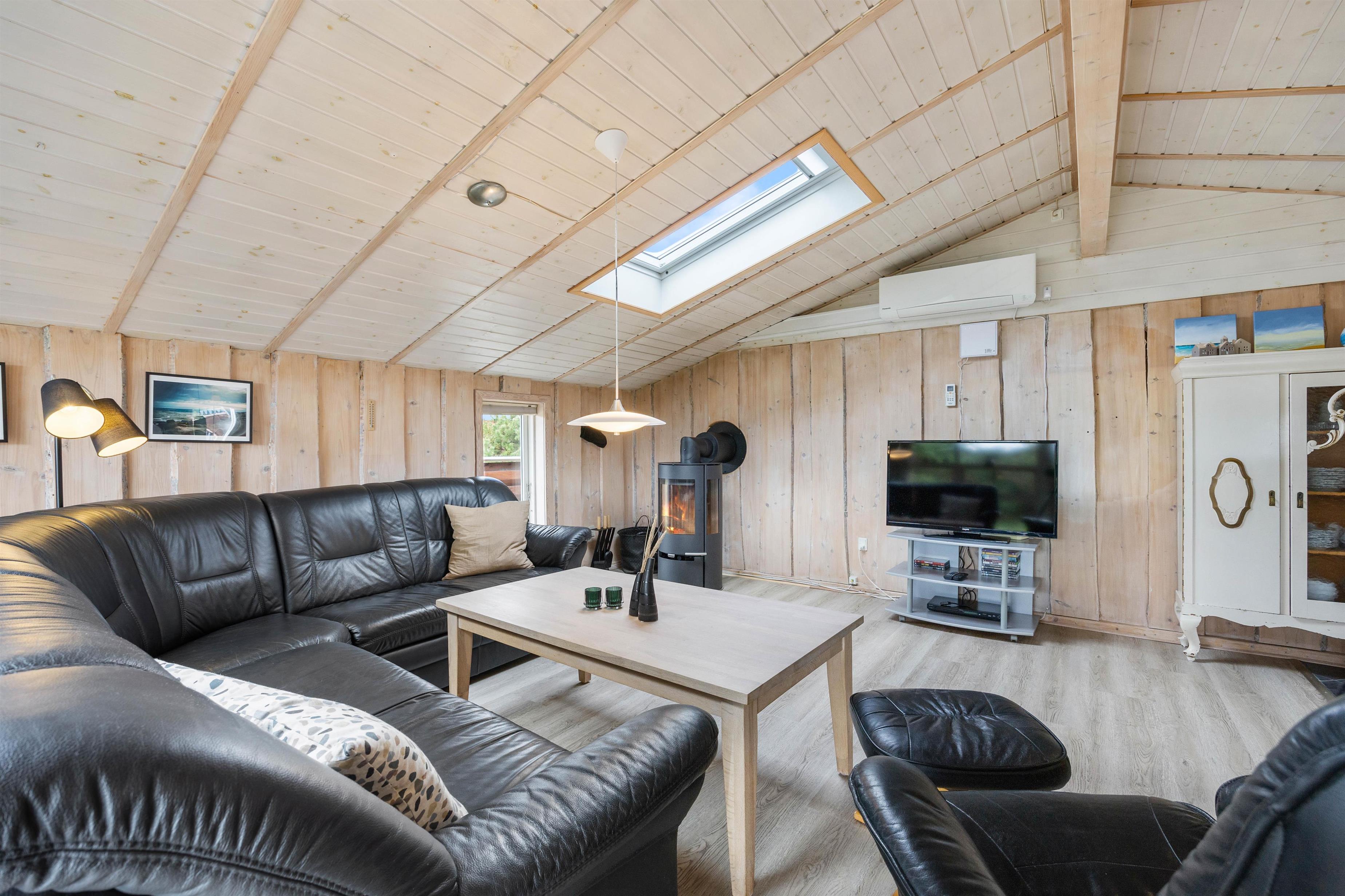 Sommerhusets hjerterum er alrummet, hvor stuen, det renoverede køkken og spiseplads ligger i åben forbindelse. Her kan I samles til hyggelige stunder med hele familien, mens brændeovnen spreder varme og feriestemning til rummet. Feriehuset har desuden en varmepumpe, som I også kan benytte jer af.