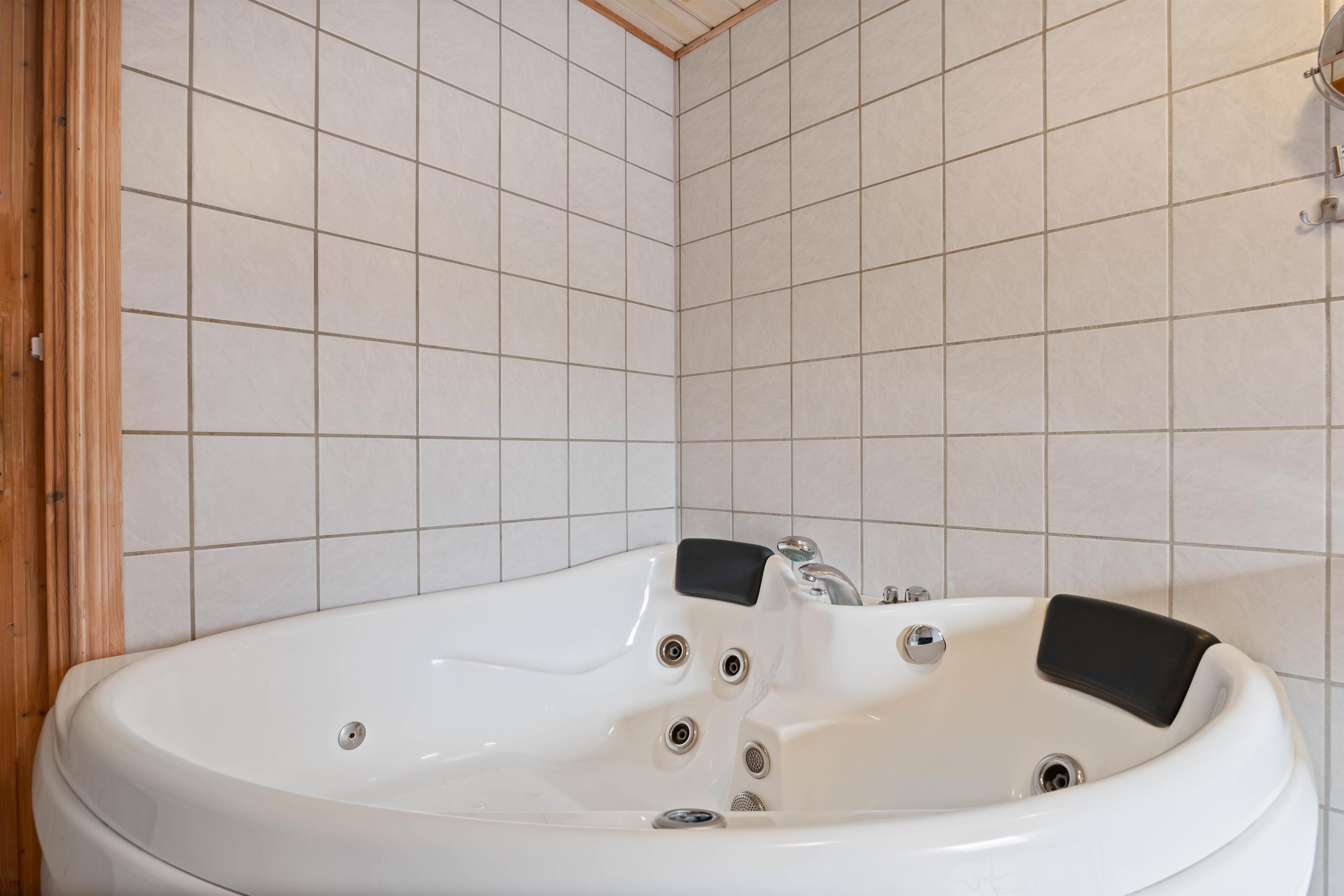 Et andet af sommerhusets highlights finder I på badeværelset med gulvvarme. Her har I nemlig jeres egen lille wellness-afdeling med både spabad og sauna, som er helt perfekt til afslapning og velvære efter en begivenhedsrig feriedag.