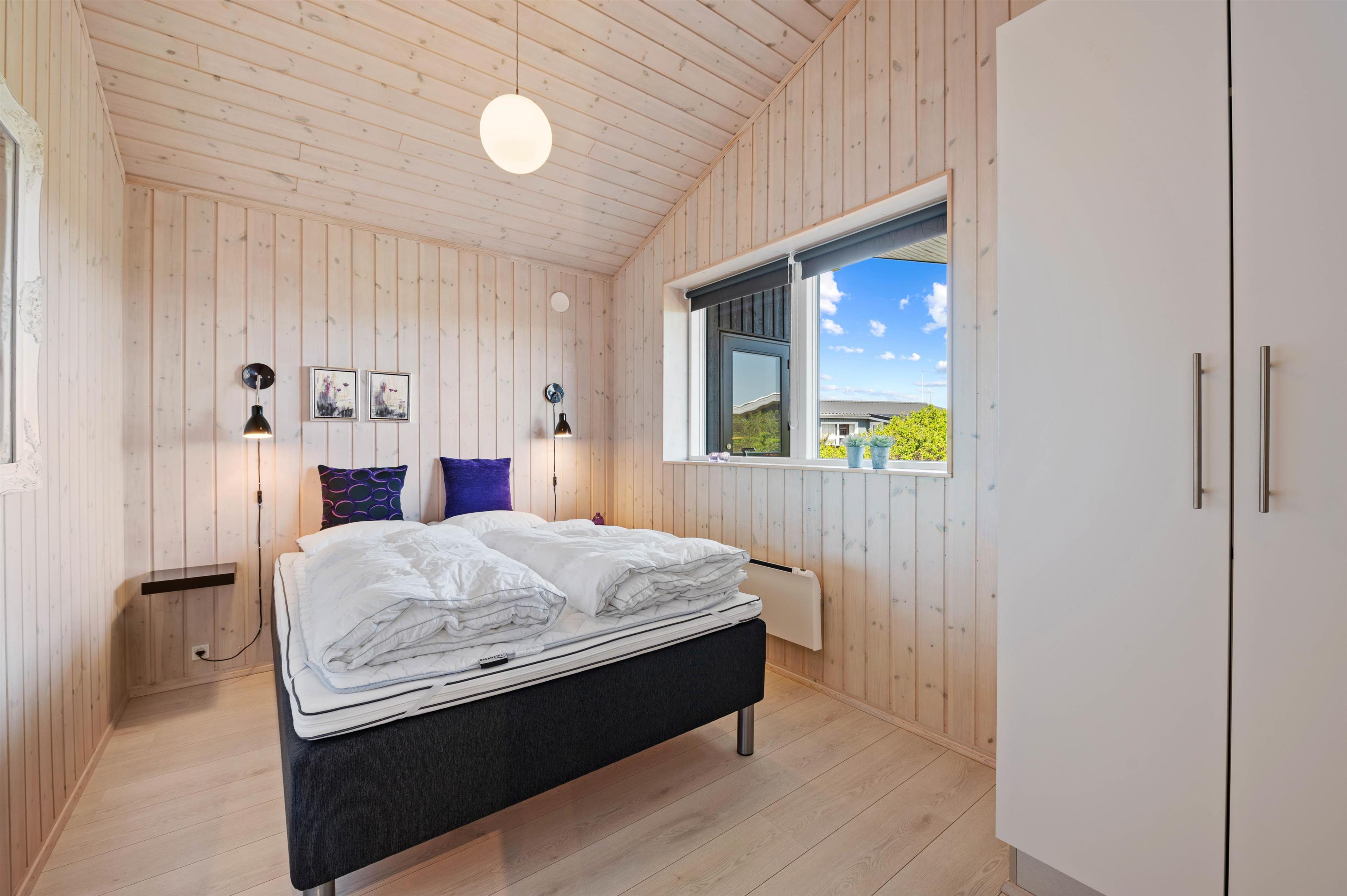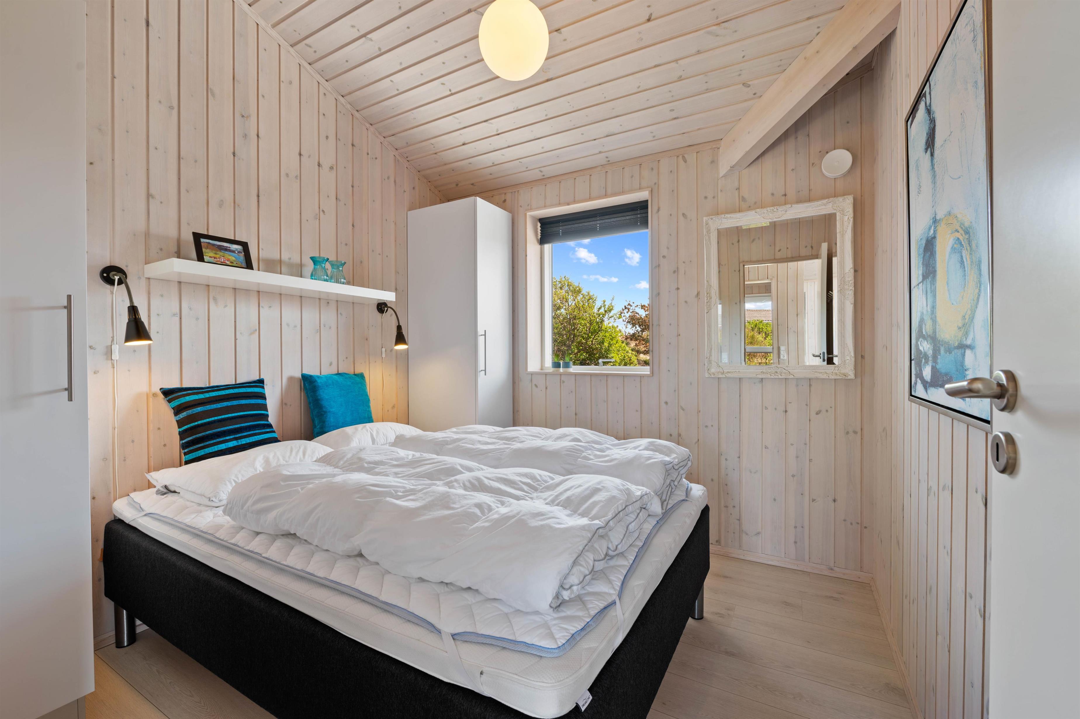 Sommerhuset har 2 soveværelser med dobbeltsenge, 1 soveværelse med 2 enkeltsenge og 2 sovepladser i alkoven. 2 flotte badeværelser med bruser og gulvvarme samt stor sauna med bænke i 2 niveauer.