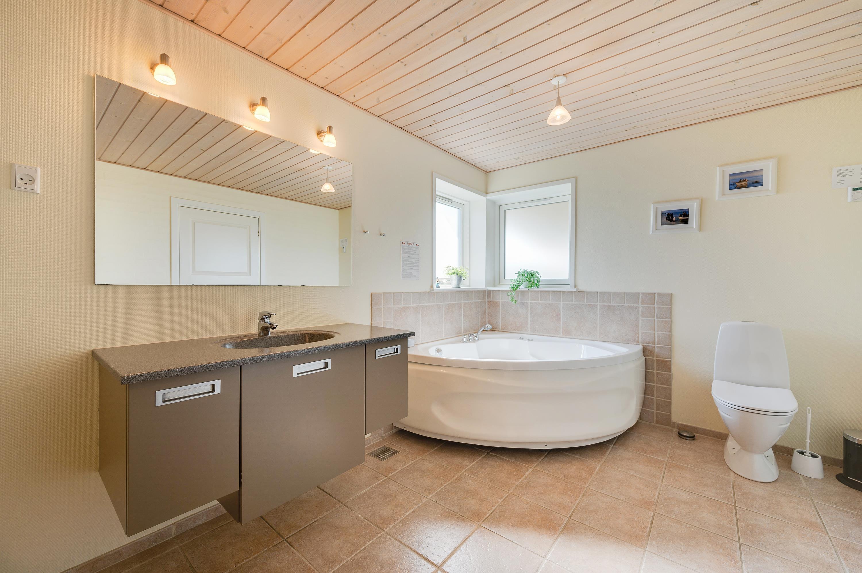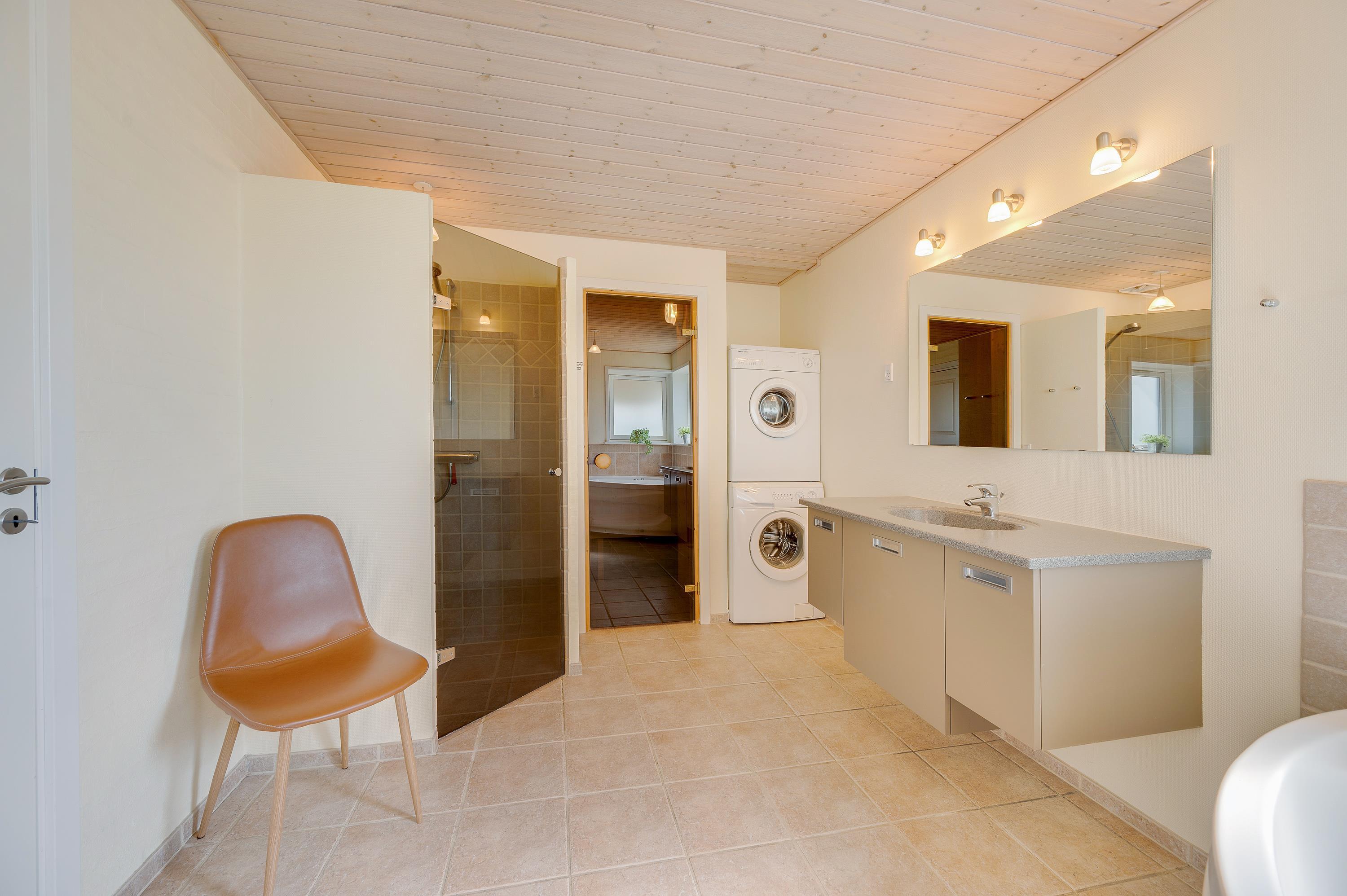 Her har I muligheden for at holde ferie i et moderne indrettet kvalitetshus, hvor 4 komfortable dobbeltværelser – det ene på 1.sal – og en stor wellnessafdeling med 2-personers spa og afslappende sauna, hvor også vaskesøjlen har plads.