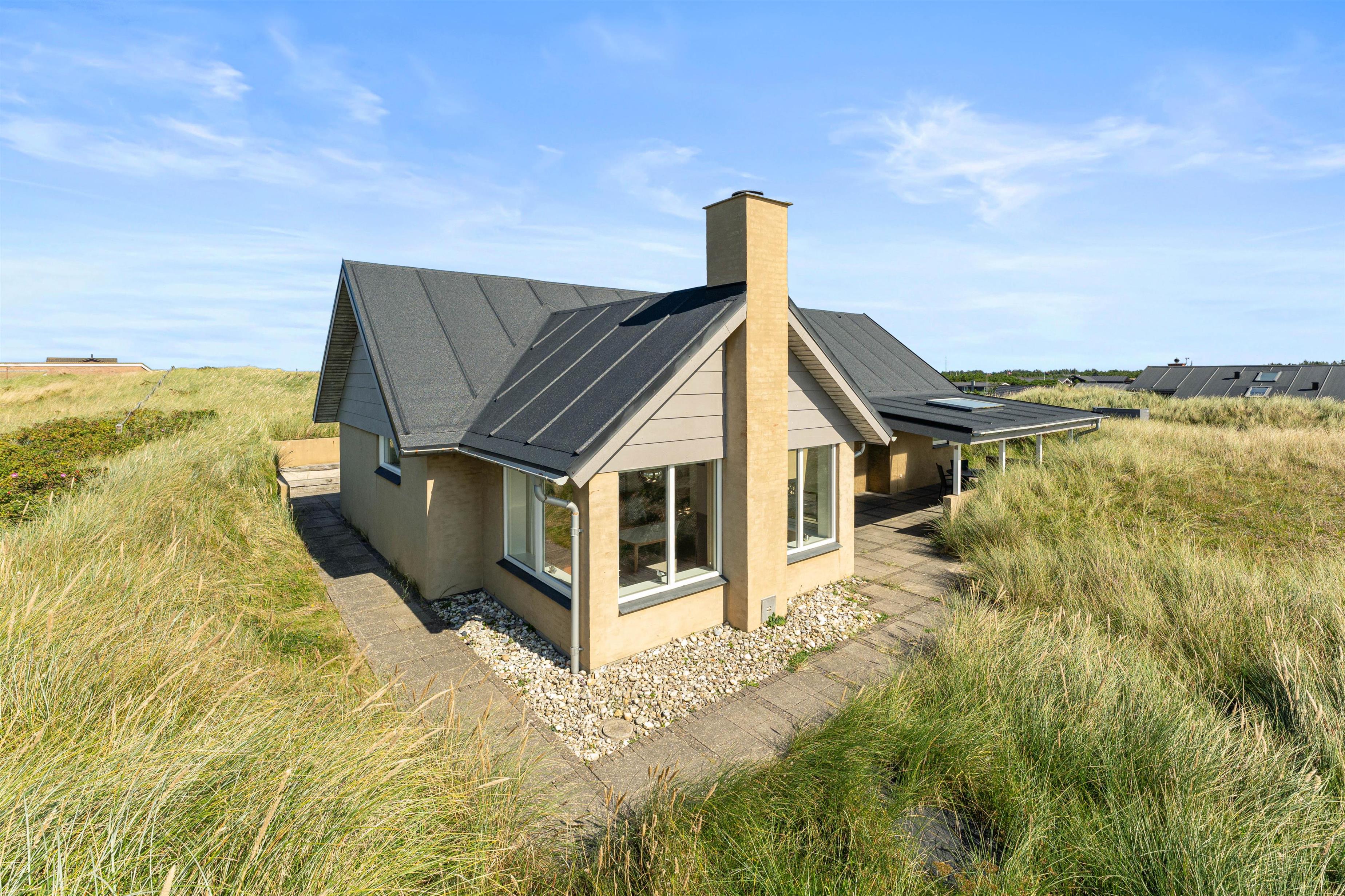 Den storslåede natur i Bjerregård, hvor dette kvalitetshus ligger lige op ad et stort fredet hedeareal, skal nydes både på bade- og traveture og den fine sandstrand er kun ca. 250 meter fra sommerhuset. På den dejlige, velmøblerede terrasse har familien gode faciliteter til solnydelse og hyggelige grillaftener.