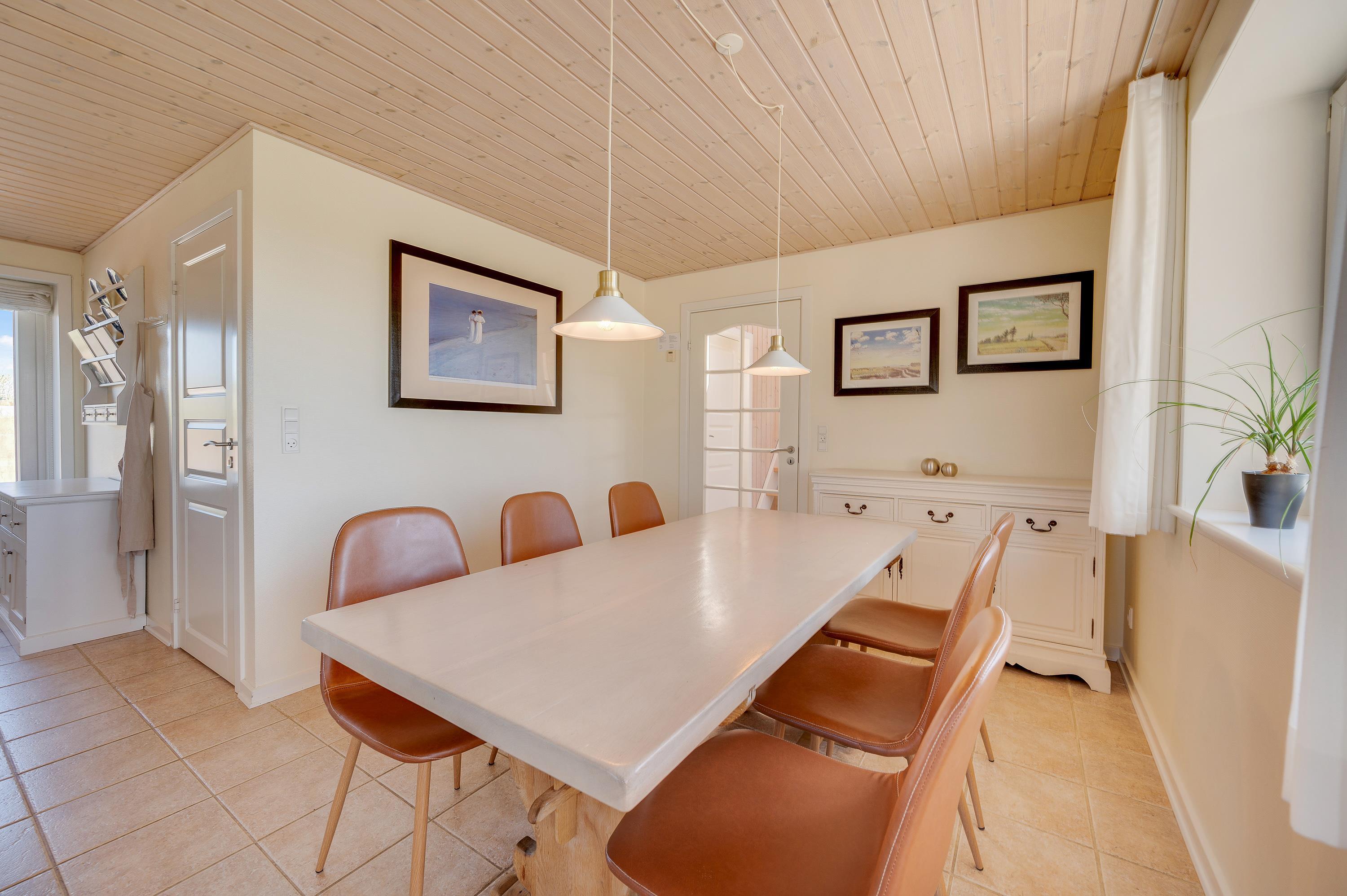 På Kirstinevej 92 i Bjerregård ligger et virkelig dejligt kvalitetshus med en flot og stilfuld indretning. Sommerhuset er meget veludstyret og opvarmning er gratis, da sommerhuset har jordvarmeanlæg. Desuden har det en skøn beliggenhed ved stort hedeområde og tæt på stranden kun ca. 15 km fra Hvide Sande. Sommerhuset har en god overdækket og afskærmet terrasse, hvor I kan samles til hyggelige stunder med hele familien.