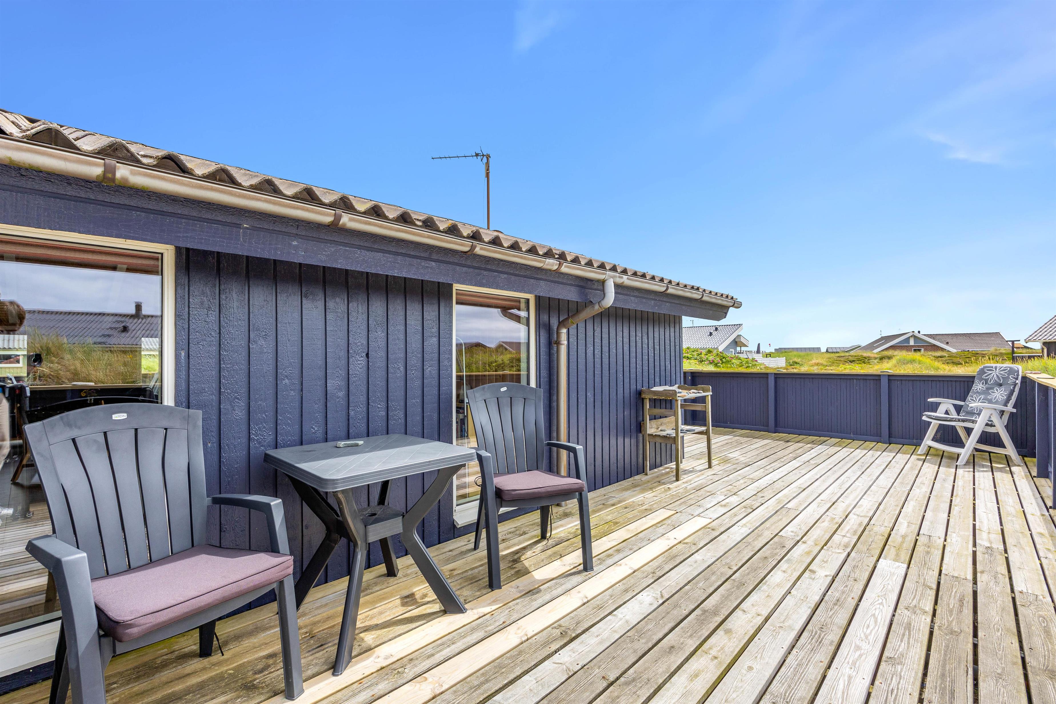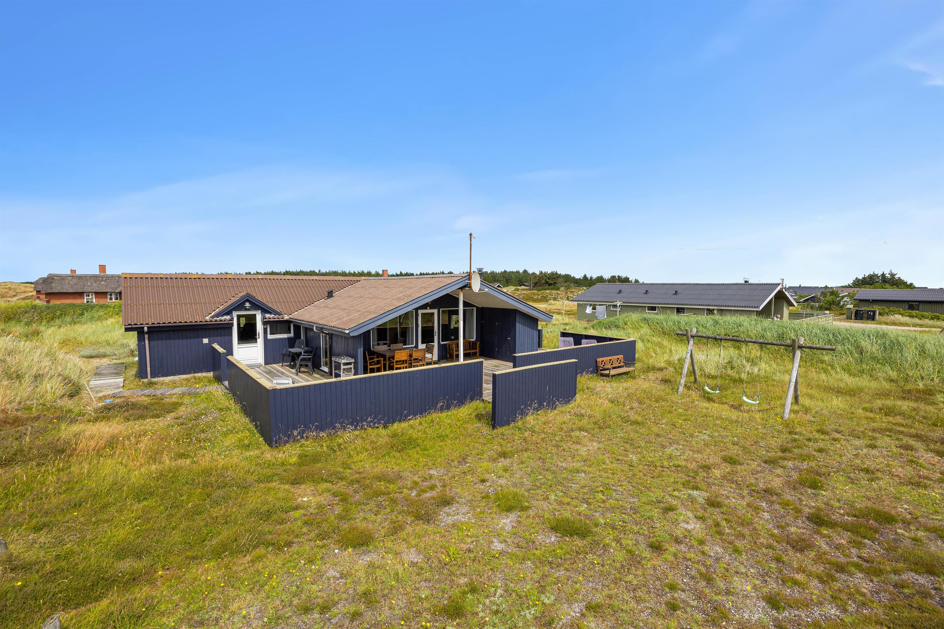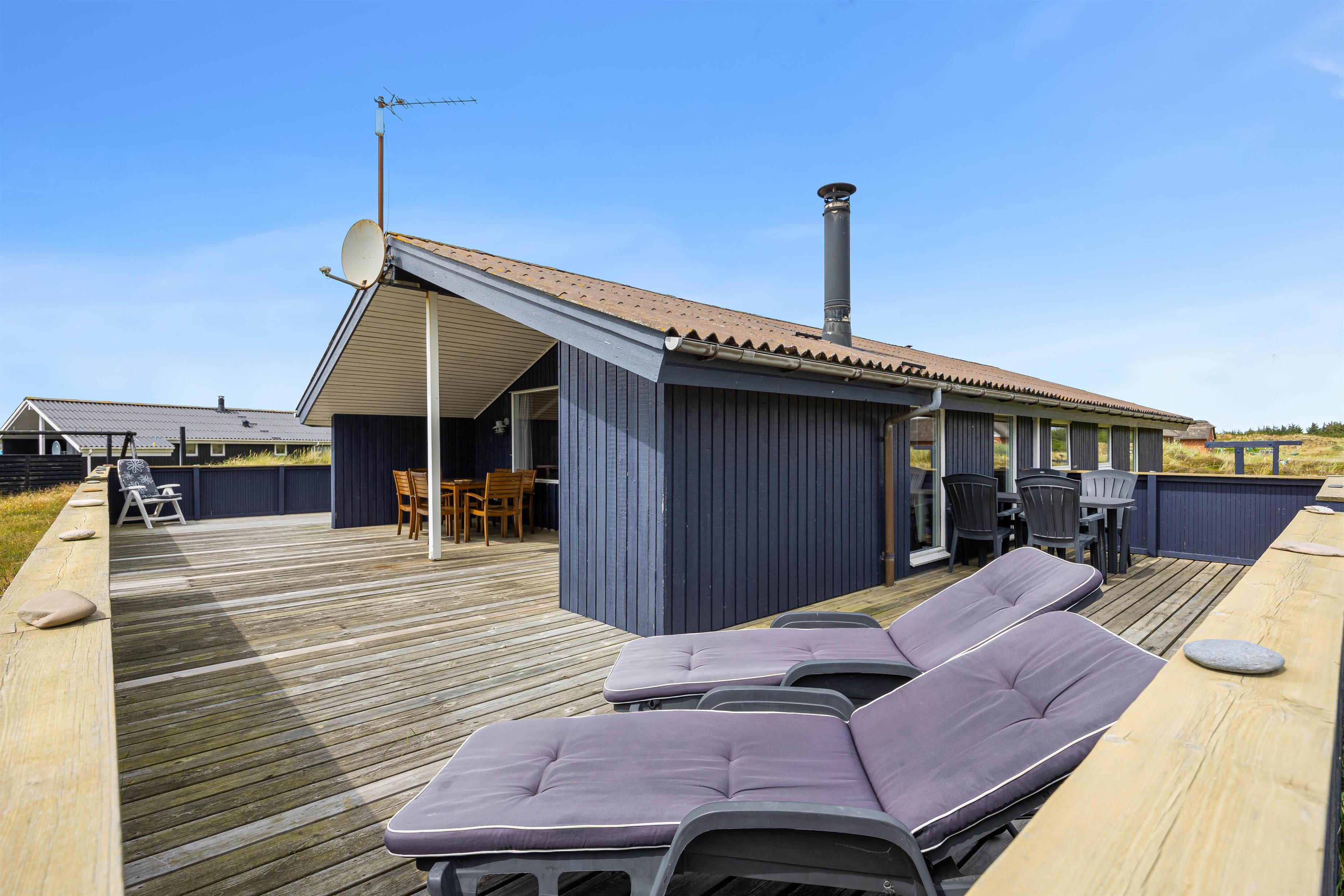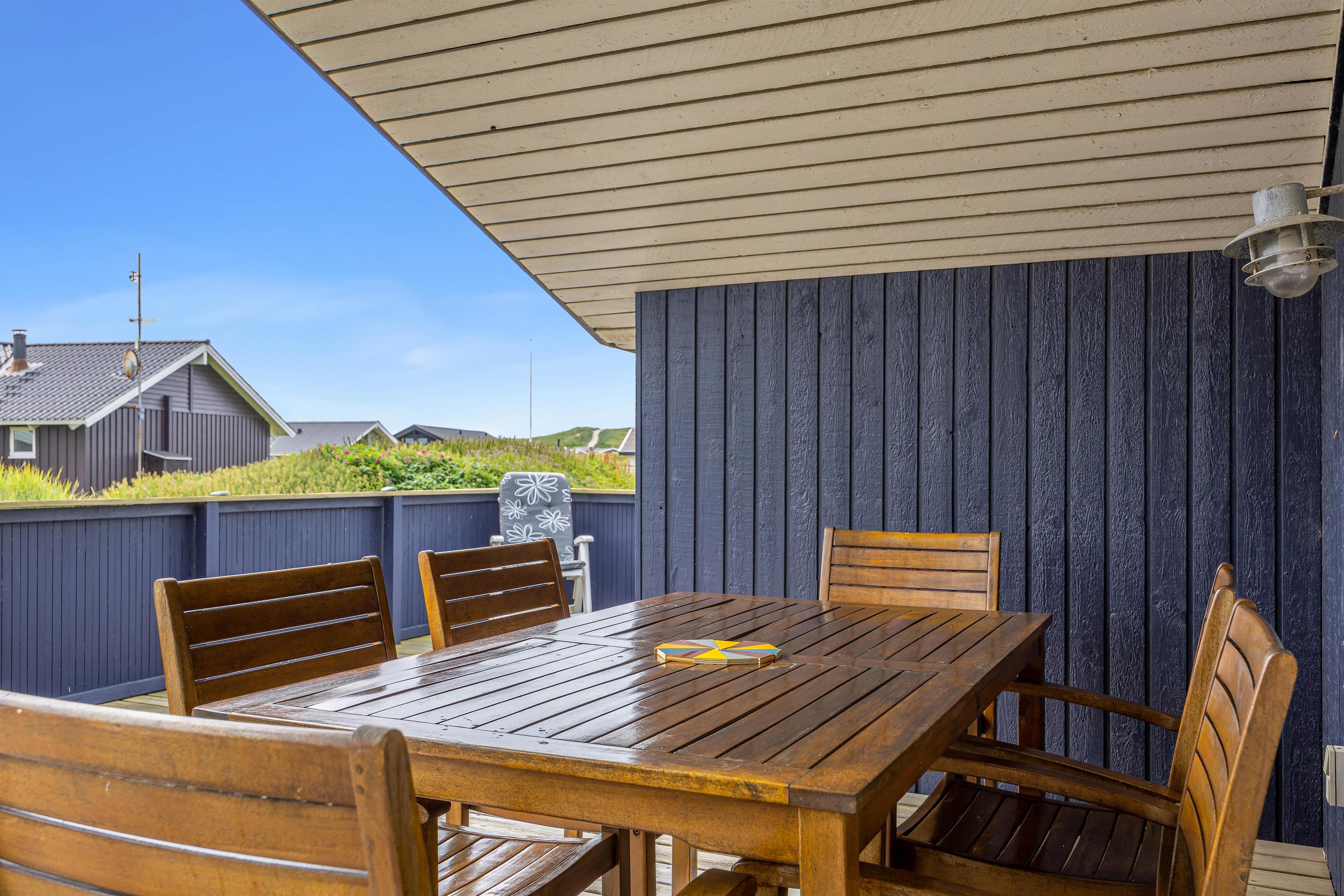På den lukkede terrasse kan I slappe af i havemøblerne eller tage solbad i liggestolene imens børnene leger i sandkassen. Tænd op i grillen til aften og nyd et lækkert grillmåltid sammen, imens skyggerne bliver lange. Bagefter kan I nå en tur til stranden, hvor I alle kan opleve solnedgangen i Vesterhavet – det er en oplevelse for alle aldersklasser.