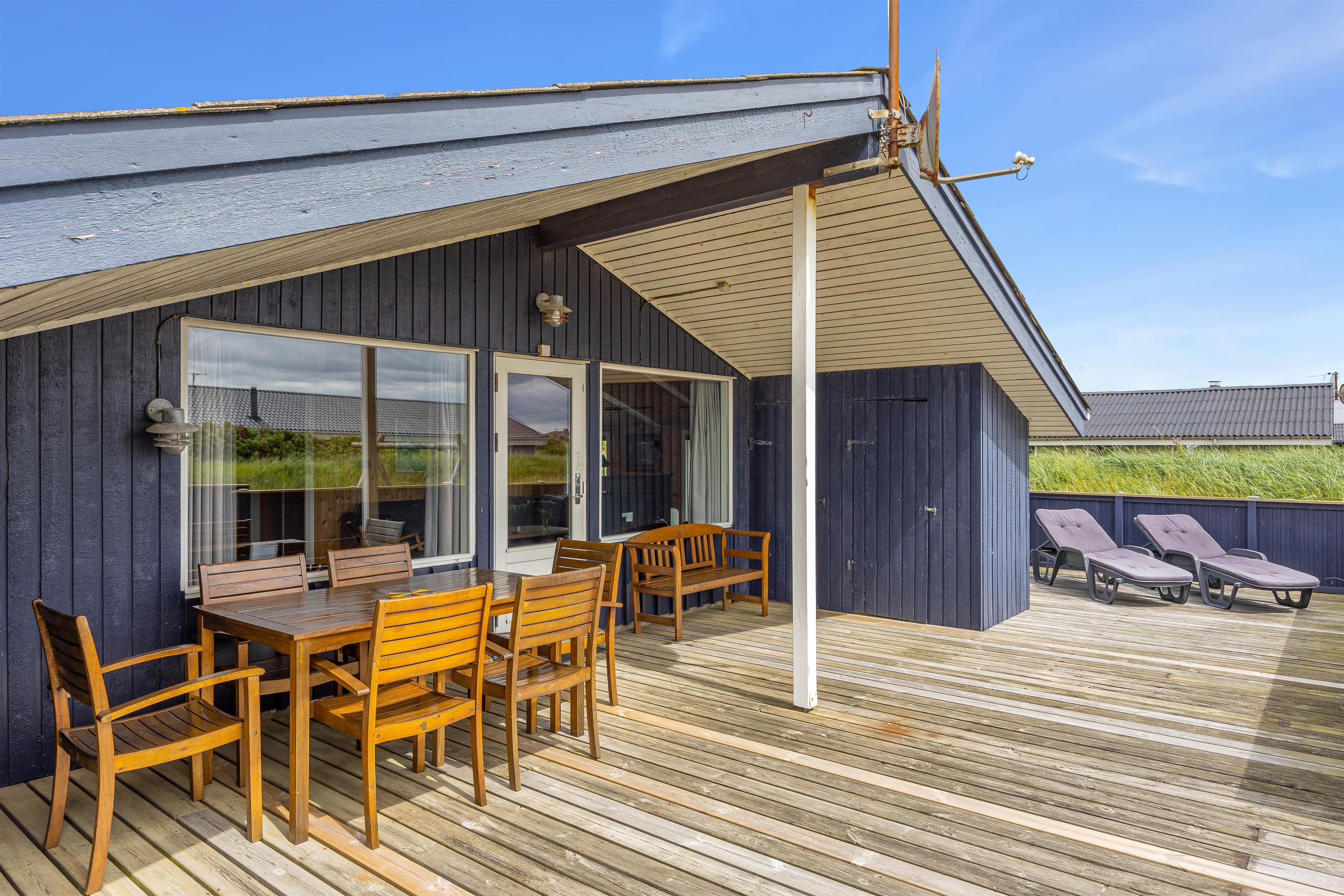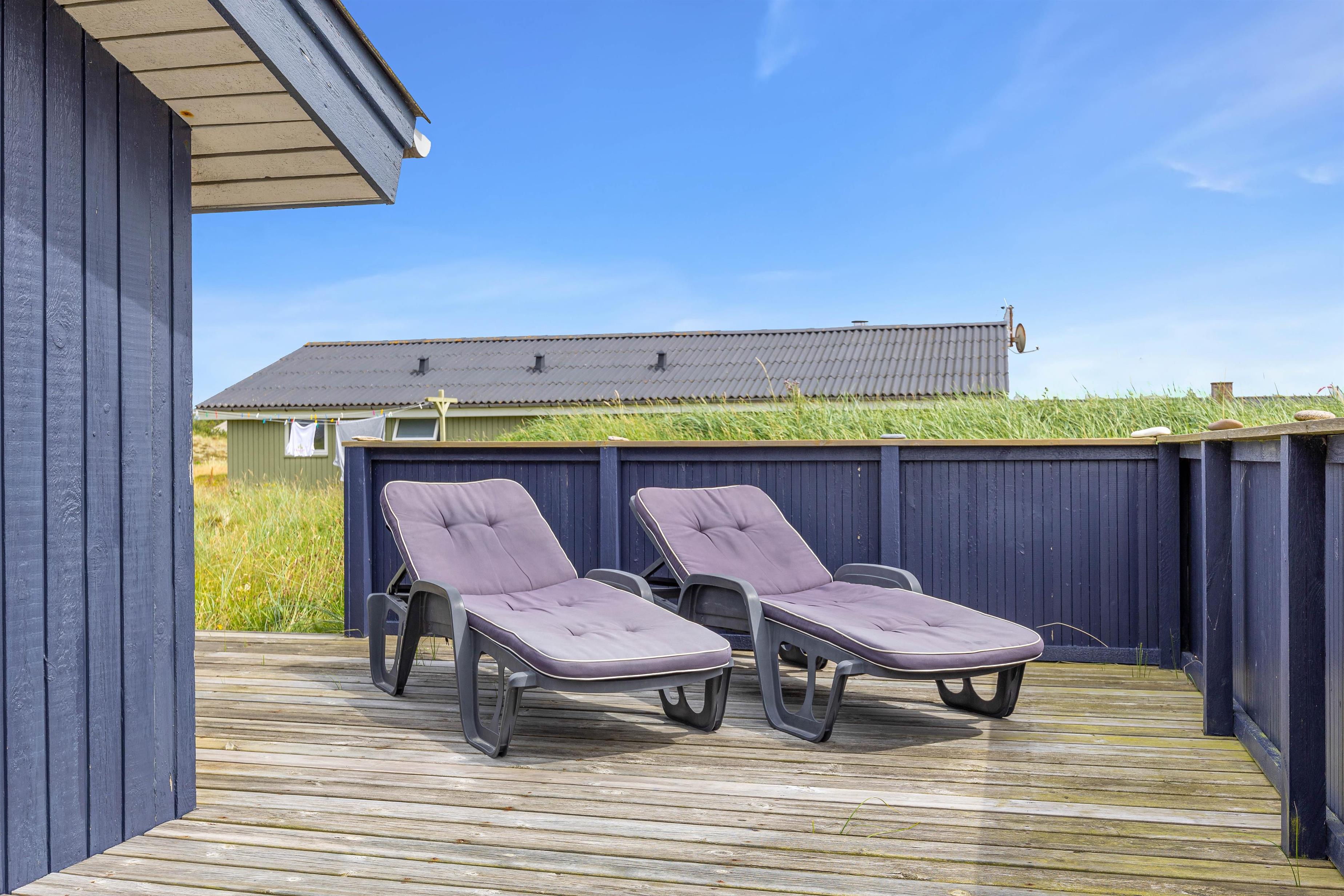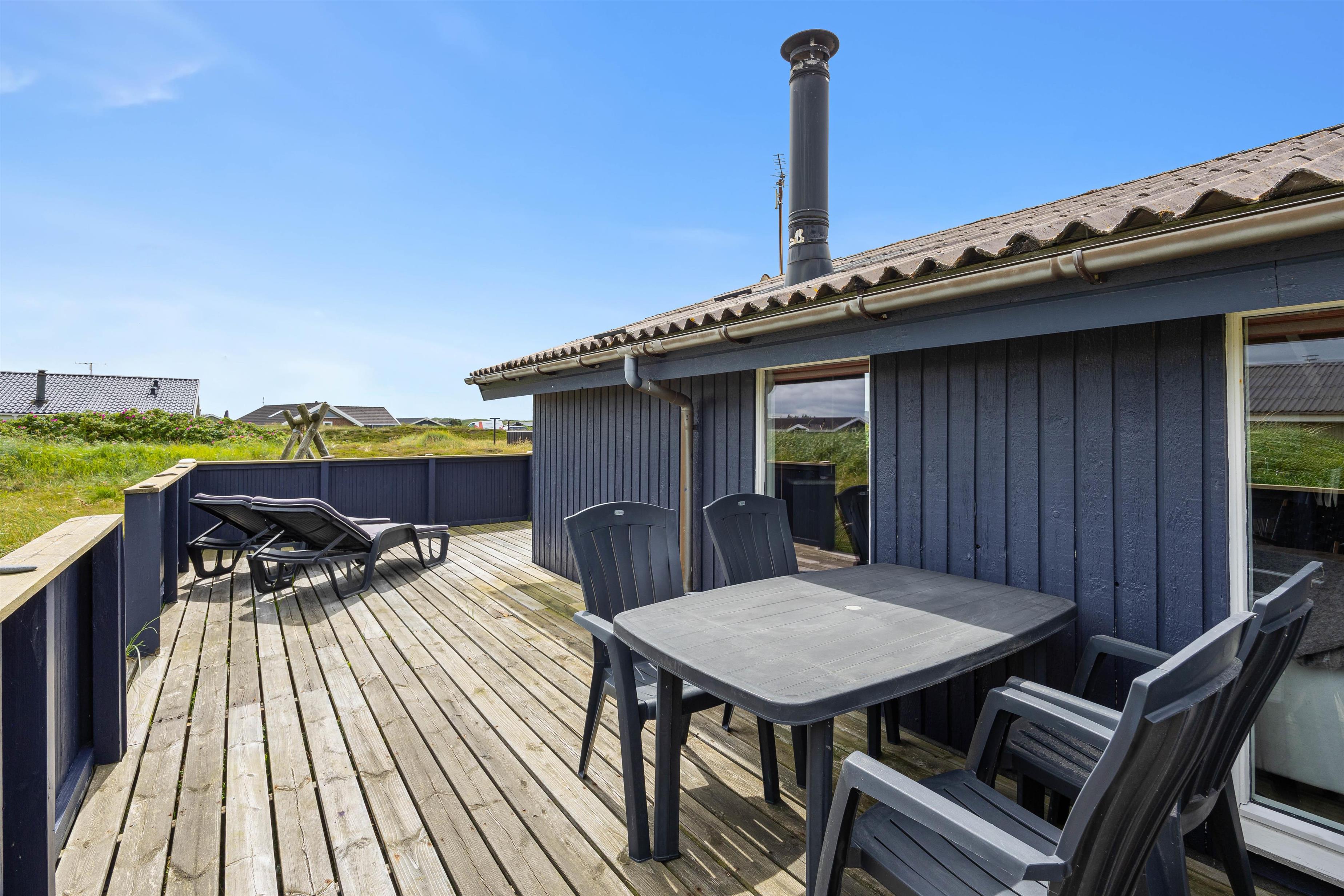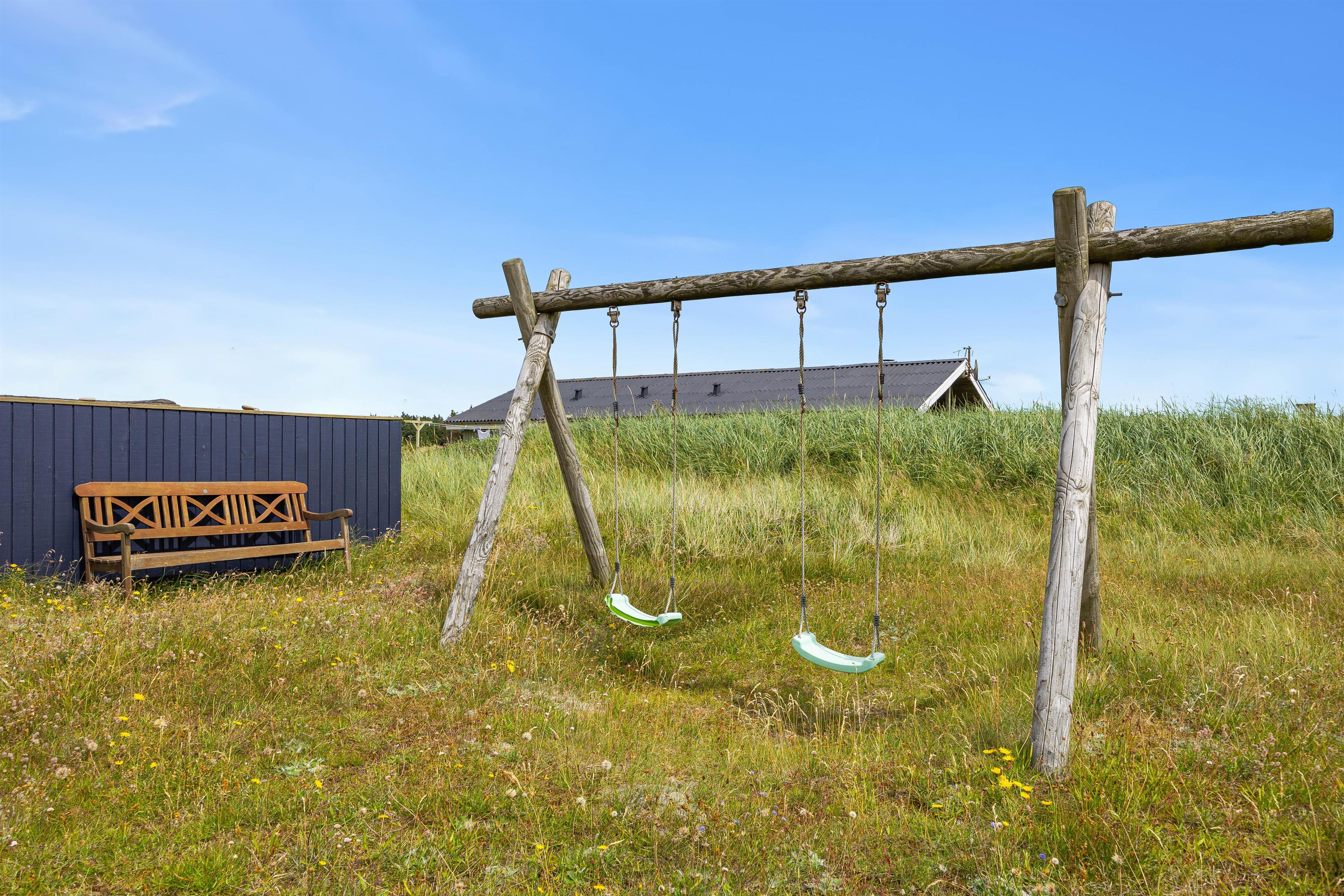 På den lukkede terrasse kan I slappe af i havemøblerne eller tage solbad i liggestolene imens børnene leger i sandkassen. Tænd op i grillen til aften og nyd et lækkert grillmåltid sammen, imens skyggerne bliver lange. Bagefter kan I nå en tur til stranden, hvor I alle kan opleve solnedgangen i Vesterhavet – det er en oplevelse for alle aldersklasser.