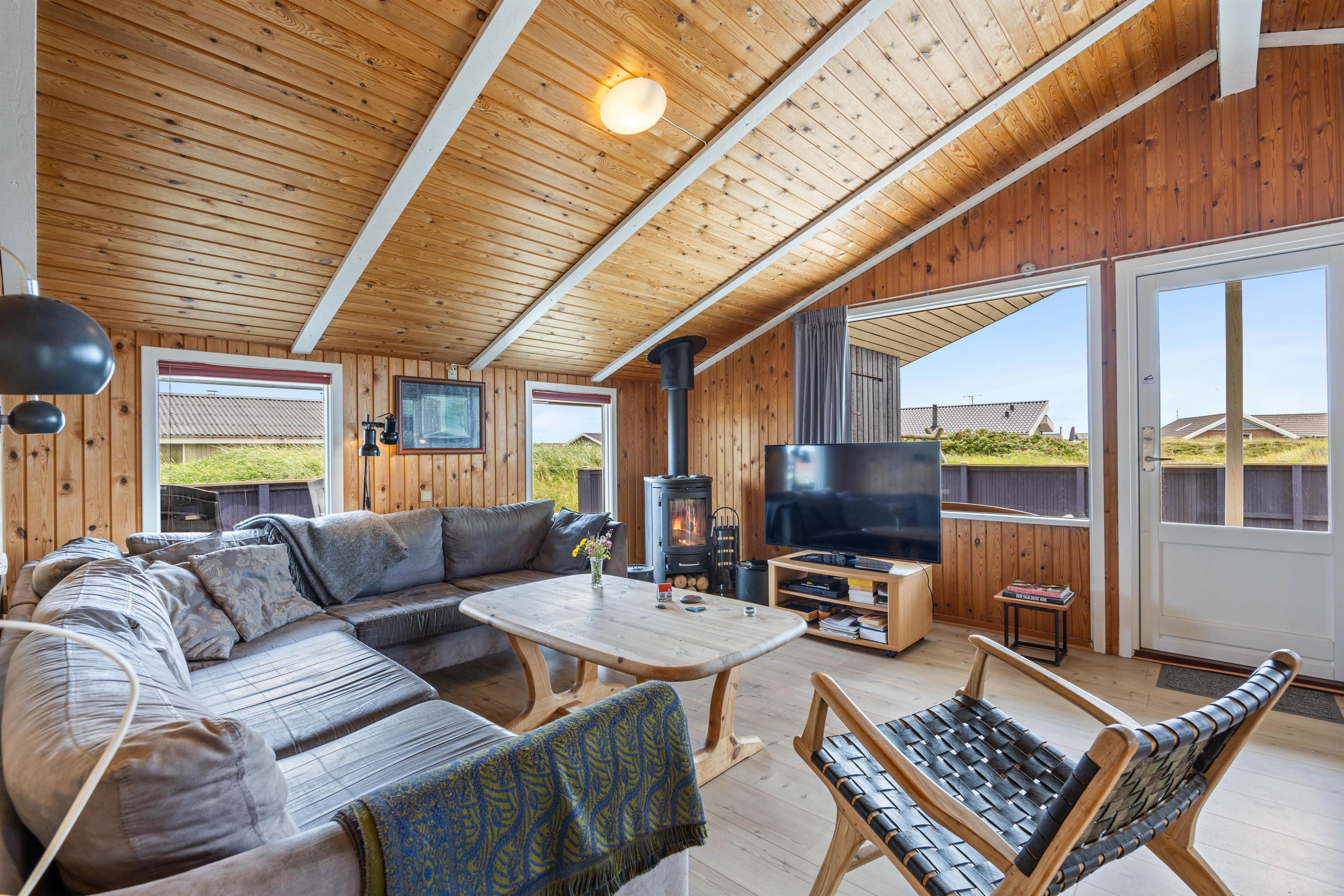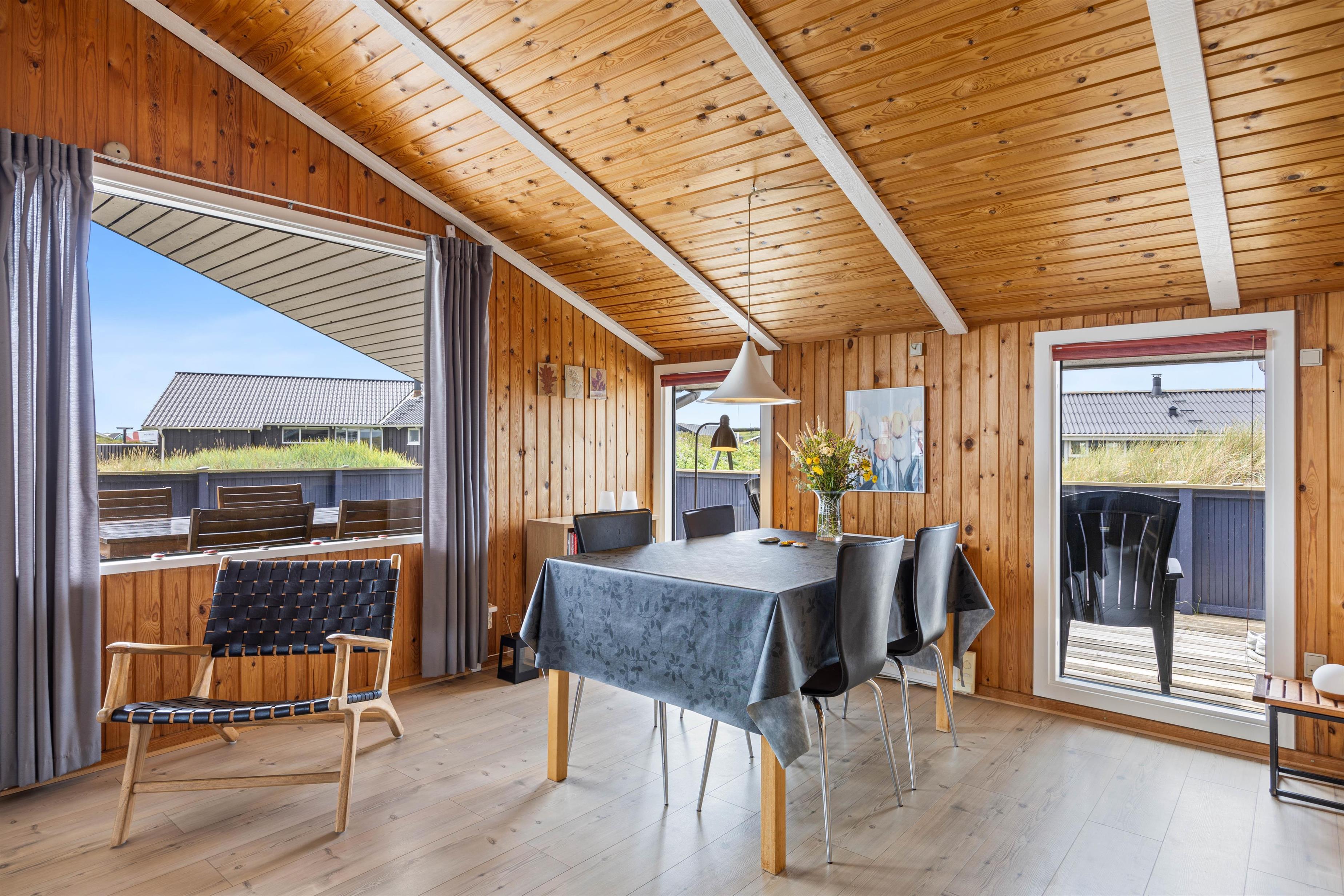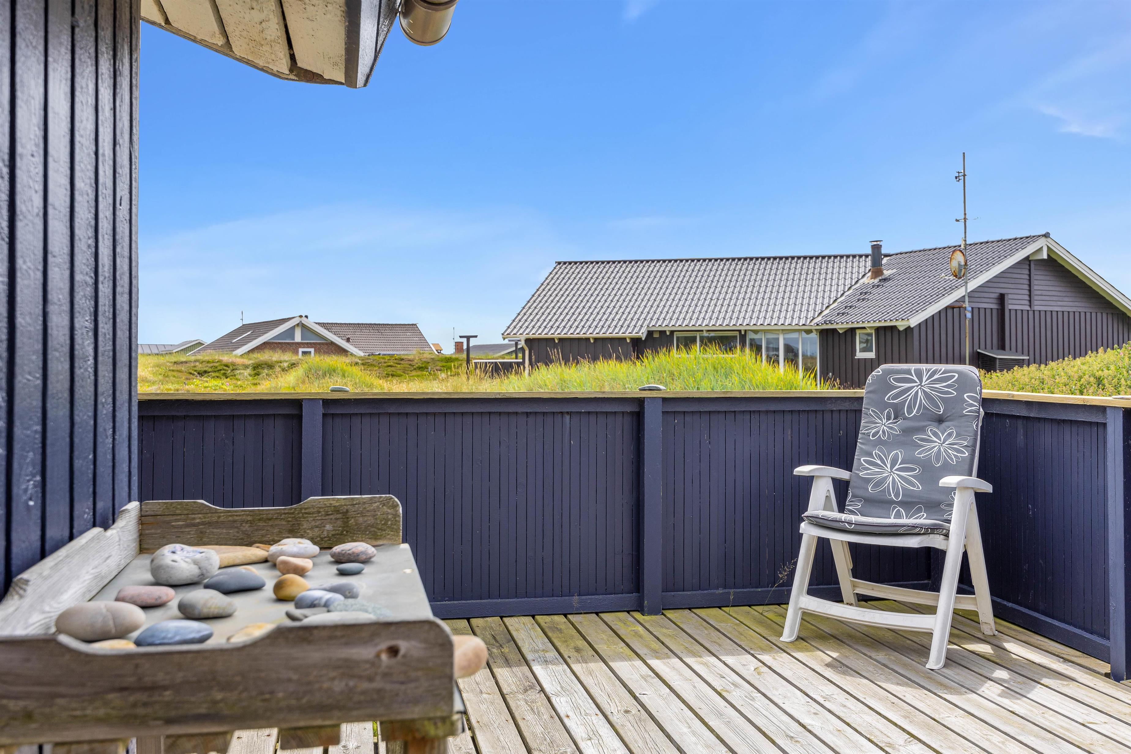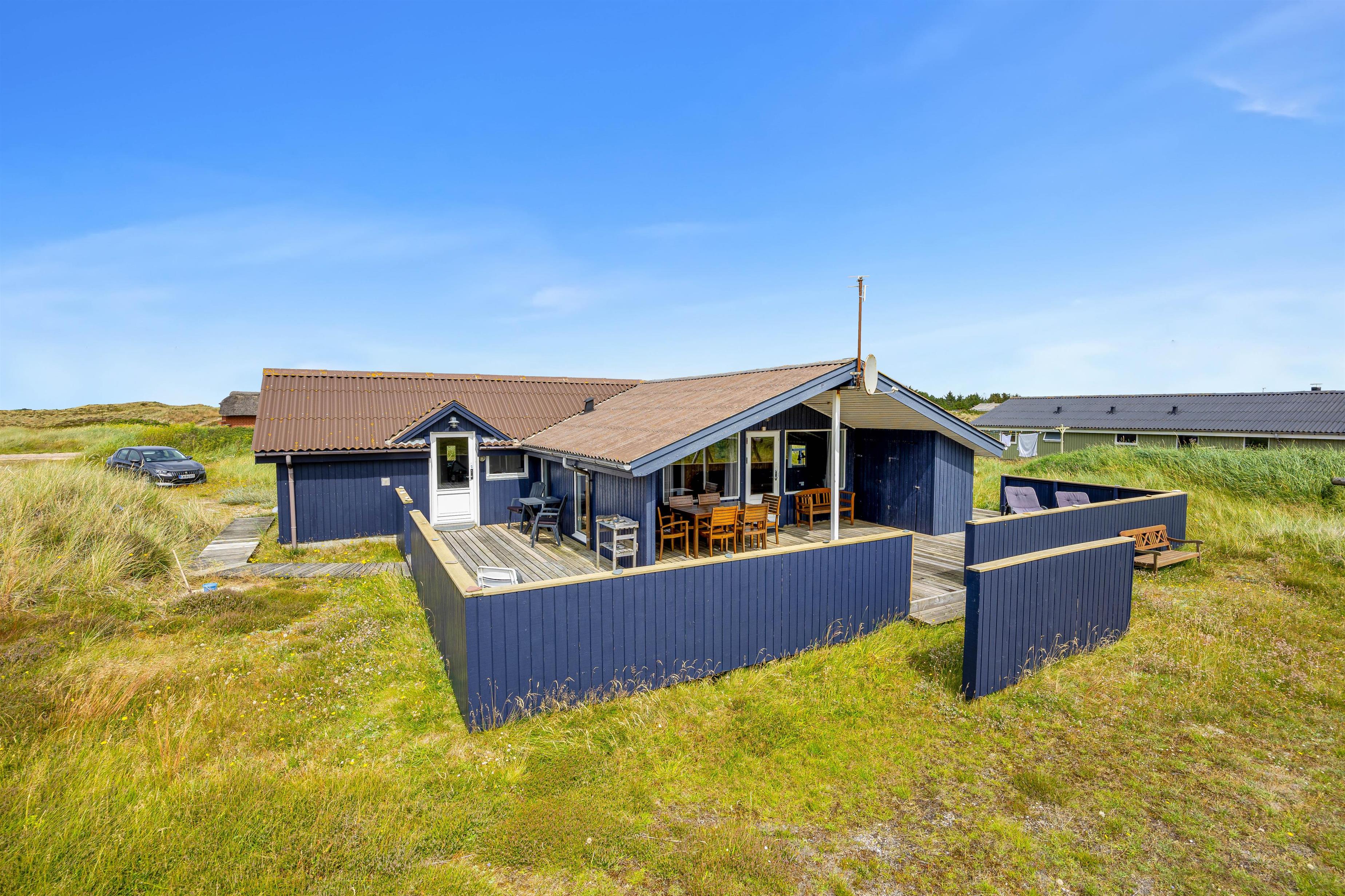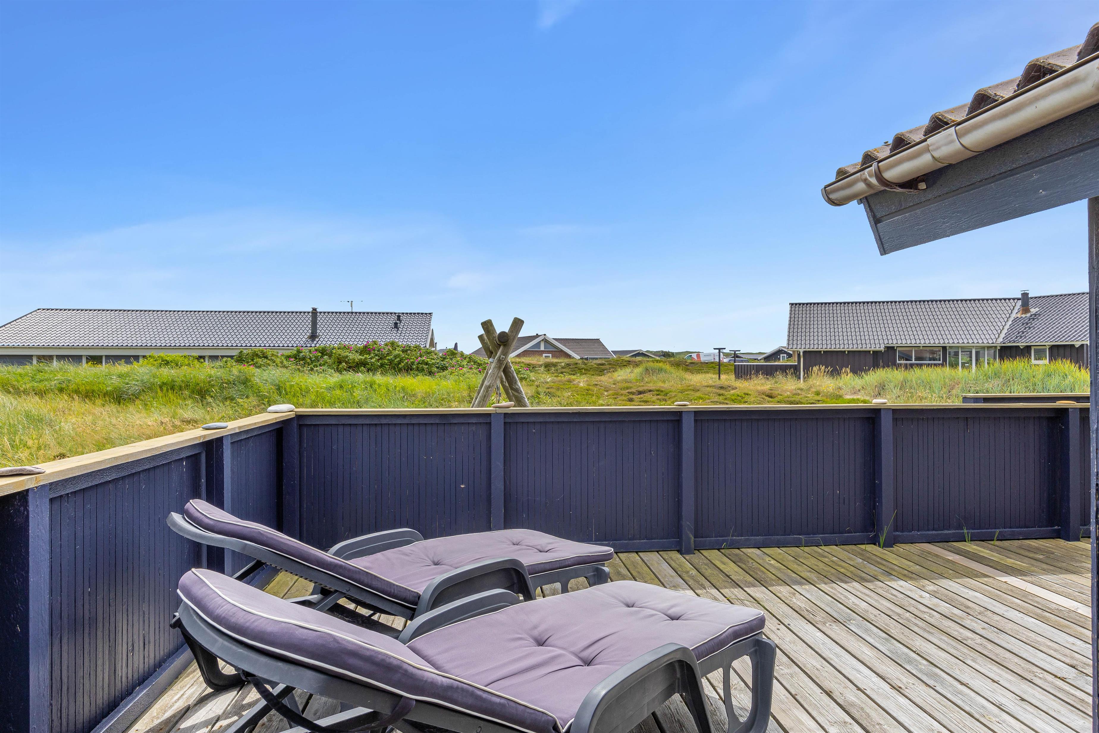 På den lukkede terrasse kan I slappe af i havemøblerne eller tage solbad i liggestolene imens børnene leger i sandkassen. Tænd op i grillen til aften og nyd et lækkert grillmåltid sammen, imens skyggerne bliver lange. Bagefter kan I nå en tur til stranden, hvor I alle kan opleve solnedgangen i Vesterhavet – det er en oplevelse for alle aldersklasser.