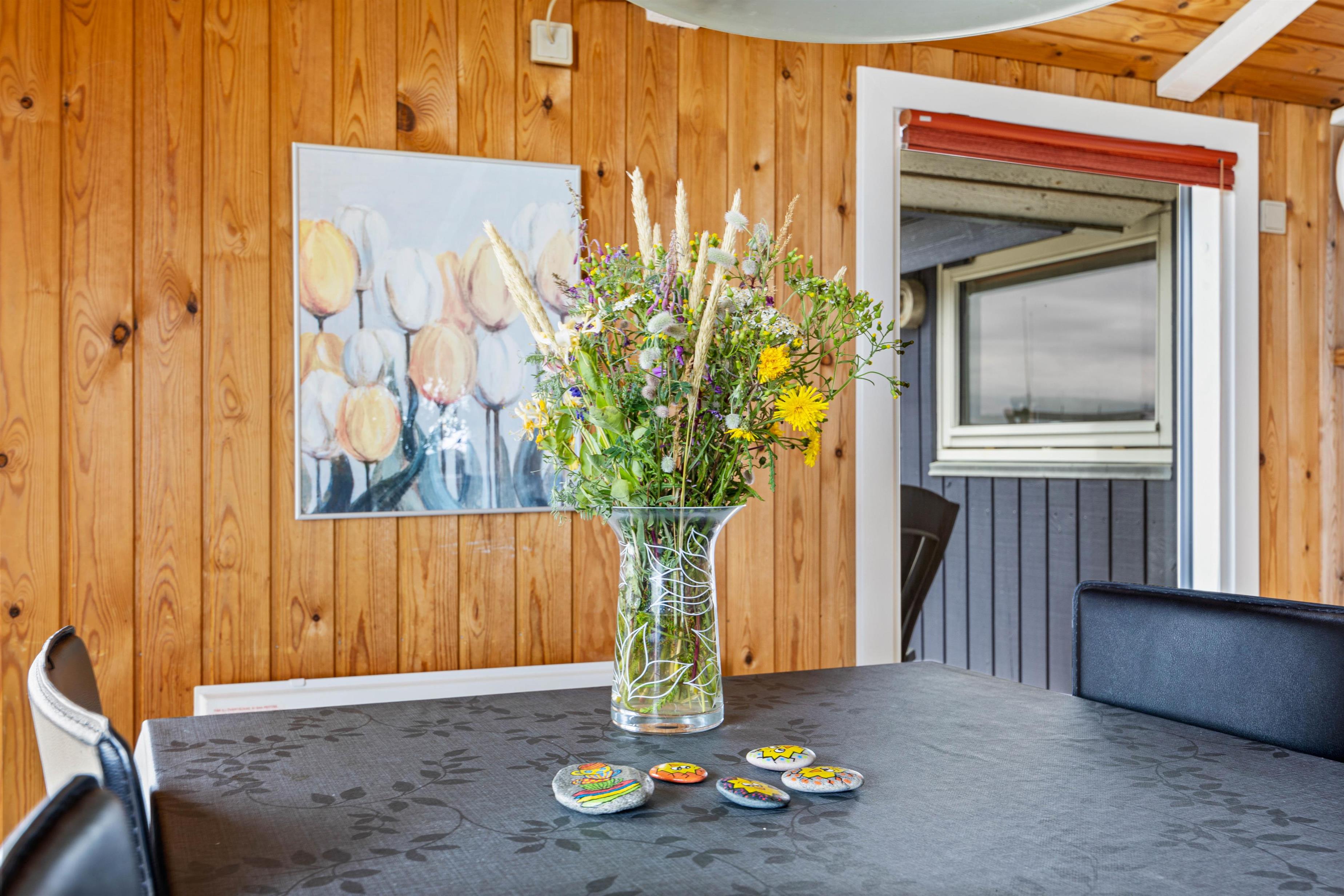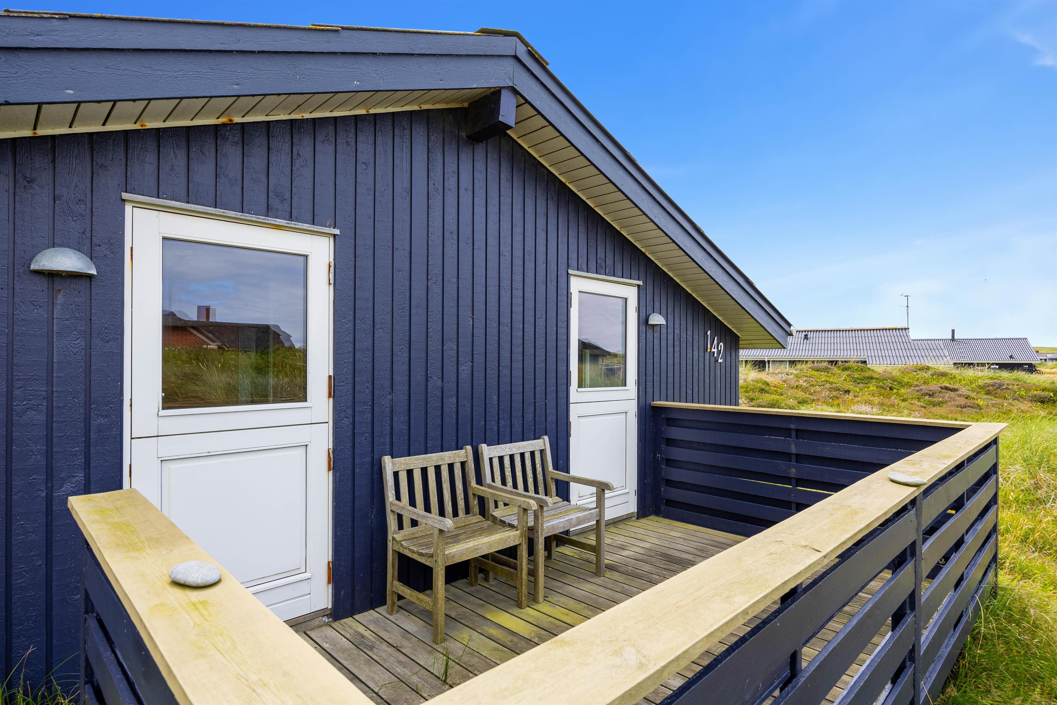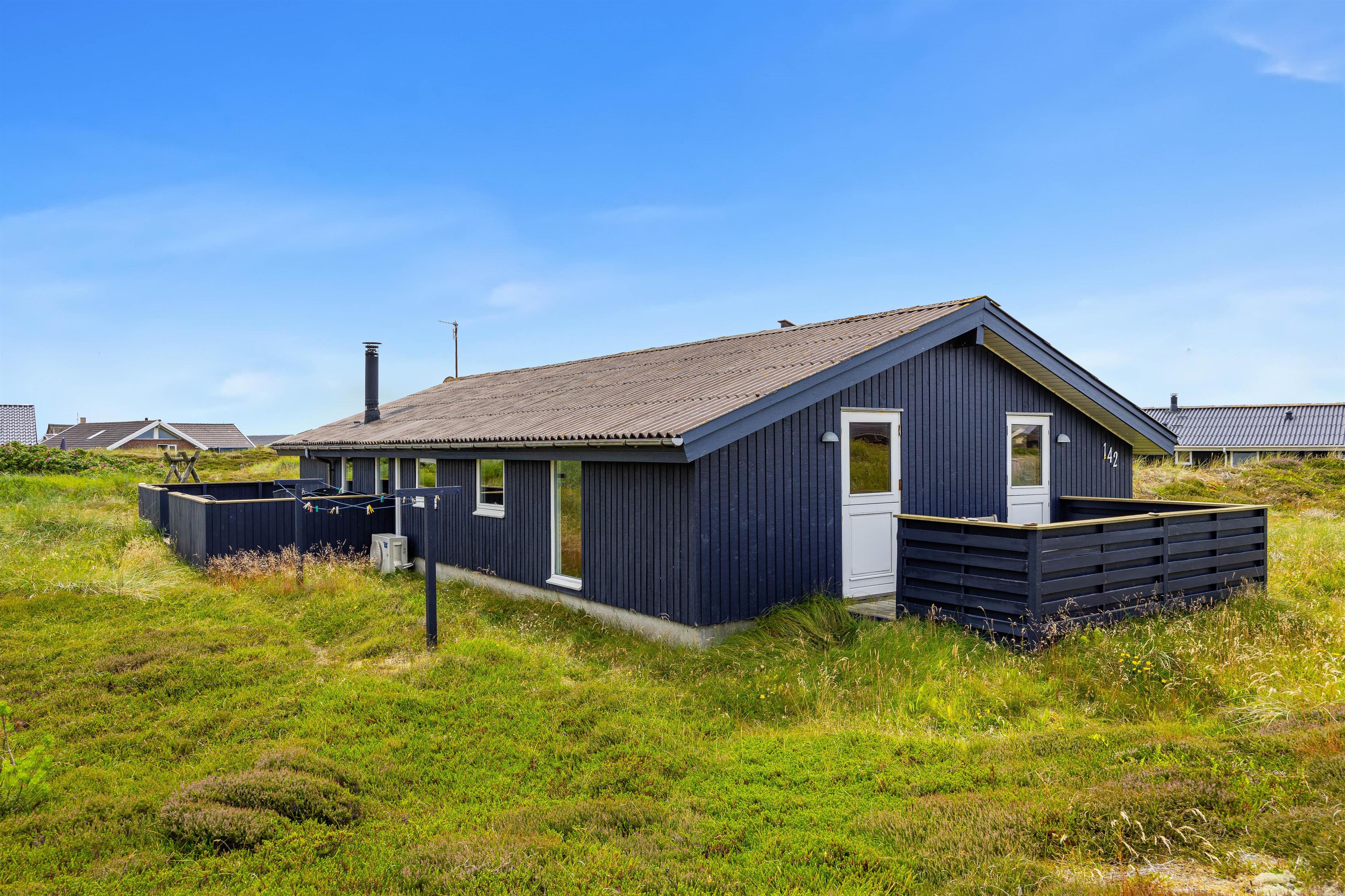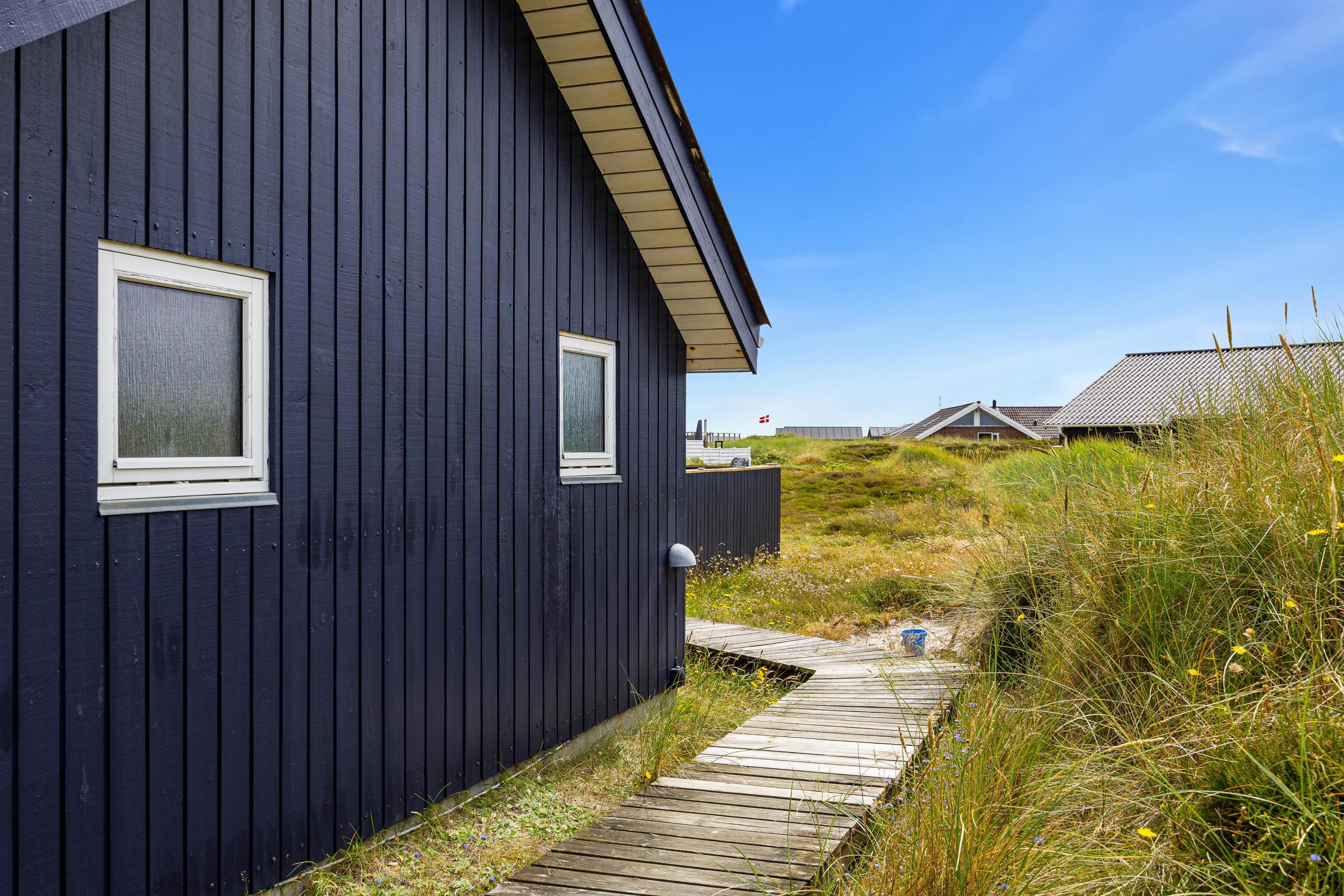 På den lukkede terrasse kan I slappe af i havemøblerne eller tage solbad i liggestolene imens børnene leger i sandkassen. Tænd op i grillen til aften og nyd et lækkert grillmåltid sammen, imens skyggerne bliver lange. Bagefter kan I nå en tur til stranden, hvor I alle kan opleve solnedgangen i Vesterhavet – det er en oplevelse for alle aldersklasser.