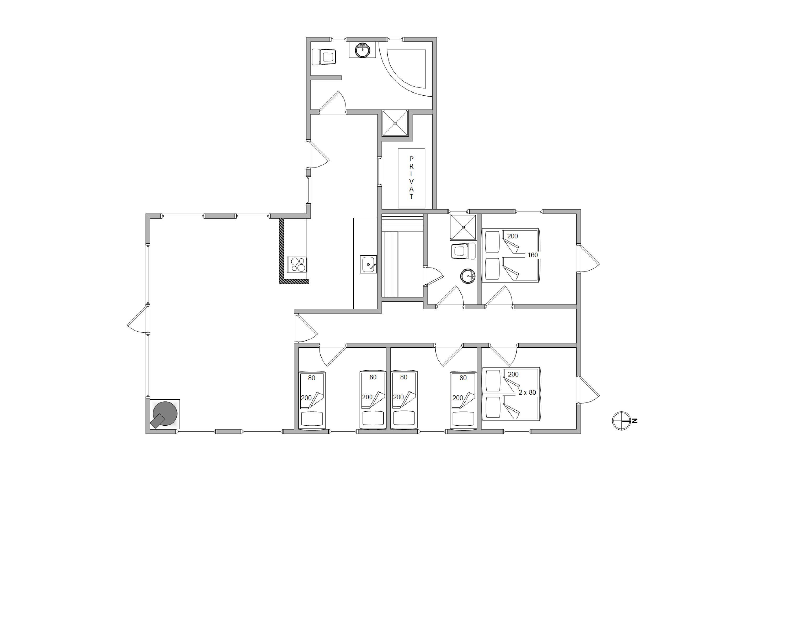 De 8 sovepladser er fordelt på 4 værelser – 2 med dobbeltsenge, og 2 med hver 2 enkeltsenge. I kan således fordele pladserne, som det passer jer bedst. I de 2 badeværelser er der gulvvarme, og i forbindelse med det ene- er også en sauna, hvor I kan varme musklerne godt igennem.