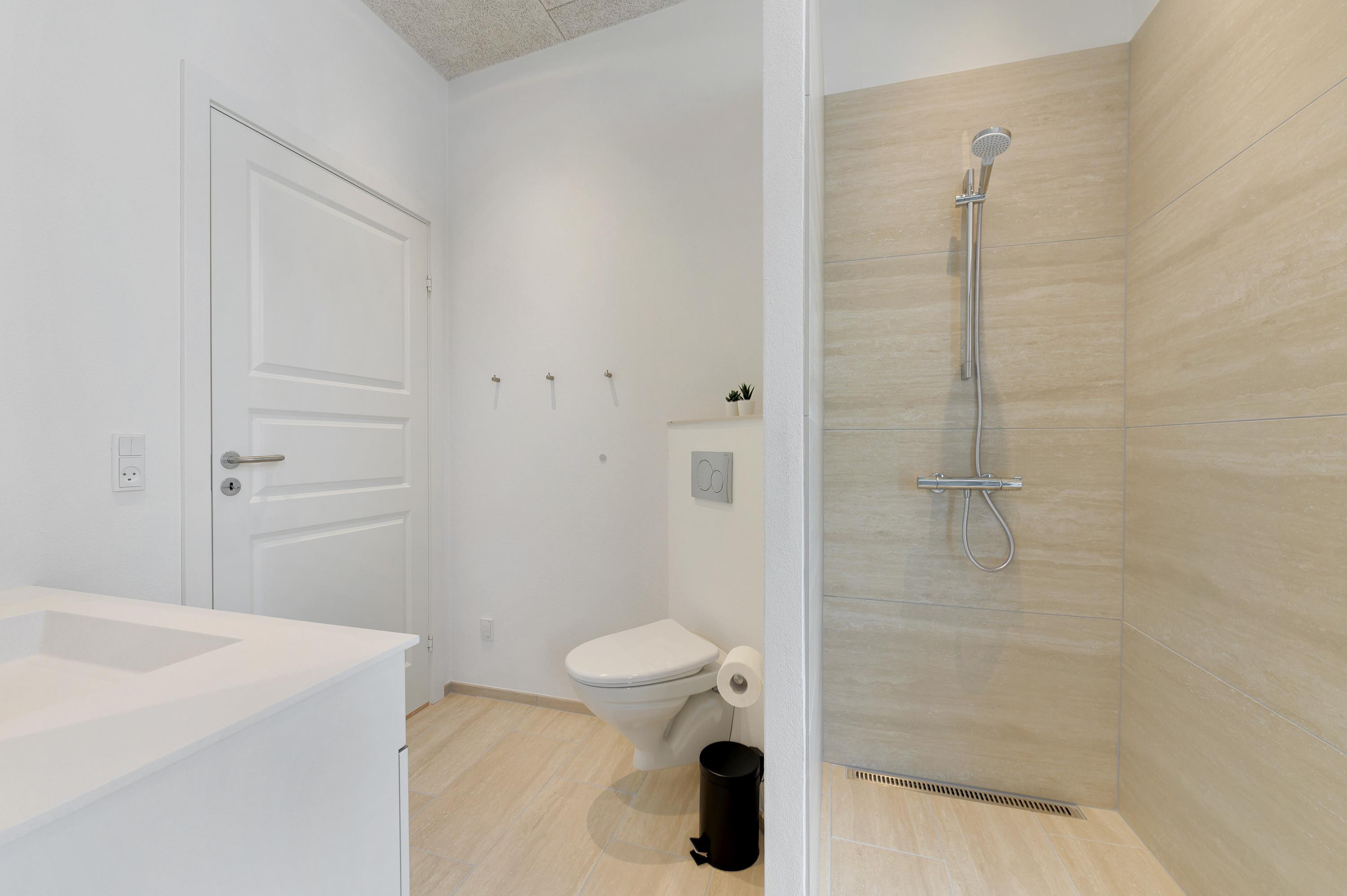 Yderligere rummer huset 2 badeværelser, hvor der fra det ene badeværelse er adgang til sauna, samt direkte adgang til husets store terrasse område, hvor I finder både spaen og masser af plads til at nyde solen. Desuden har huset også en lademulighed til elbiler med et type 2 stik.