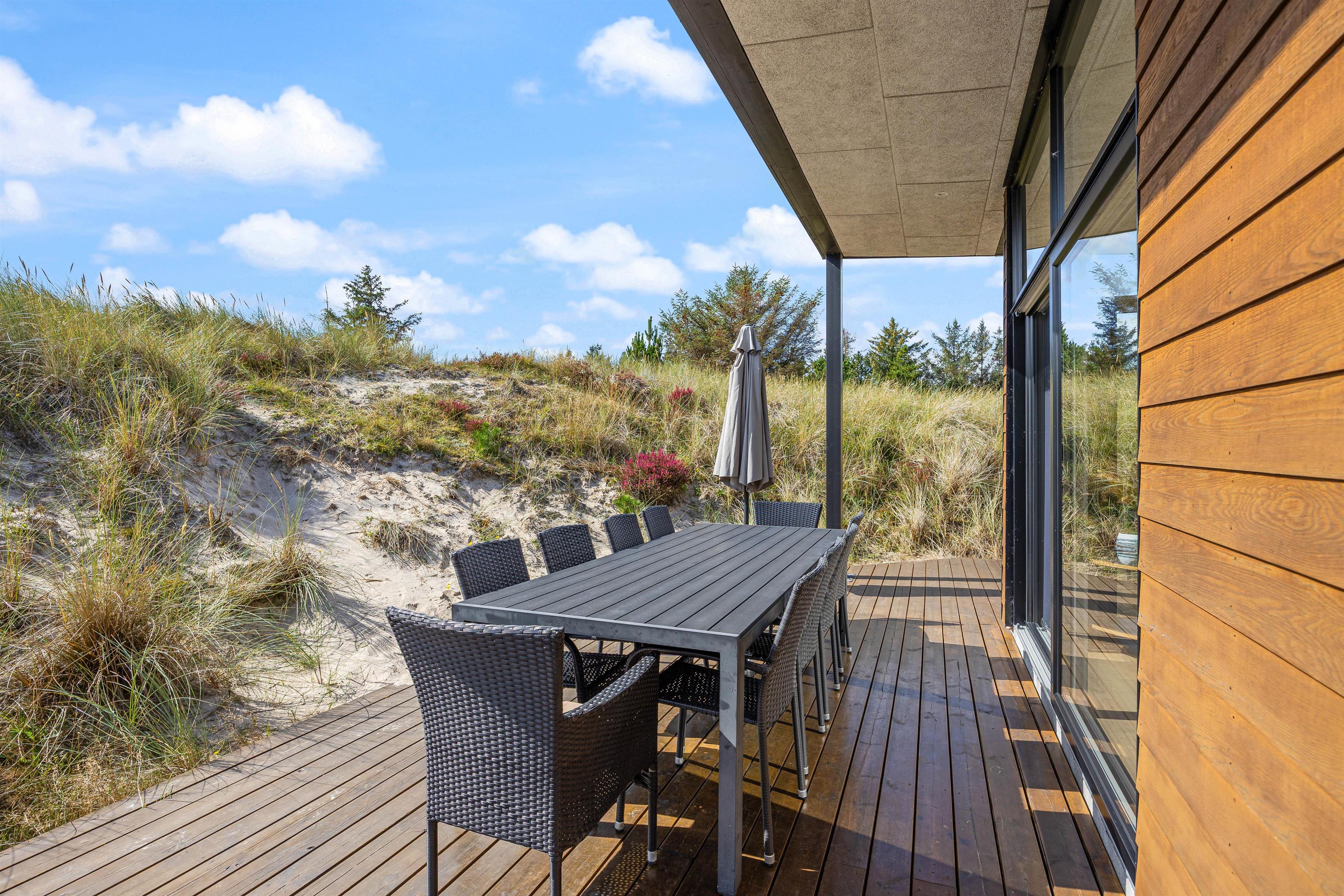Hele vejen rundt om huset er der skønne terrasseområder, hvor I kan nyde jeres ferie i alt slags vejr. Sid på huset vestside og nyd naturen eller få fuldt udbytte af solen i liggestolene på husets solterrasse mod syd.
