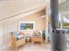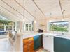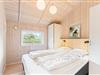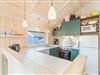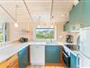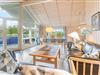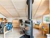 Sommerhuset har et veludstyret køkken i åben forbindelse med stue og spiseafdeling, og her er der køleskab med fryser på 30 L, mikroovn og opvaskemaskine. I den lyse stue er der loft til kip og de lækre lædersofaer indbyder til afslapning foran brændeovnen eller fladskærms-TV'et. Du får også DVD og gratis trådløst internet, samt energibesparende varmepumpe. I alle værelser og opholdsafdelingen er lagt trægulve.