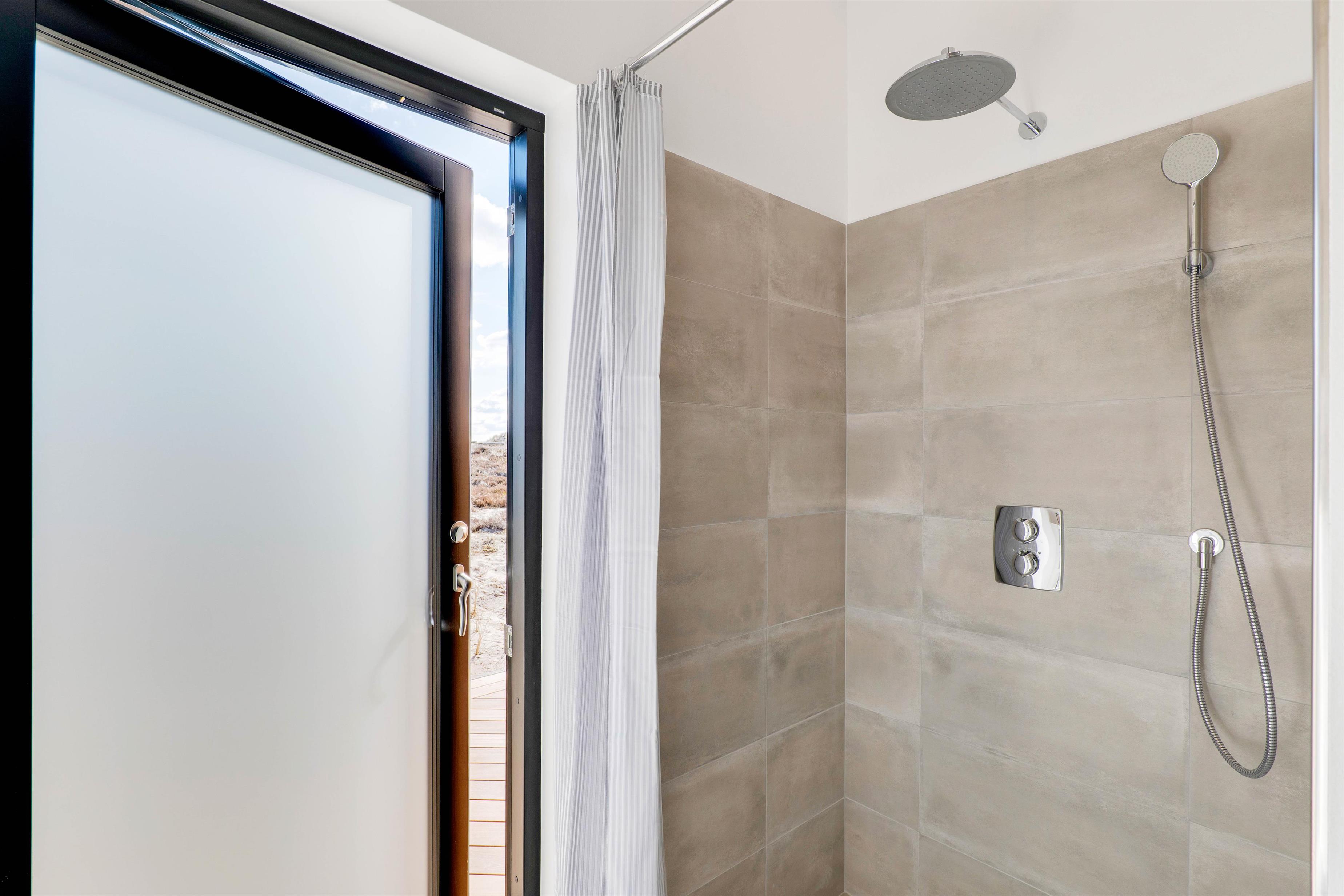 Efter en lang gåtur på stranden eller en dukkert i Vesterhavets bølger kan I skylle jer under den udebruseren og vaske sandet af fødderne.