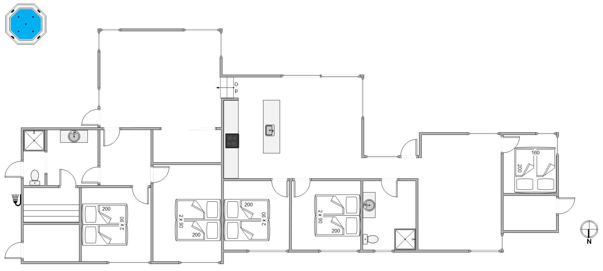 Praktisk opdeling med 2 badeværelser, sauna og 5 soveværelser