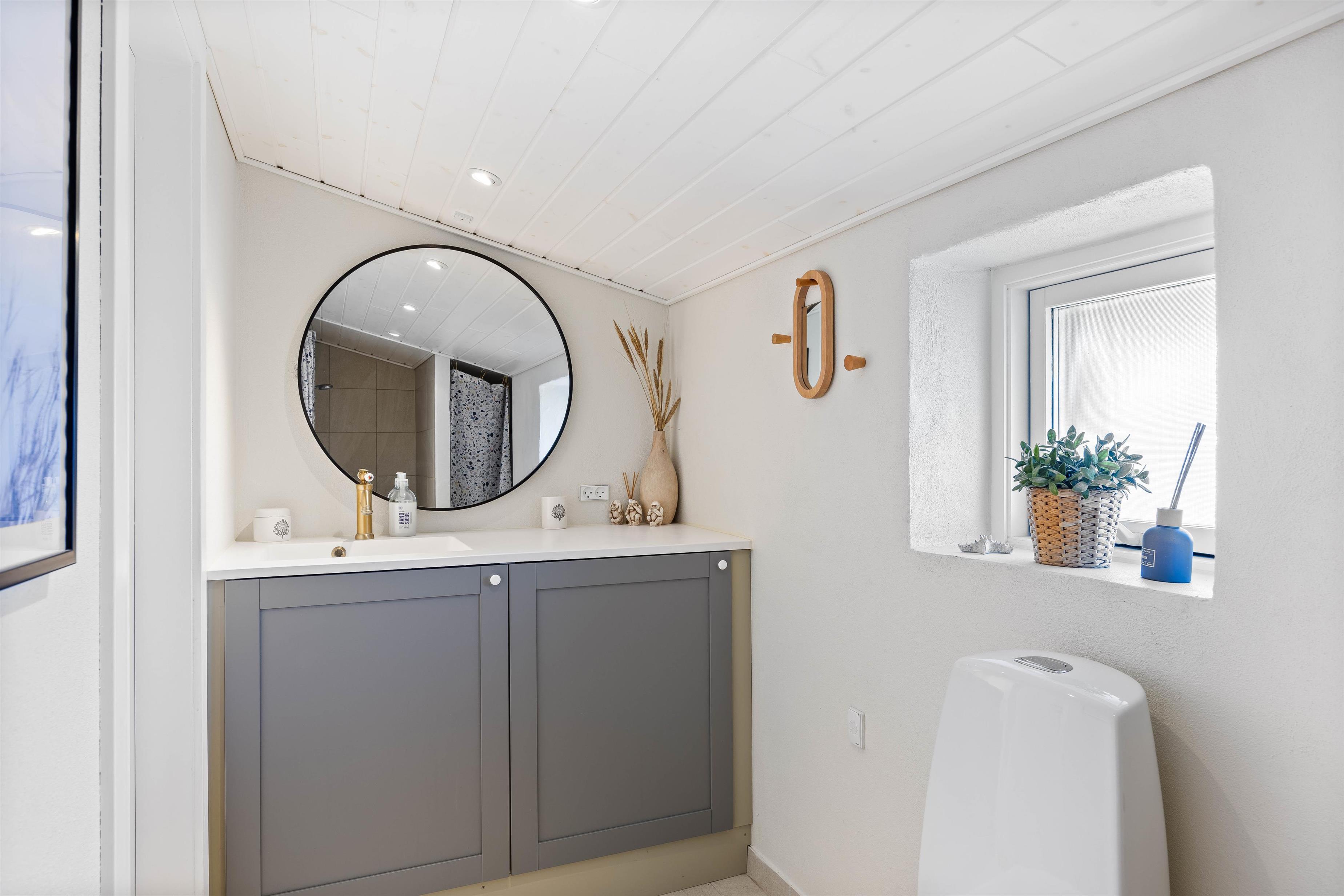Efter en lang dag i den friske luft glæder alle sig sikkert til at komme i seng og få en god nats søvn. Der er 2 soveværelser i sommerhuset, begge indrettet med 140 x 200 centimeter senge. Der er ikke højt til loftet i det lille badeværelse, men her er både gulvvarme og nedsænket bruser. Der er vaskemaskine og tørretumbler til rådighed for jer, så I kan opfriske garderoben eller håndklæderne i løbet af ferien.