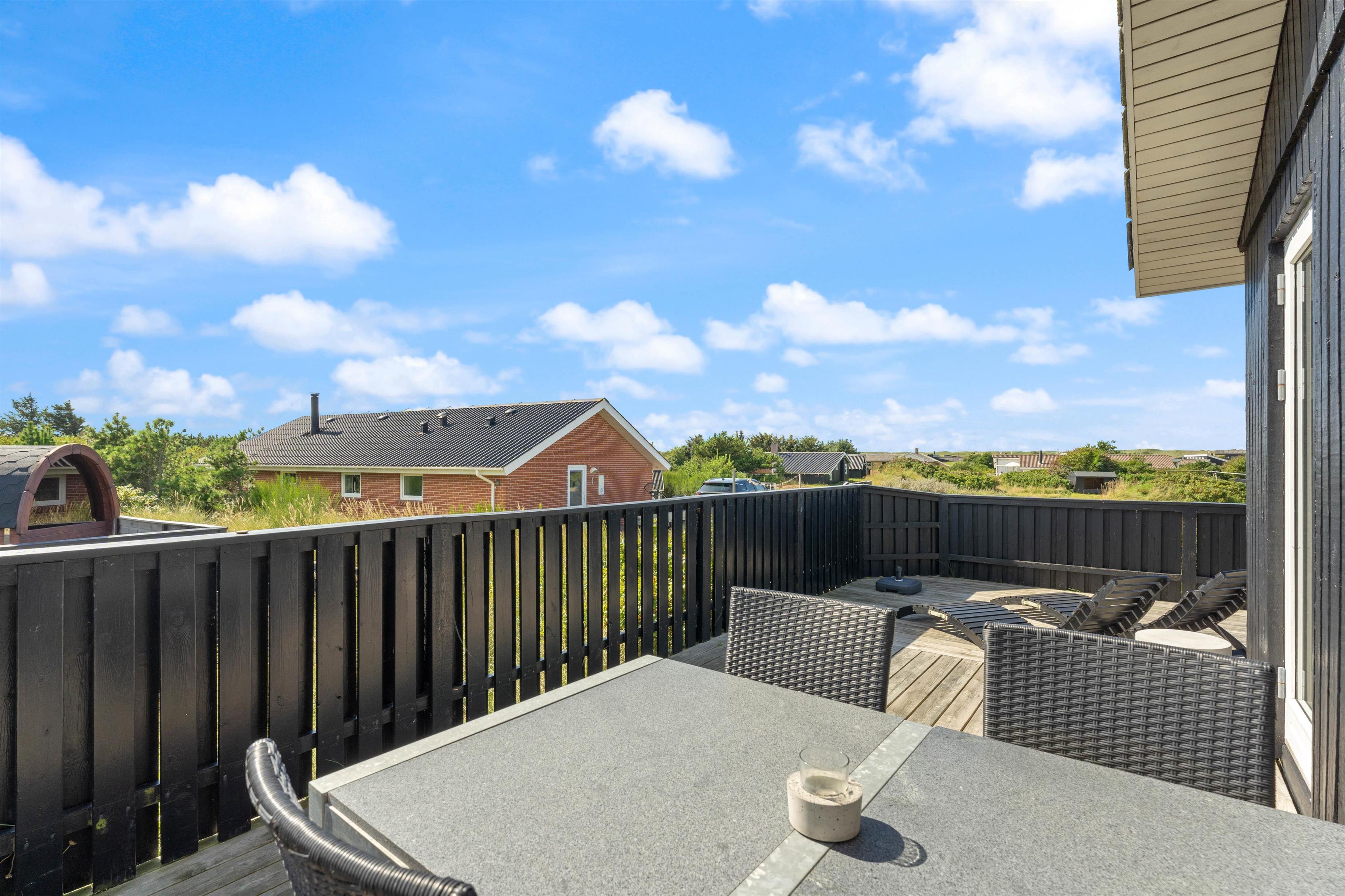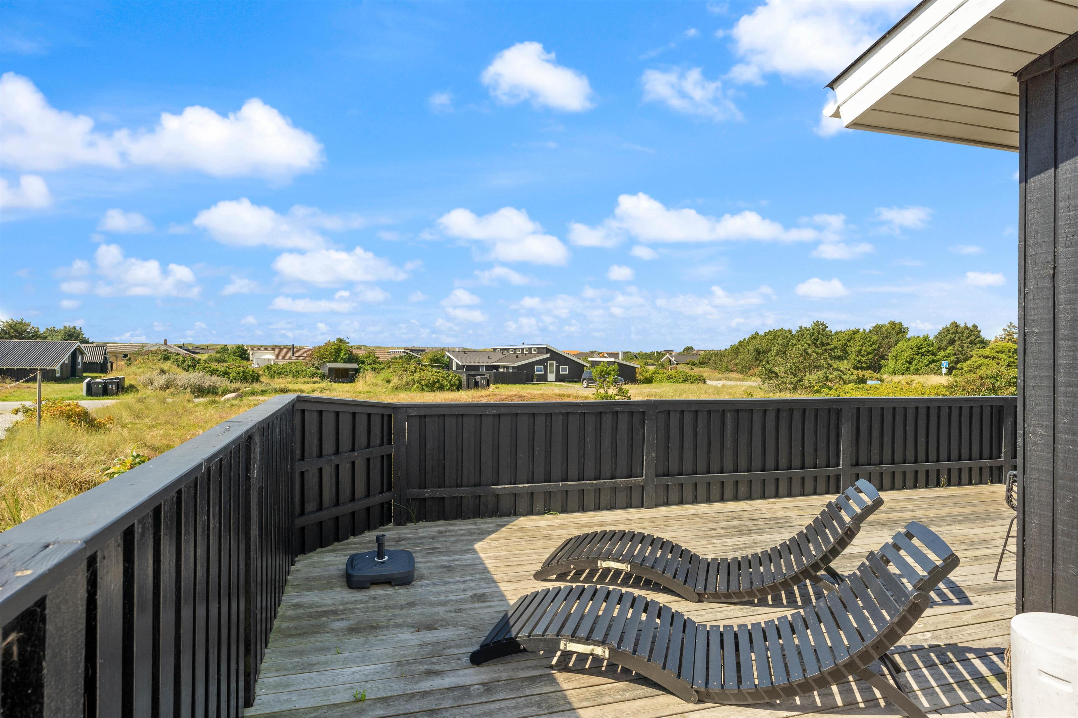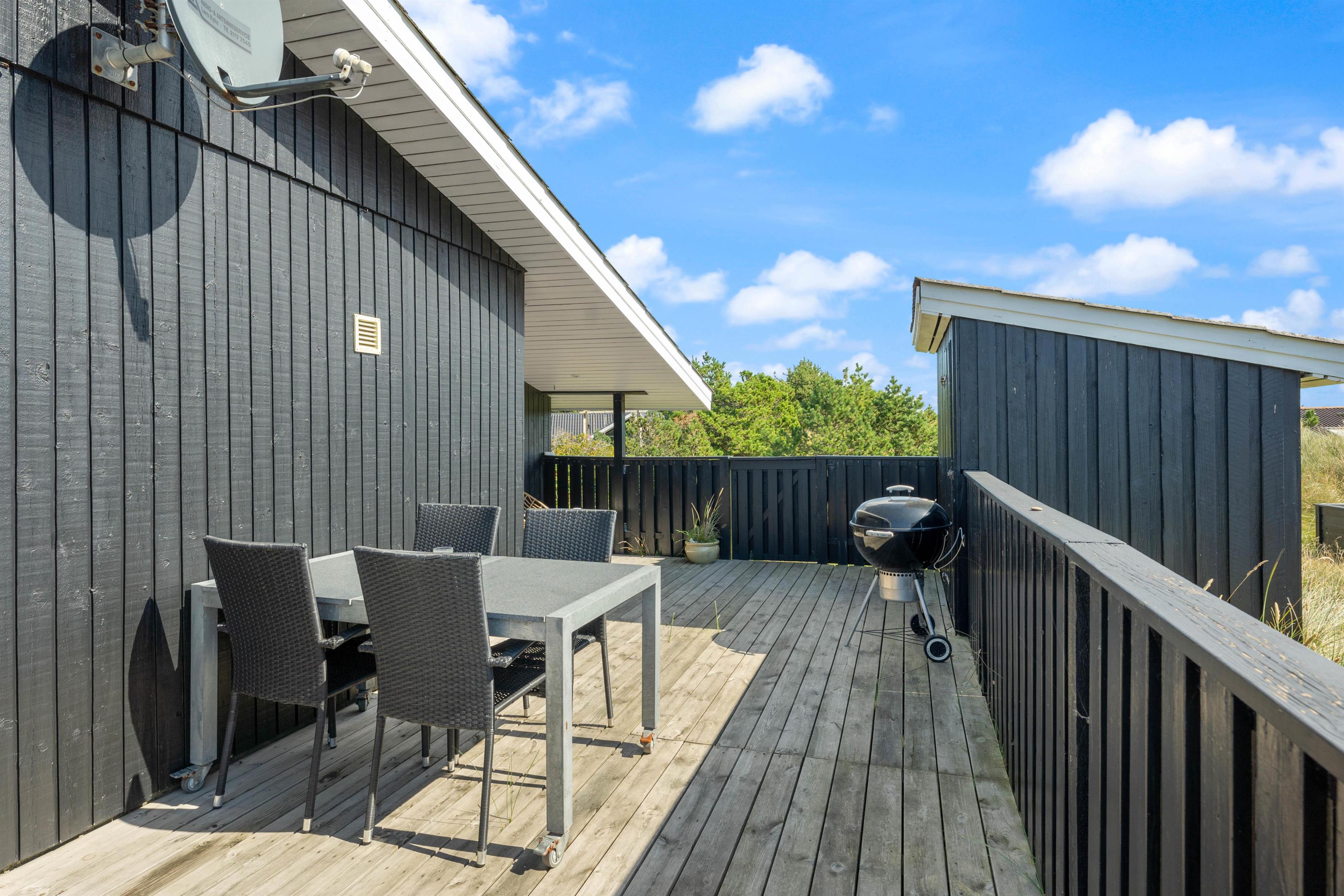 Den afskærmede og lukkede terrasse indbyder til at solbade og slappe af her. Havemøbler, liggestole, parasol og grill står til jeres rådighed. Her kan børn og hunde trygt boltre sig. Tænd op i grillen til aften og nyd et lækkert grillmåltid sammen, imens skyggerne bliver lange. Bagefter kan I stadig nå en tur til stranden, hvor I kan opleve solnedgangen i Vesterhavet.