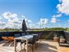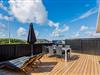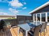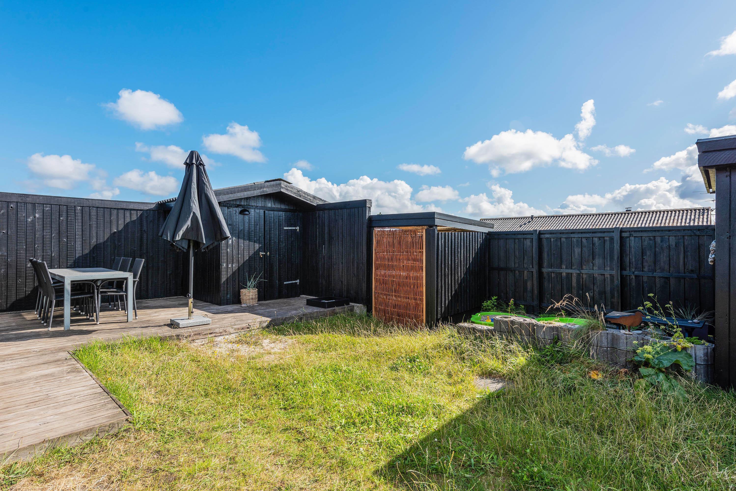 Fra stuen er der udgang til en afskærmet træterrasse, hvor I kan sidde og nyde det gode vejr og tanke nye kræfter i den friske havluft. Der er både sørget for havemøbler og liggestole, og til de lune sommeraftener; en grill.