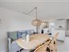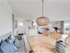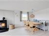 Husets hjerte er det åbne opholdsrum, hvor stue og køkken er slået sammen med brændeovnen som centrum. Det dejlige lyse køkken er holdt i bondehusstil der sammen med slagbænken og karlekammerskabet giver køkkenalrummet et skønt stemningsfyldt udtryk. Her vil der med garanti blive skabt et hav af nye ferieminder, og hele familien kan samles til lækre feriemåltider, hyggelige kortspil og afslapning på sofaen, mens brændeovnen knitrer i baggrunden.
