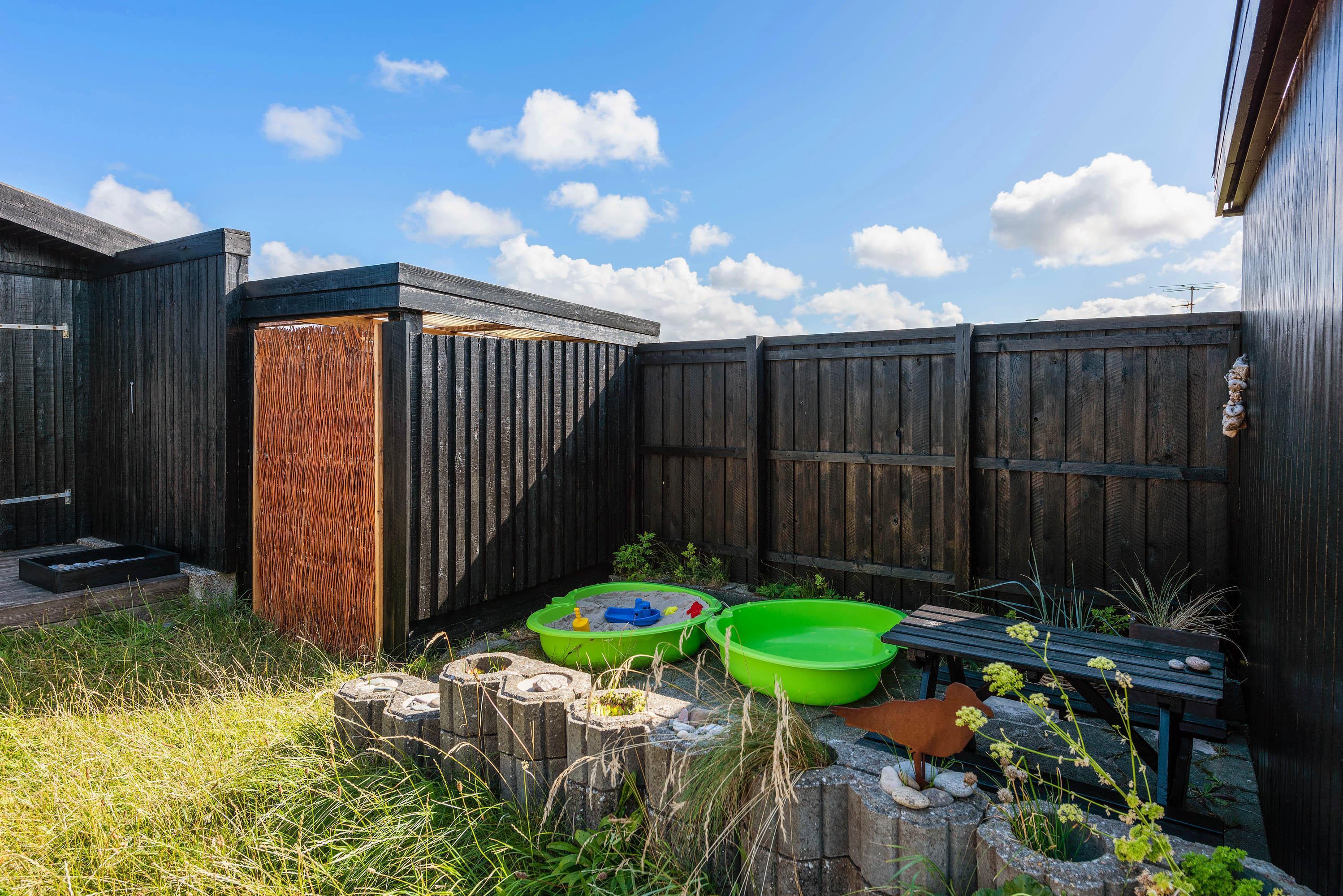 Afskærmet terrasse og rolig beliggenhed tæt på strand og indkøb