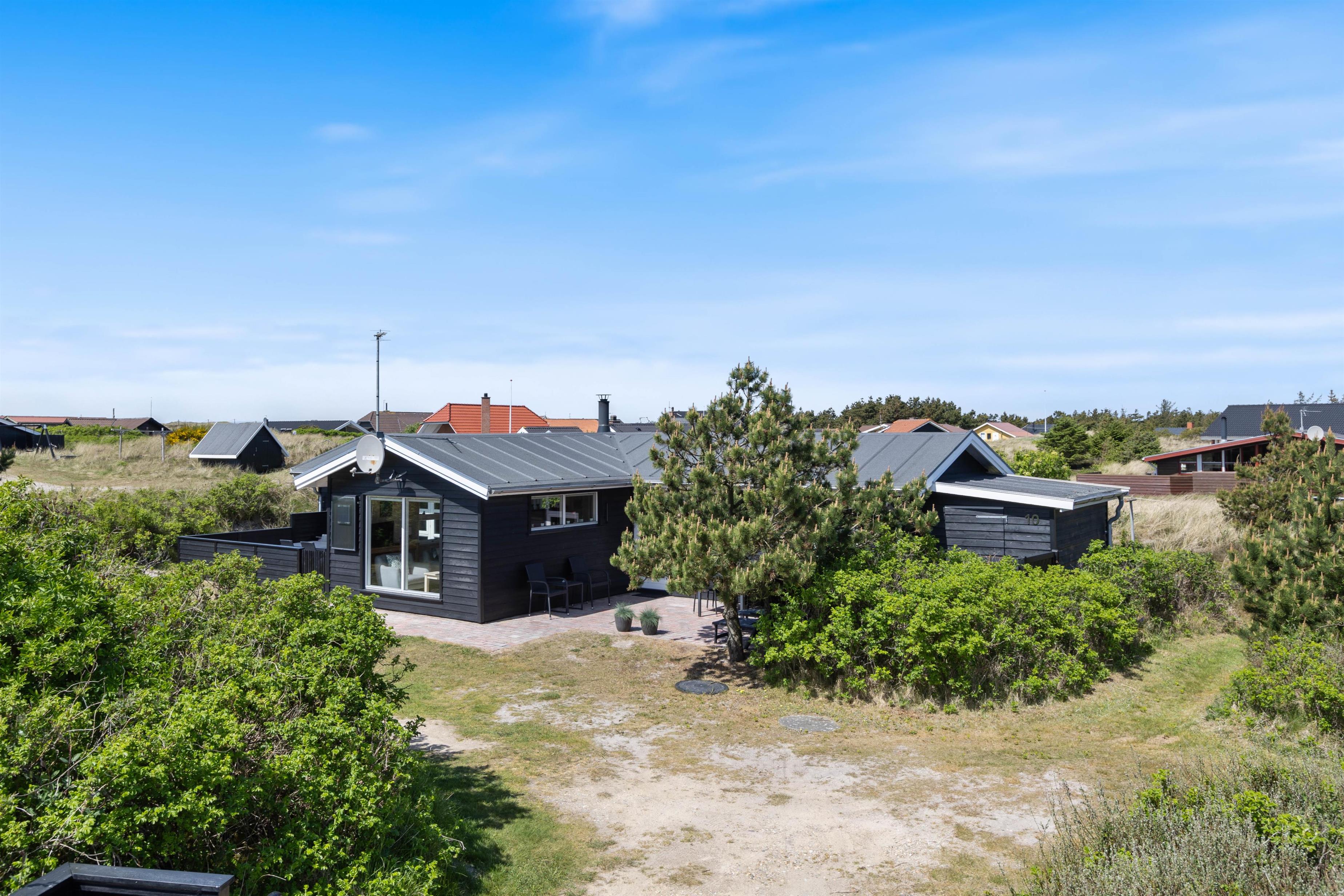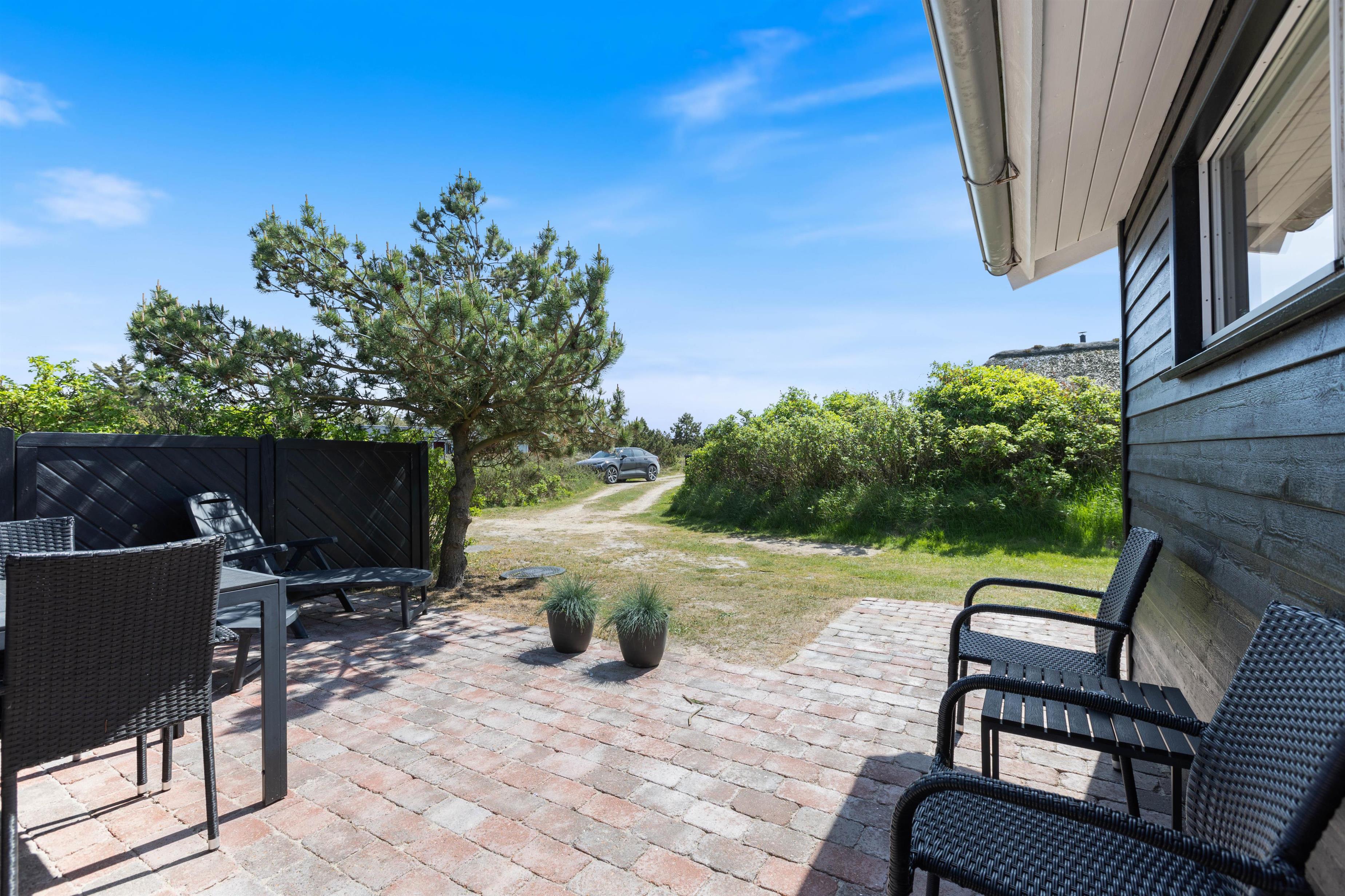 På Julianevej 10 er der både en afskærmet og en lukket terrasse, ideelt – hvis I har små børn eller hunde med. Her kan I nyde en hyggelig morgenmad om morgenen, slikke sol på liggestolene ved frokosttid og grille om aftenen, mens solen går ned bag klitterne. Afhængig af vindretning og solens placering kan I altid finde en rolig plet, hvor I kan slappe af i den friske Vesterhavsluft. Til børnene er der en gynge, og det er også god beskæftigelse at gå på opdagelse på den 1.600 kvadratmeter store naturgrund.